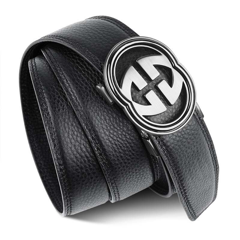 남성 가죽 레터 버클 비즈니스 소 가죽 벨트 스팟 조커 자동 버클 남성 벨트 헤어 세대