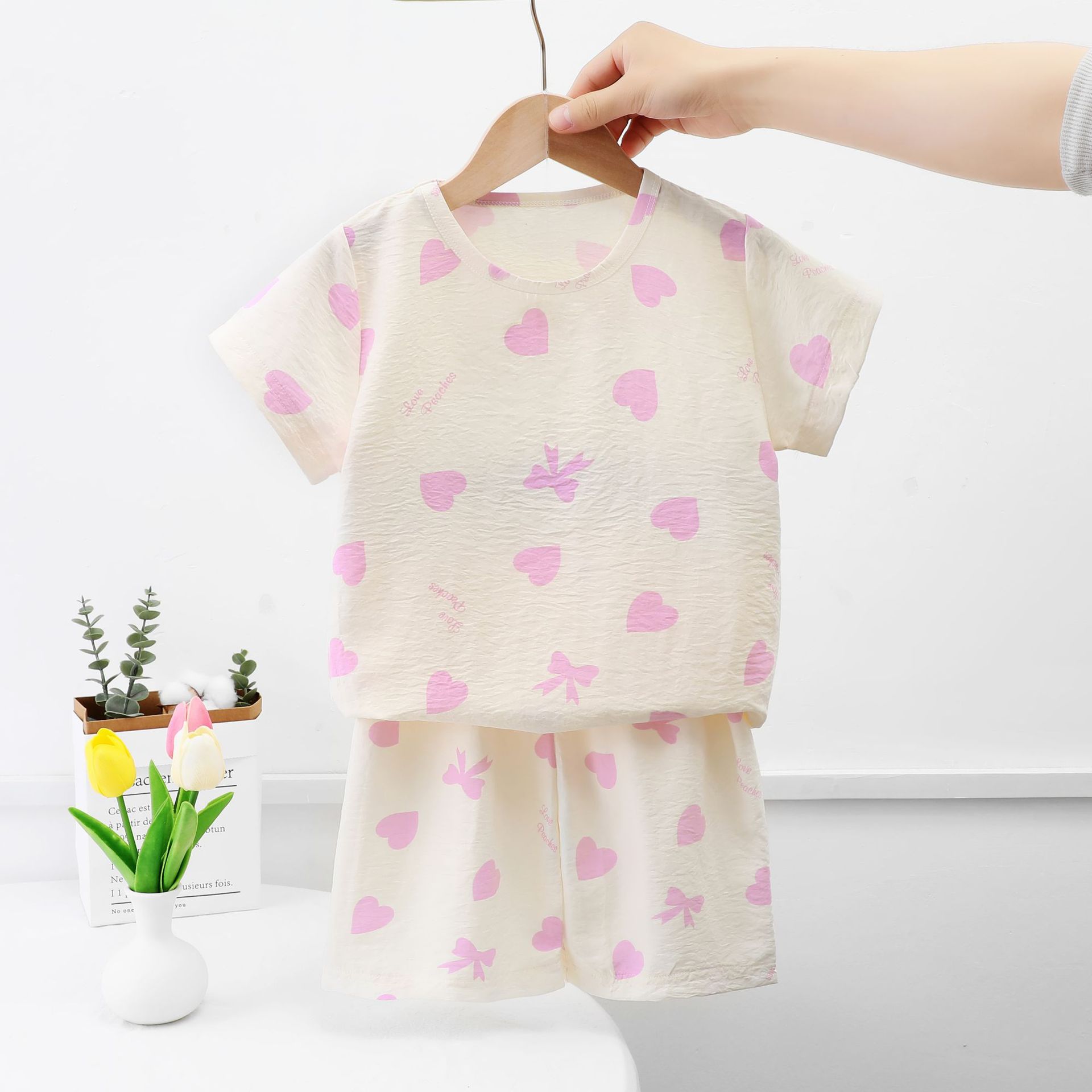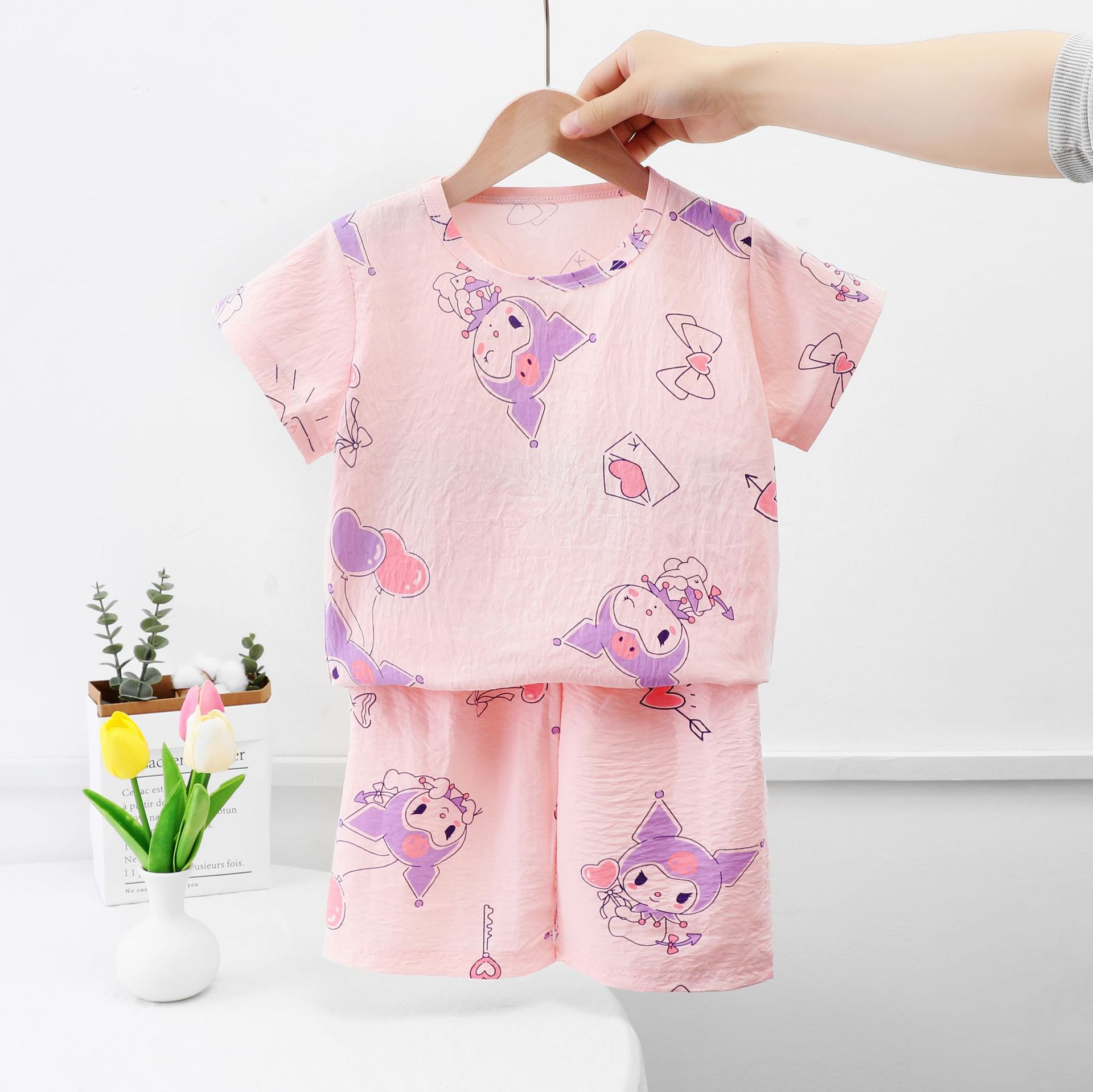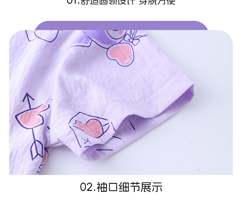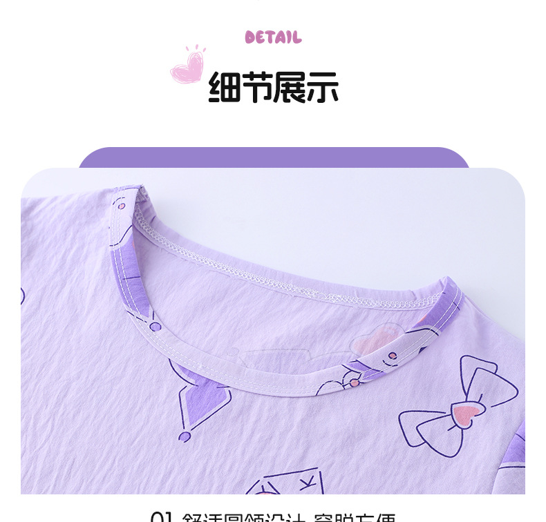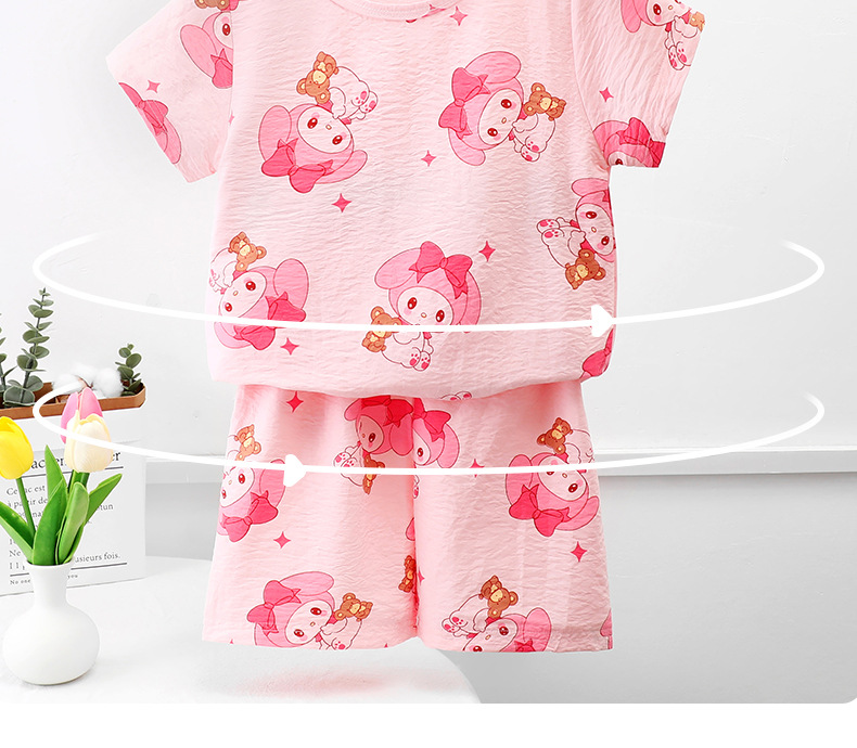 여름 어린이 구름 면 잠옷 소녀 귀여운 만화 아기의 둥근 목 짧은 소매 반바지 느슨한 얇은 홈 옷