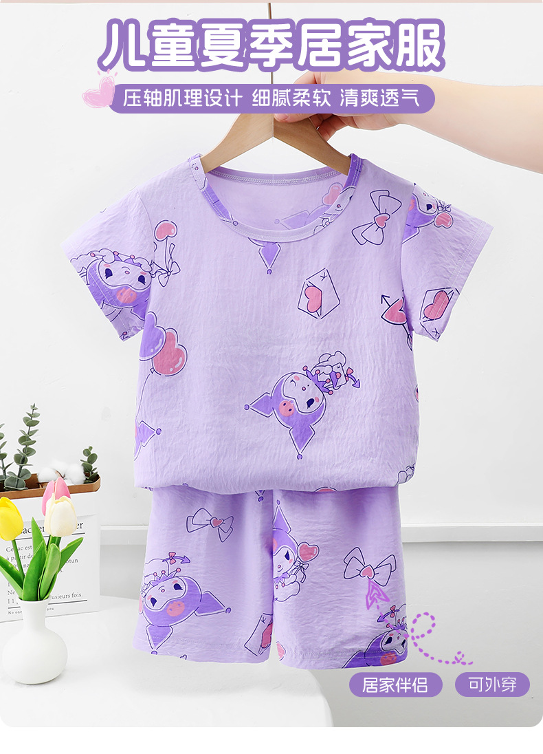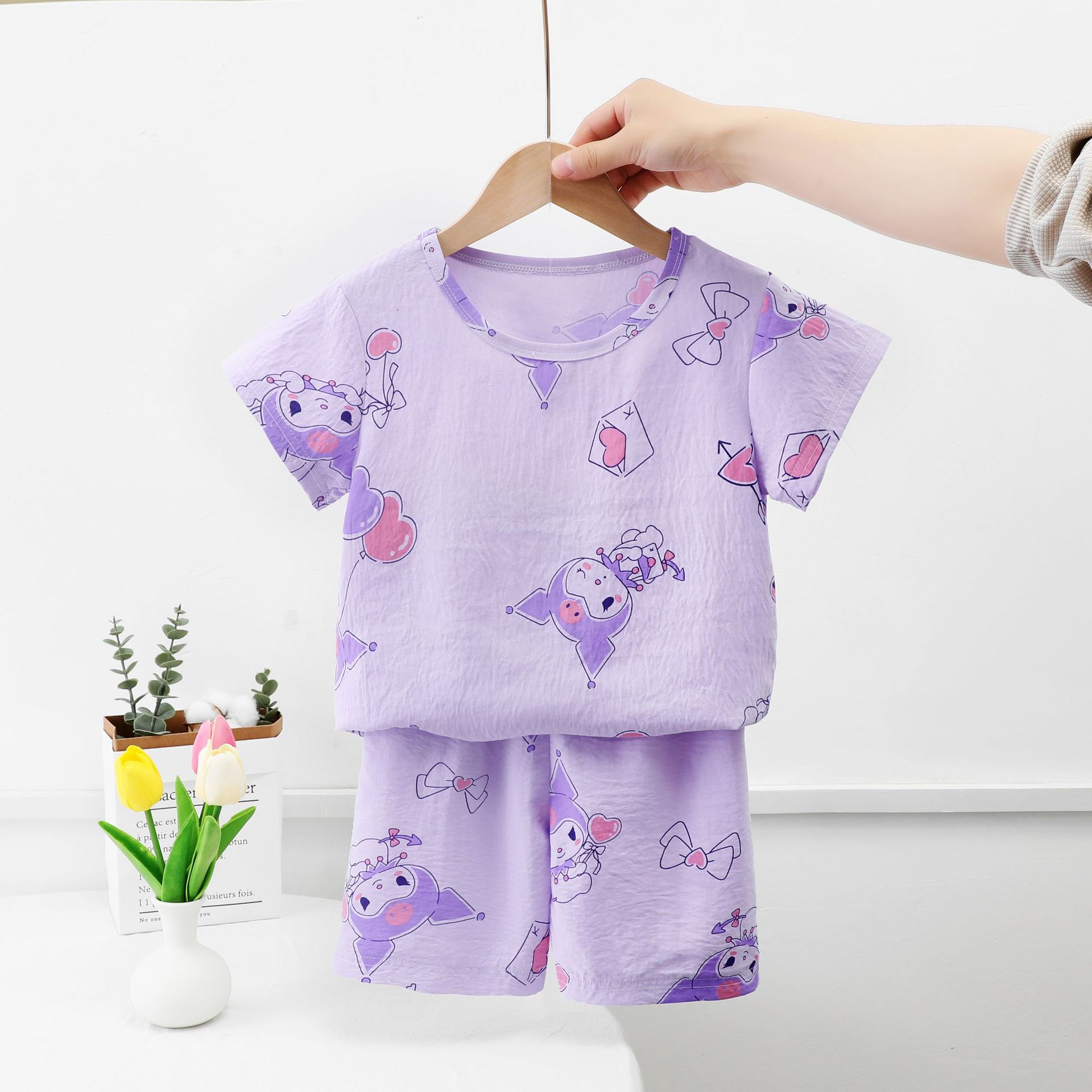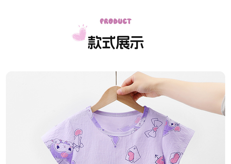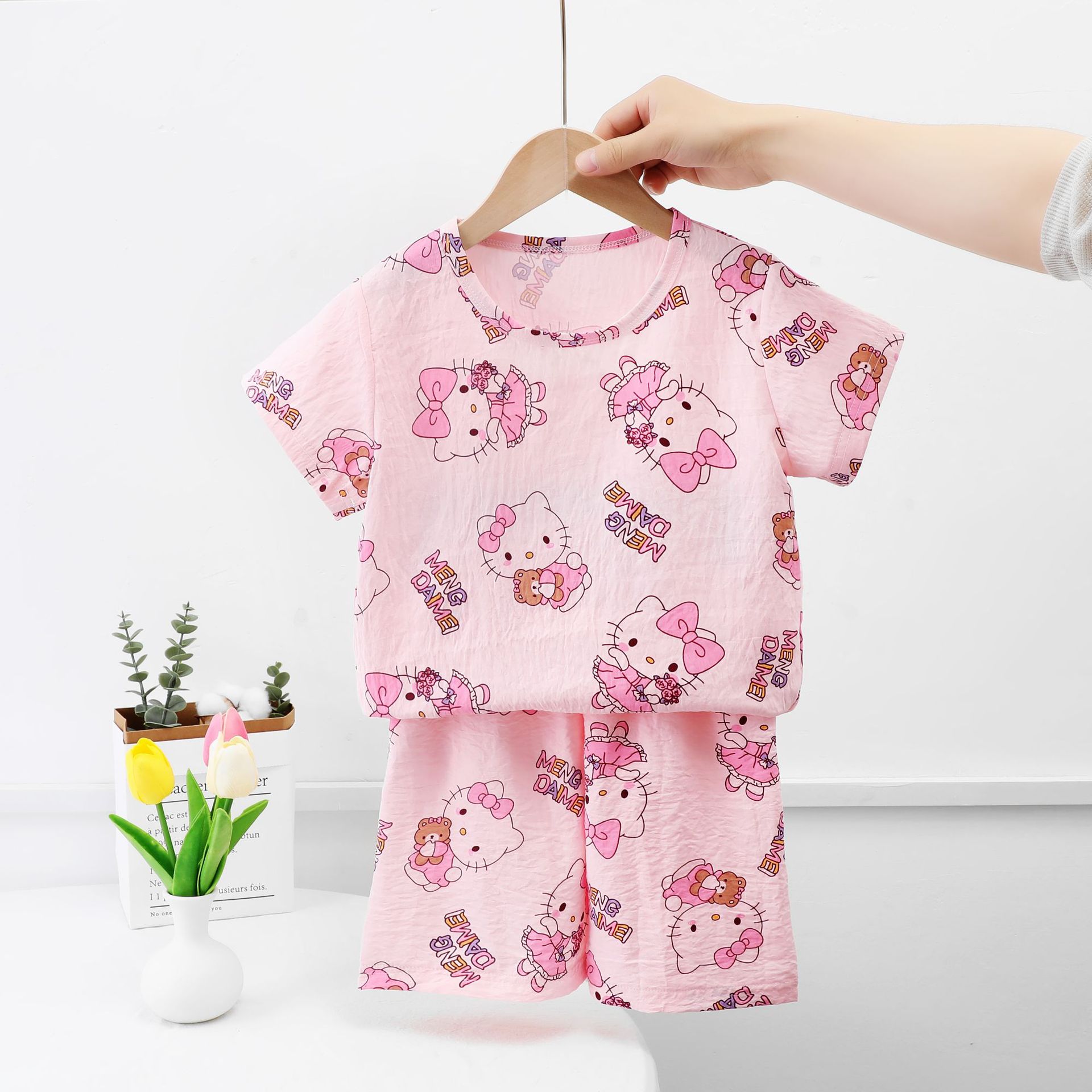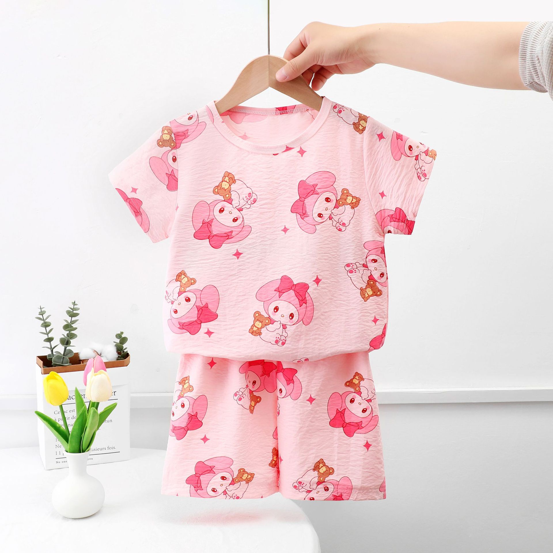 여름 어린이 구름 면 잠옷 소녀 귀여운 만화 아기의 둥근 목 짧은 소매 반바지 느슨한 얇은 홈 옷