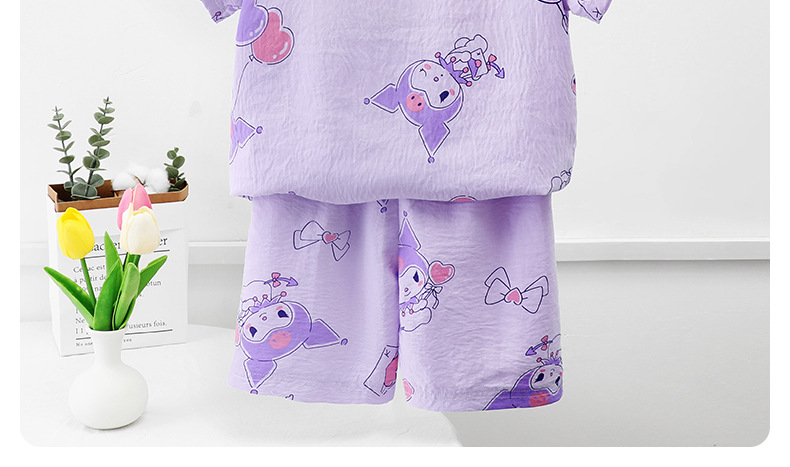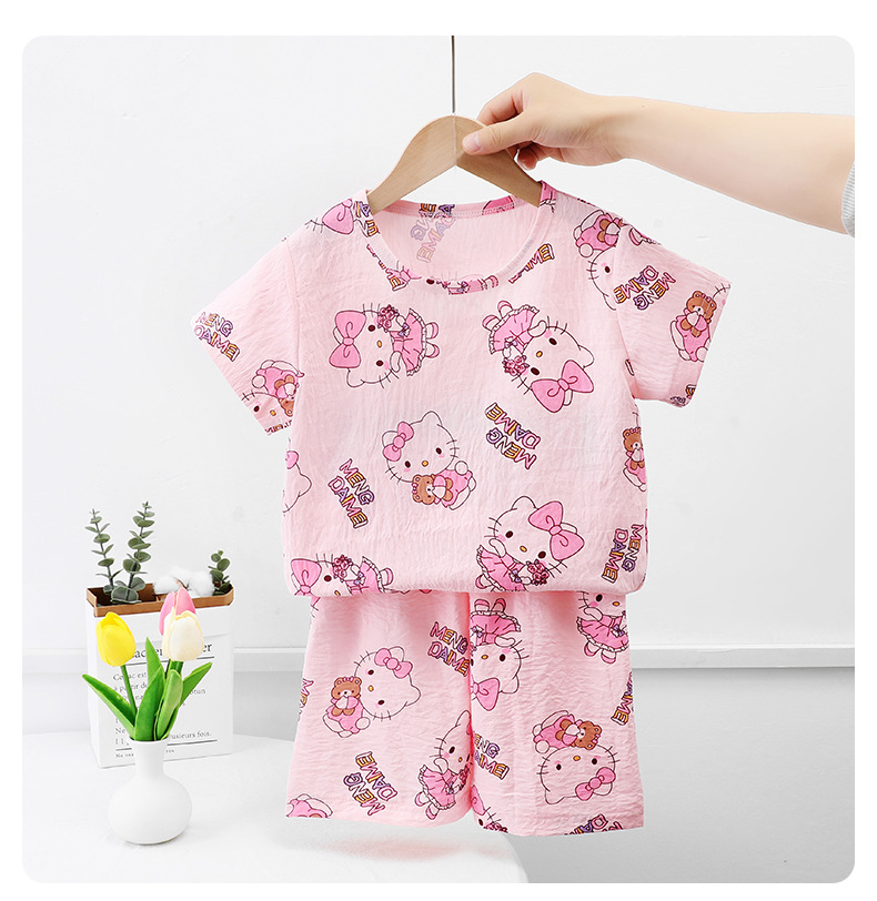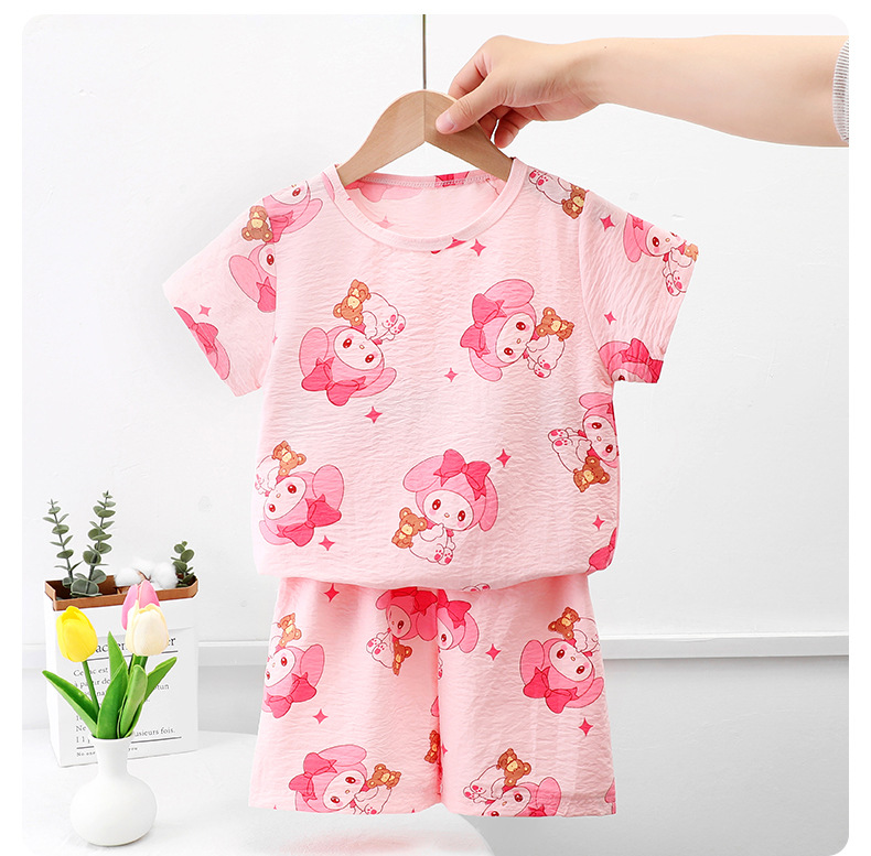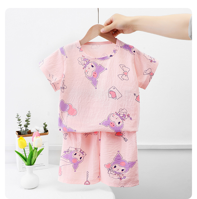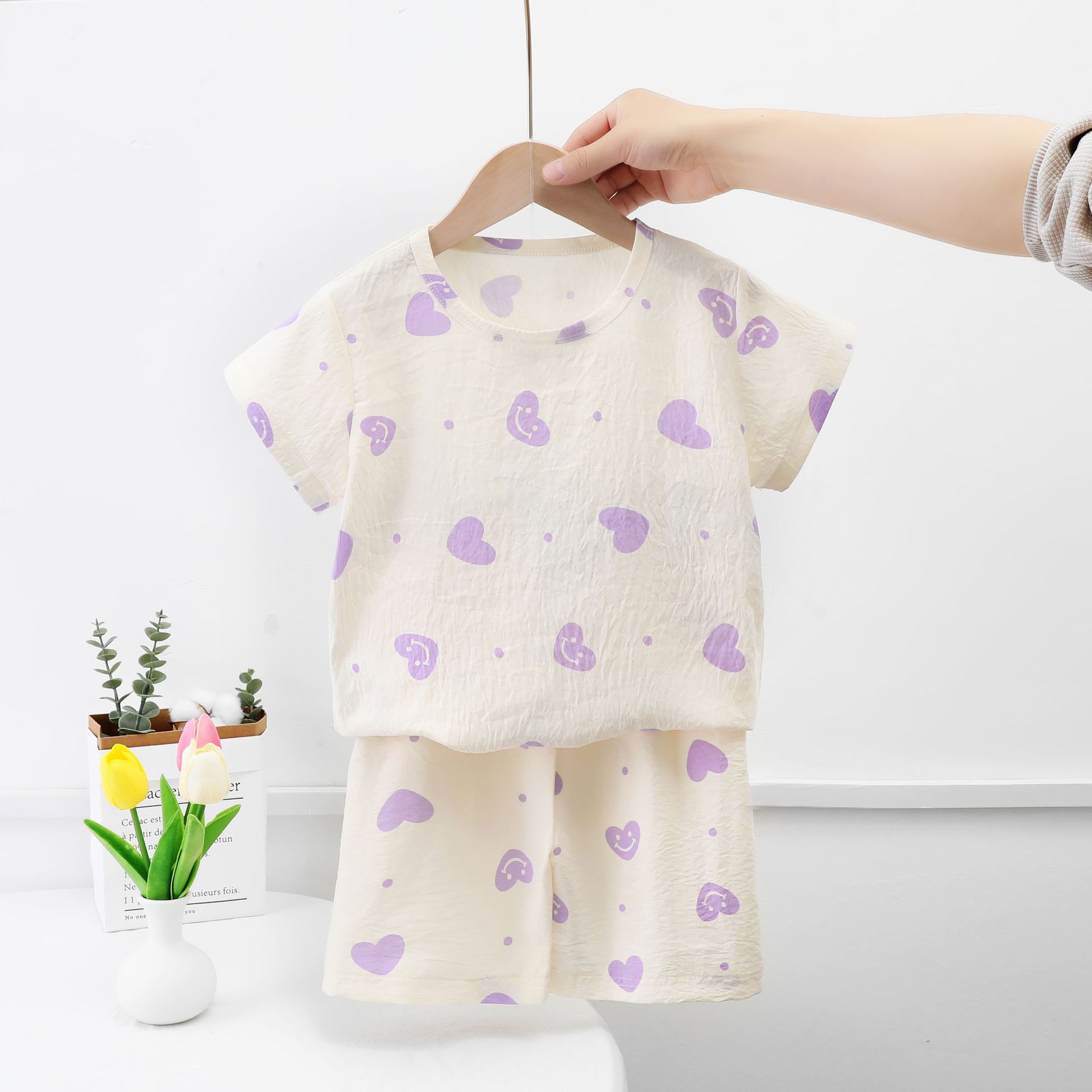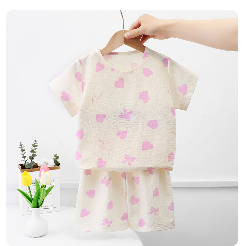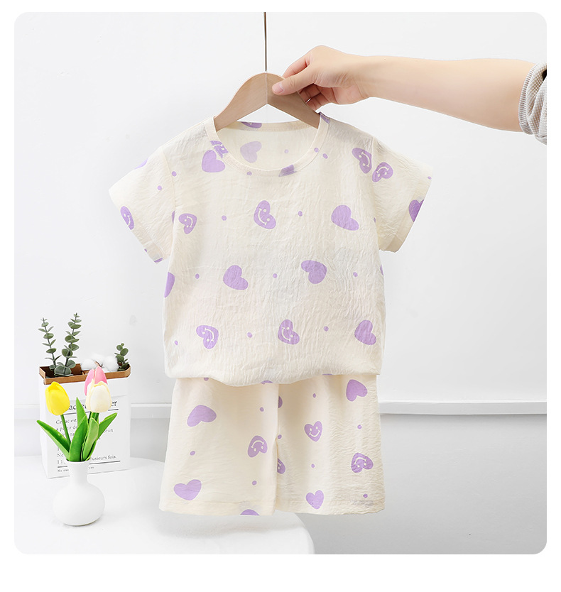 여름 어린이 구름 면 잠옷 소녀 귀여운 만화 아기의 둥근 목 짧은 소매 반바지 느슨한 얇은 홈 옷