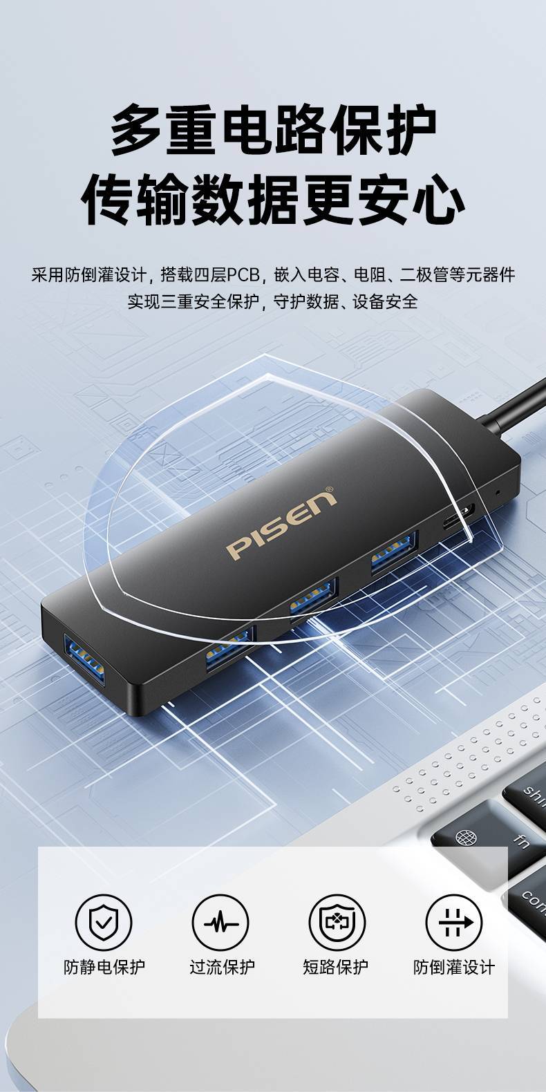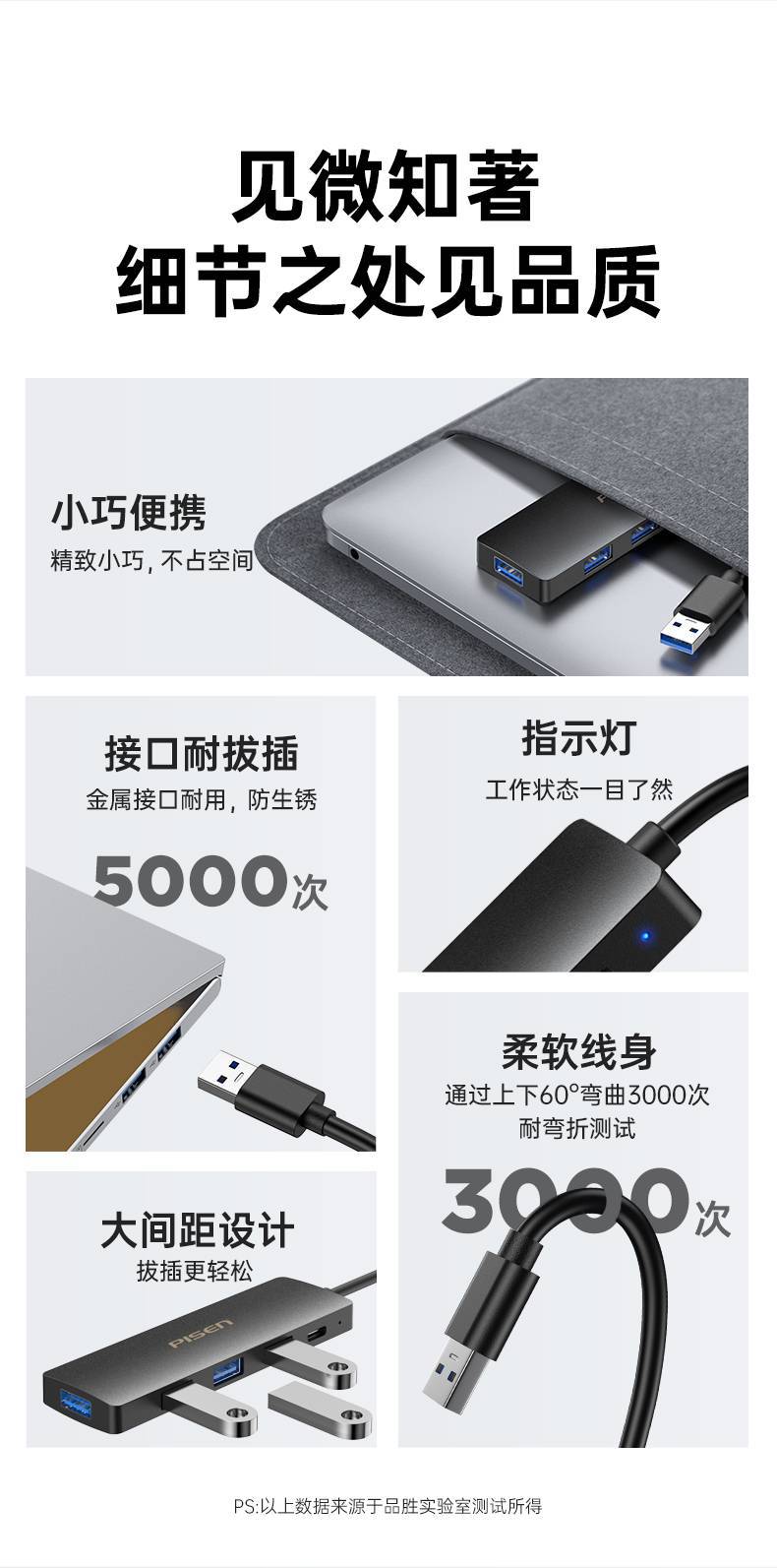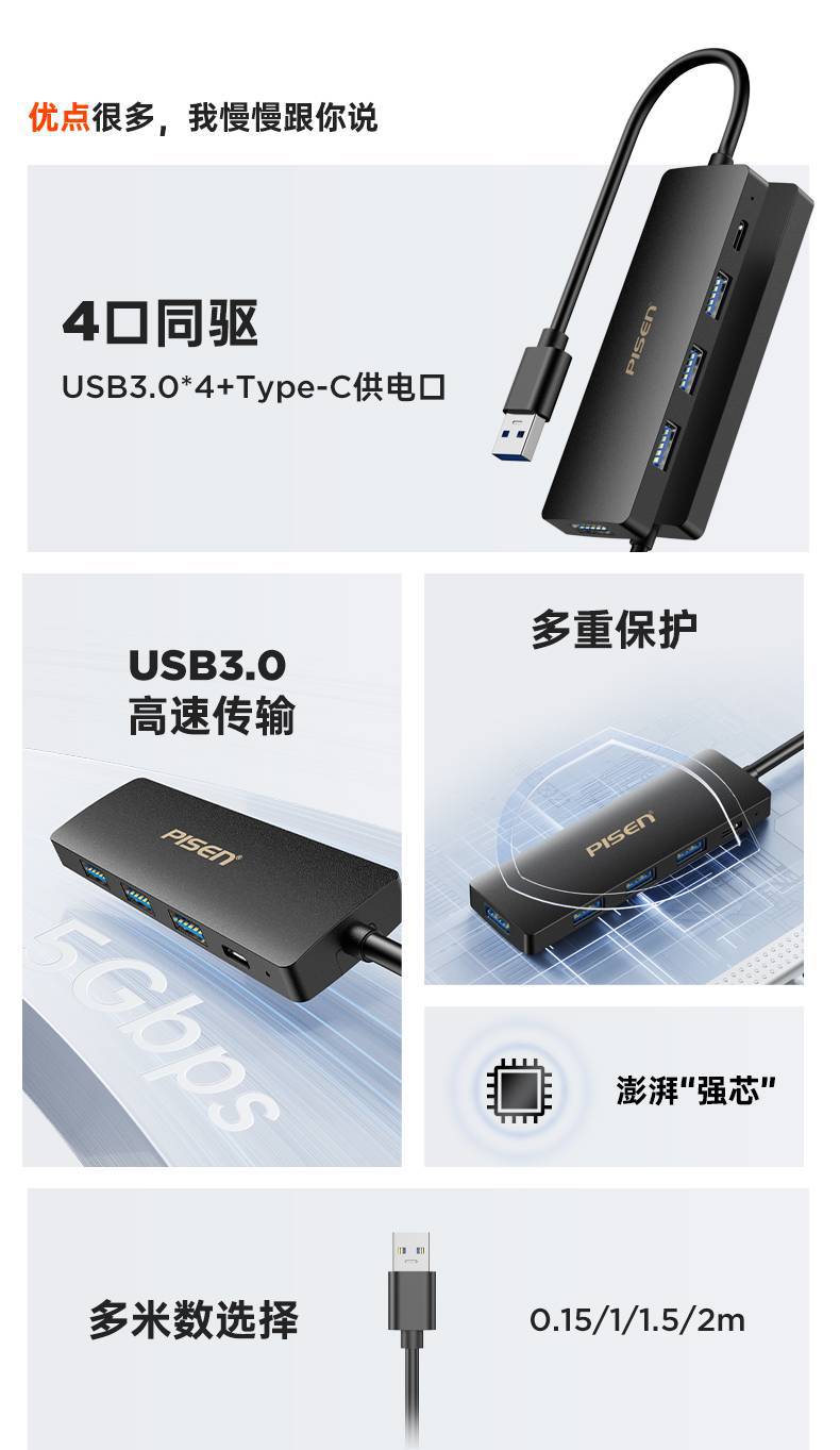 Pinsheng USB3.0 확장기 멀티 포트 스플리터 노트북 컴퓨터 외부 U 디스크 하드 디스크 어댑터 전원 공급 장치스토어 가기