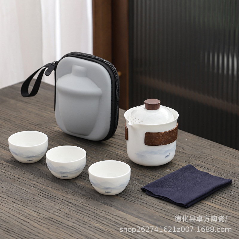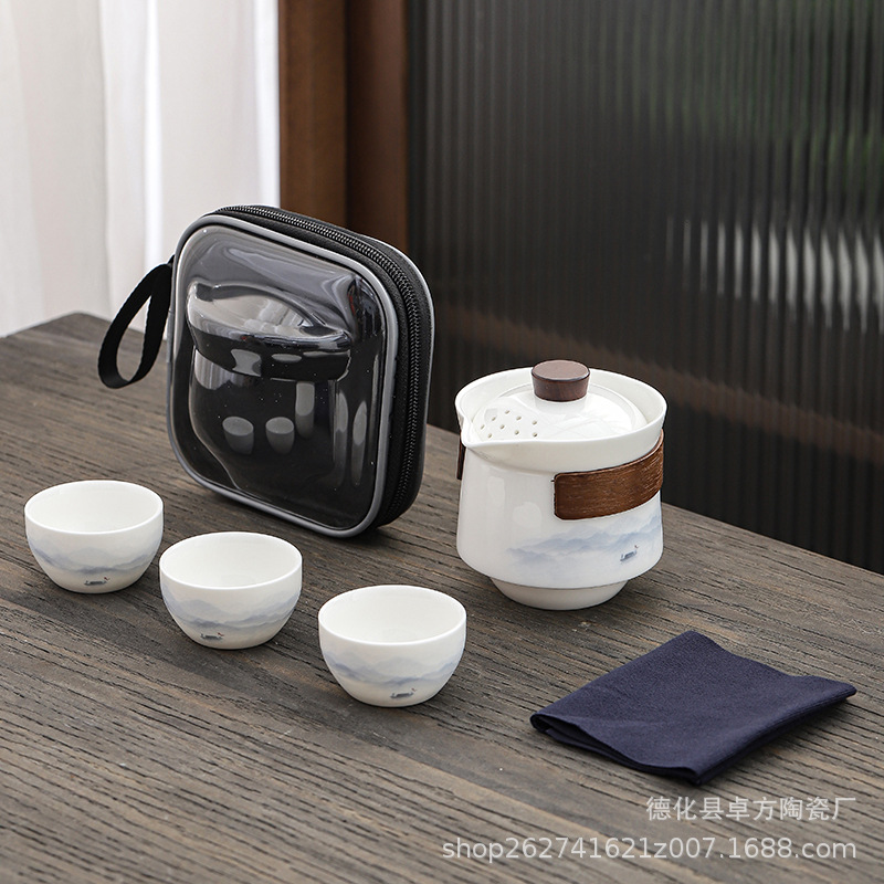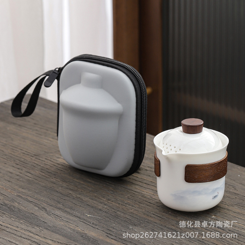 휴대용 여행 차 세트 쿵푸 차 세트 작은 세트 야외 주전자 익스프레스 휴일 비즈니스 선물스토어 가기