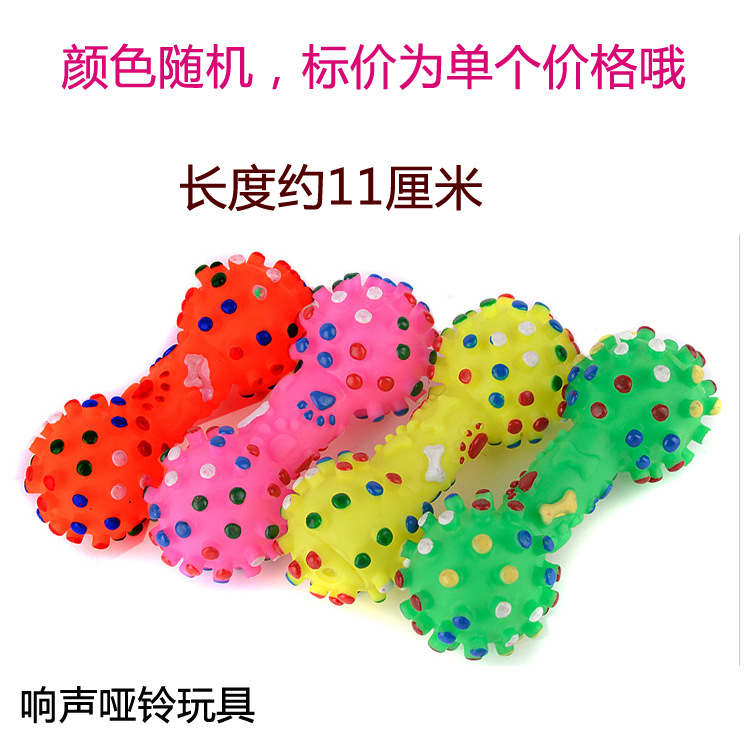 由软橡胶制作而成,有韧性,适合供宠物和主人一起玩耍。而且通过咬橡胶可以有助宠物牙齿的健康发展,会响的哑铃,狗狗都喜爱。