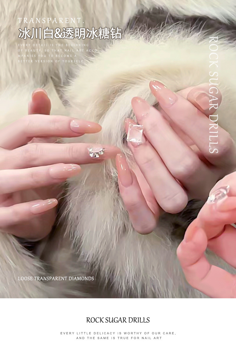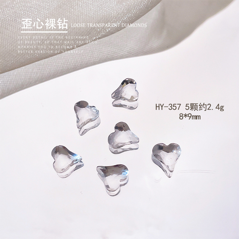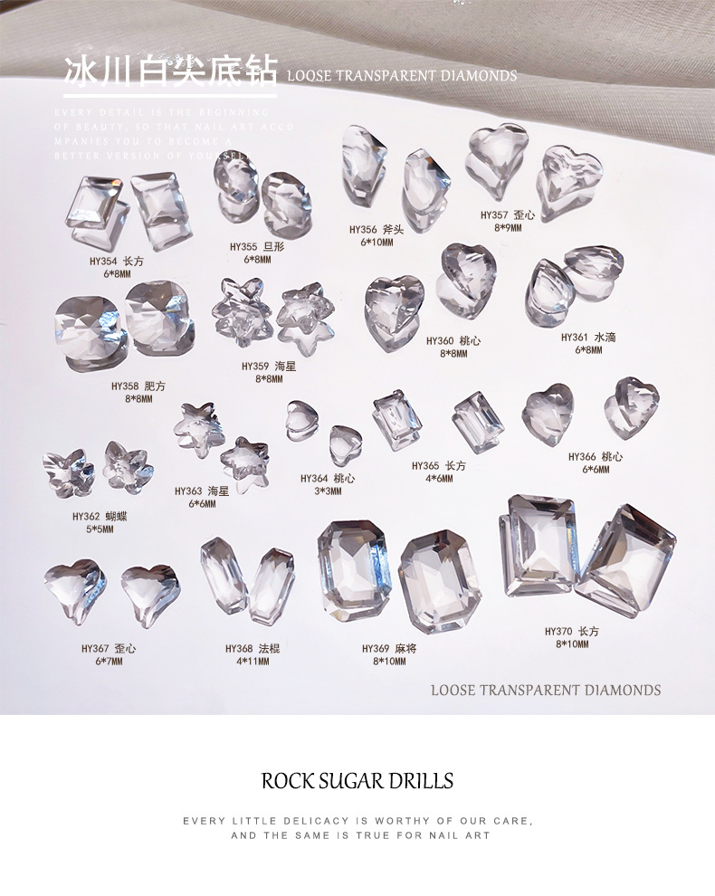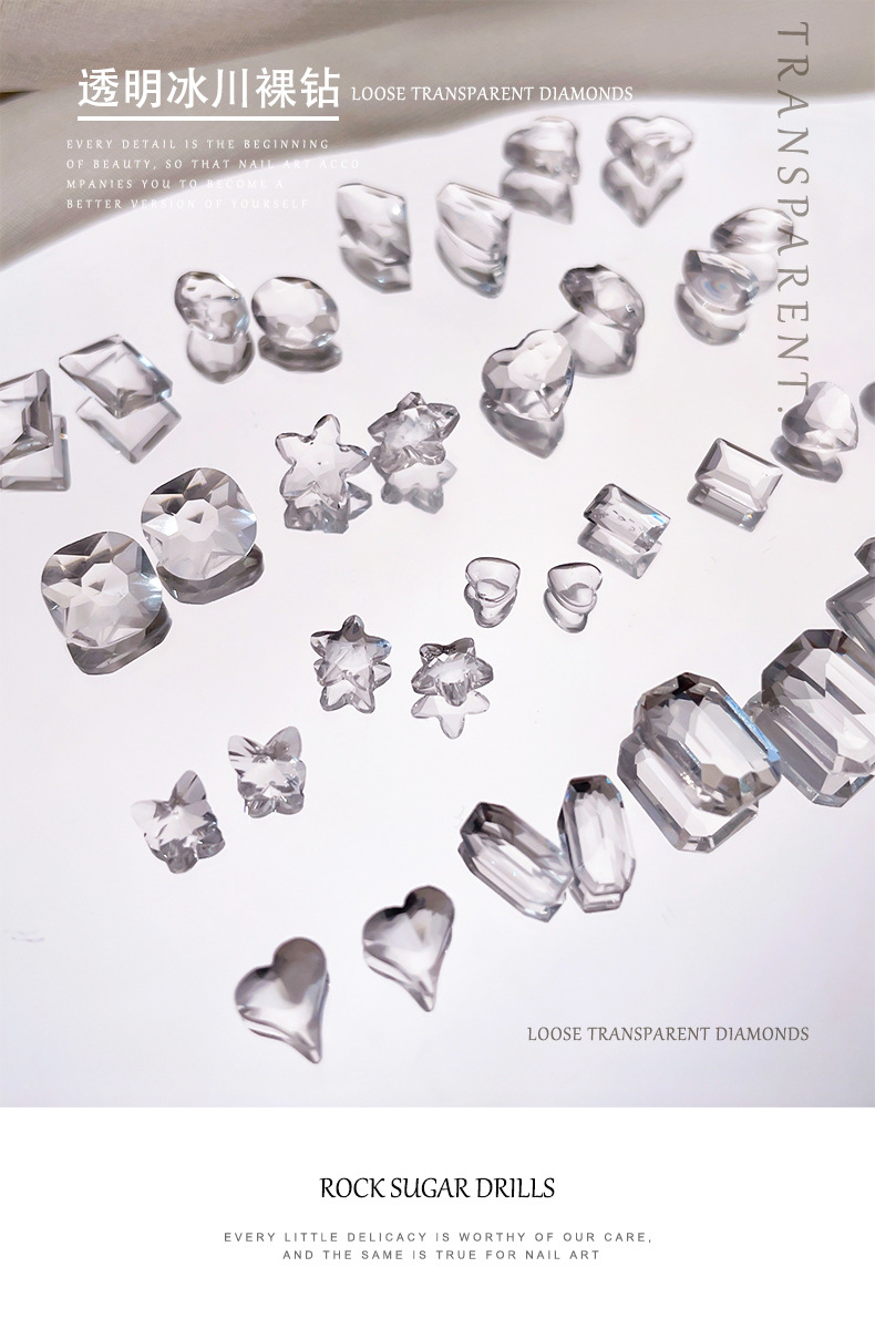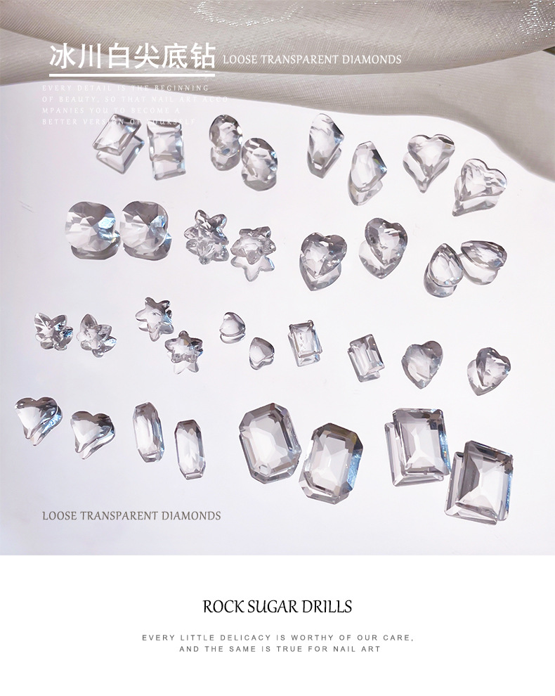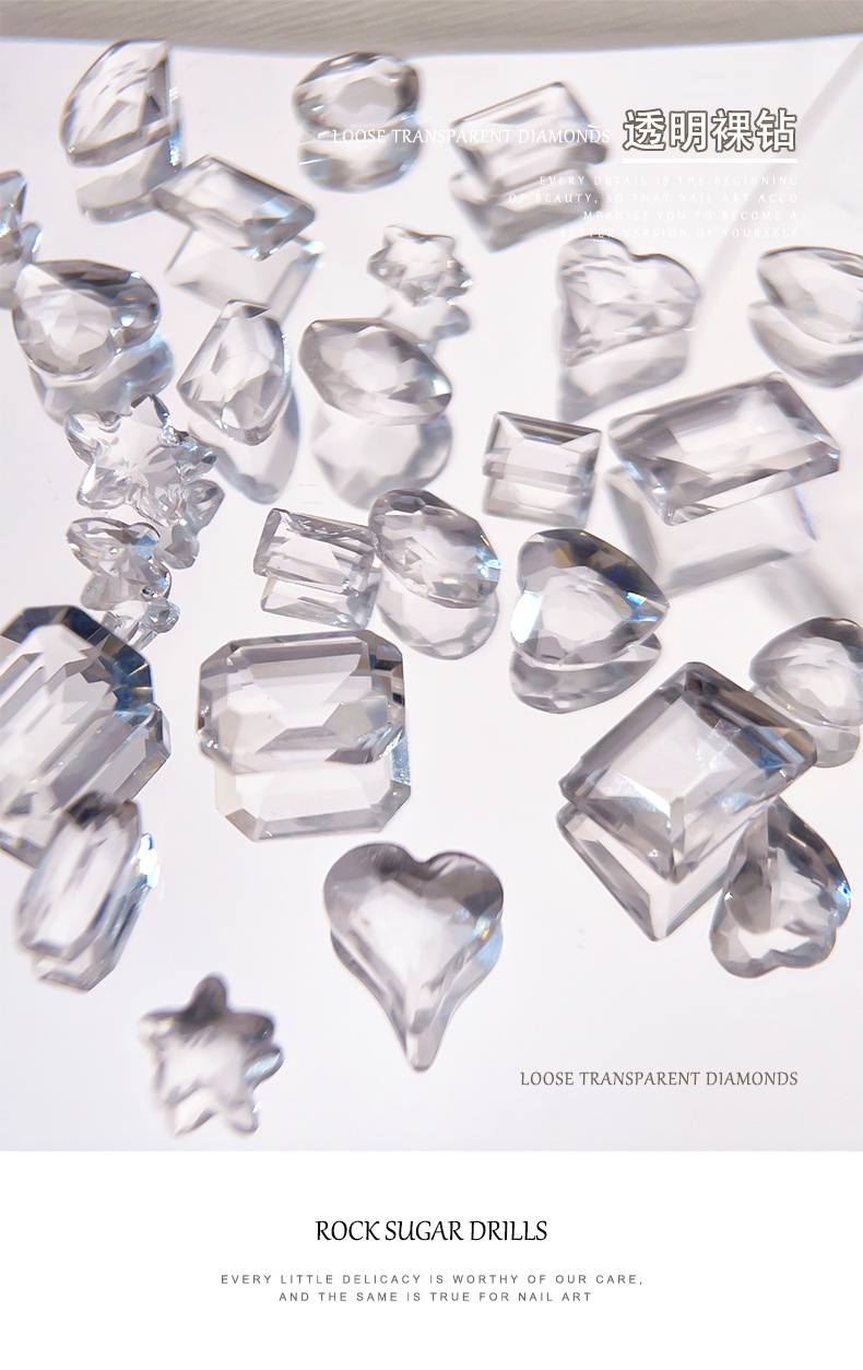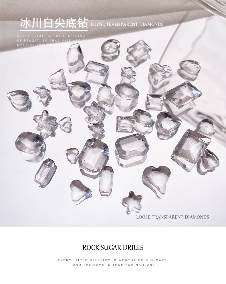 빙하 흰색 뾰족한 손톱 보석 투명 바닥 비뚤어진 심장 사랑 알몸 다이아몬드 바위 캔디 DIY 네일 장식 액세서리 도매스토어 가기