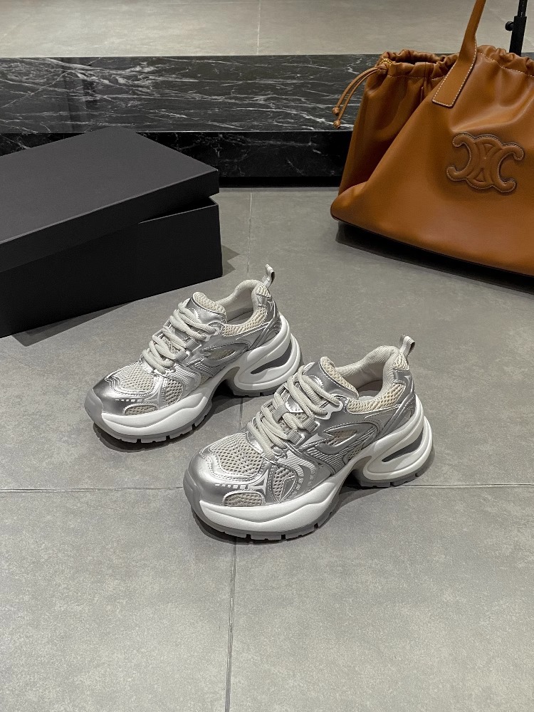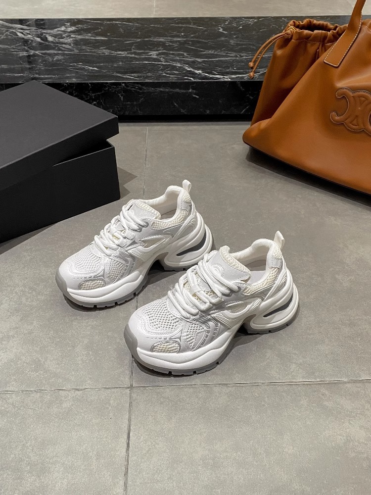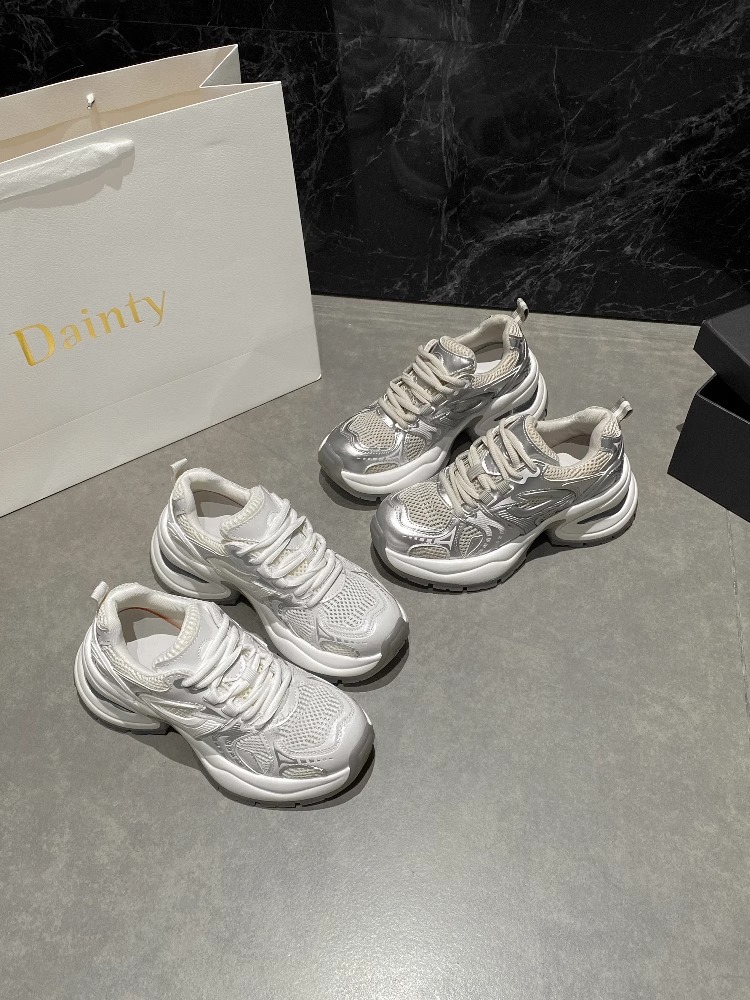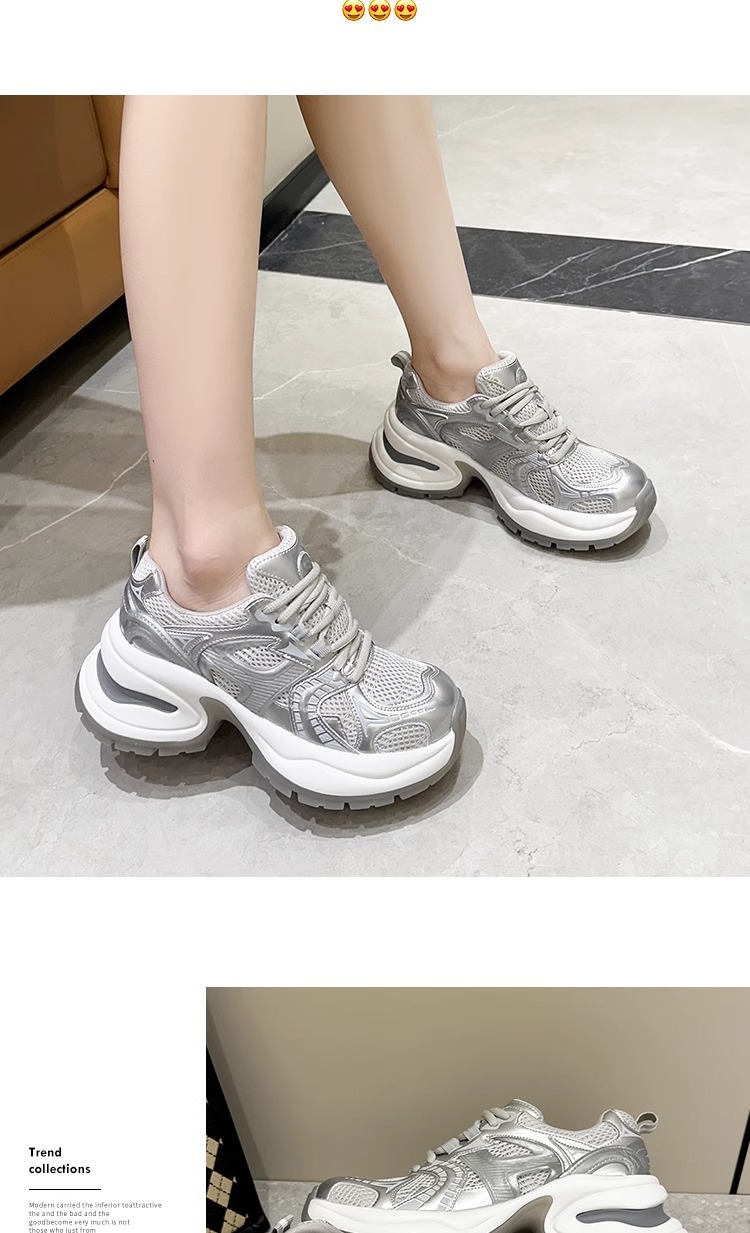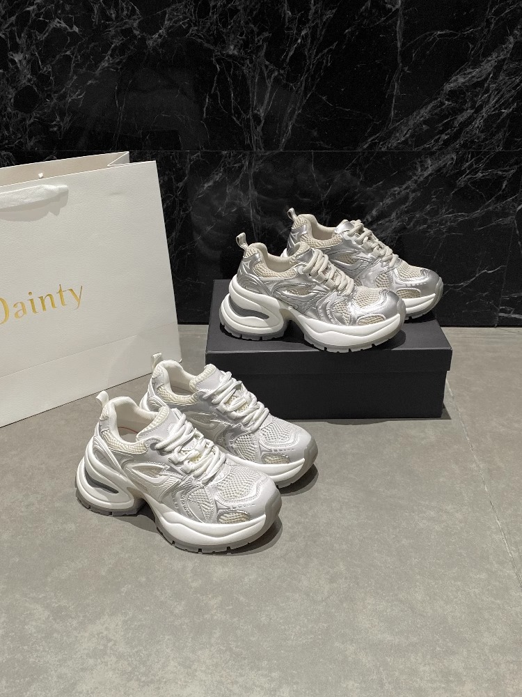 여성을위한 유럽 역 정품 가죽 아빠 신발 봄, 여름 메쉬 통기성 흰색 신발 두꺼운 밑창 캐주얼 스포츠 신발 유행스토어 가기