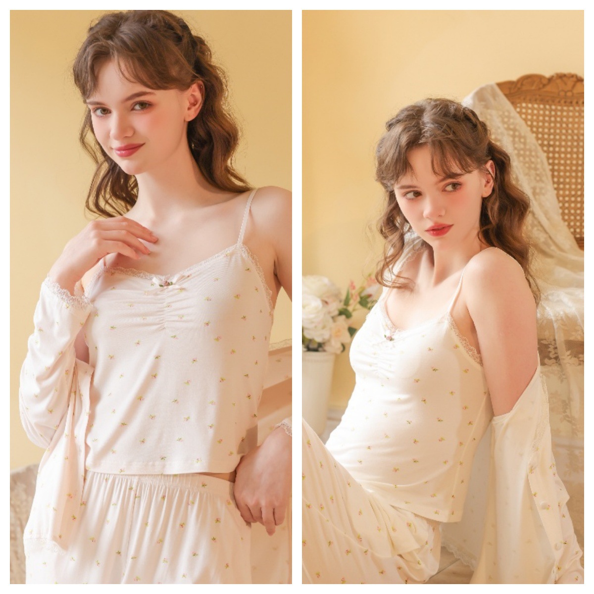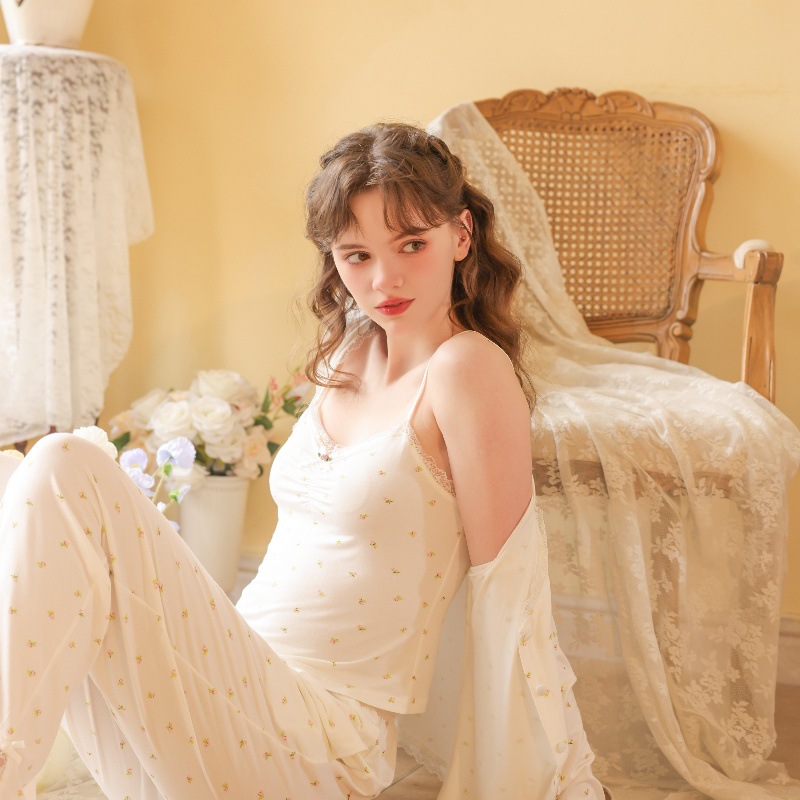 프랑스 잠옷 여성의 봄과 가을 긴팔 일본 달콤한 공주 슬링 파자마 3 피스 세트 모달 홈 옷스토어 가기