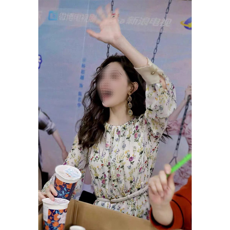 2024 Zhong Chuxi 같은 스타일 프랑스 스타일 우아한 꽃 긴 원피스 여신 스타일 해변 휴일 스타일 원피스 봄 새로운스토어 가기