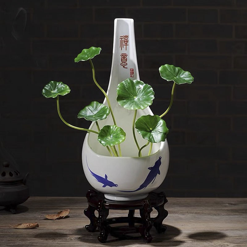 중국 선 스타일 세라믹 크리에이티브 꽃병 레트로 입구 TV 캐비닛 수경 꽃병 홈 장식 공예 꽃 냄비스토어 가기