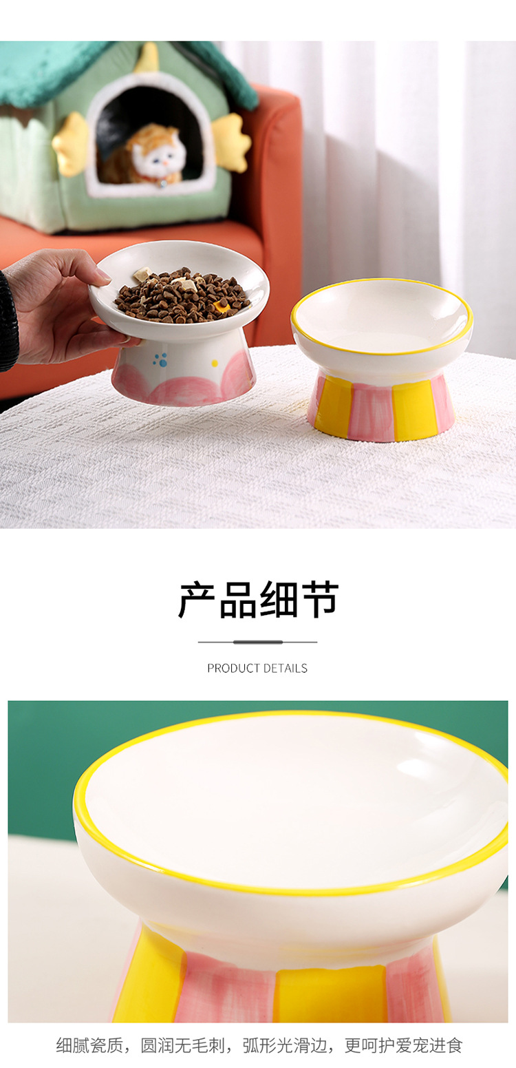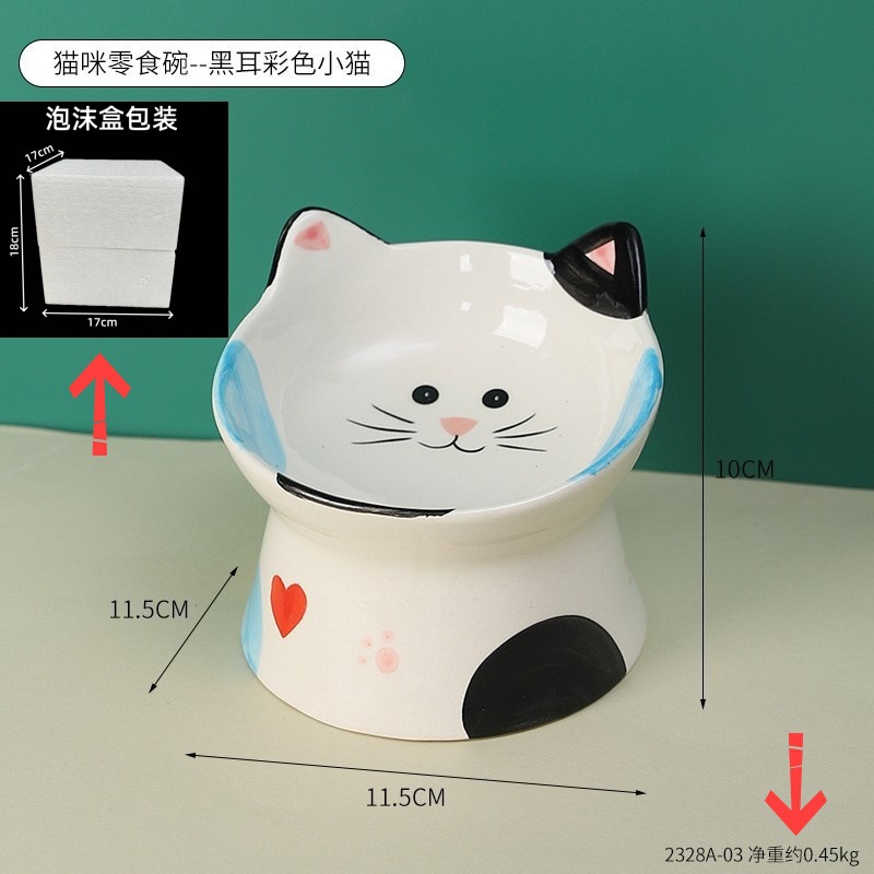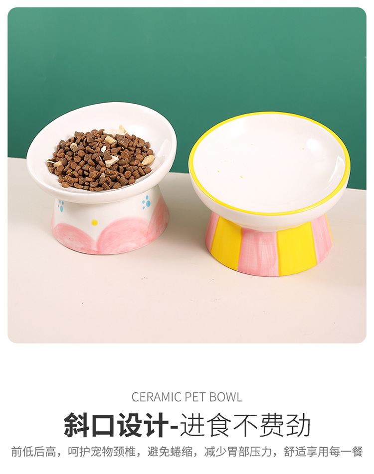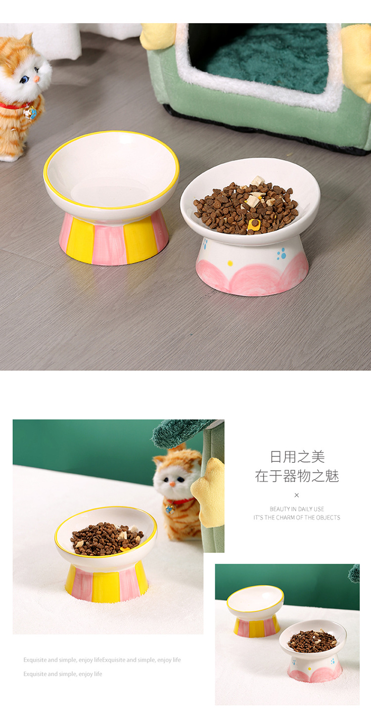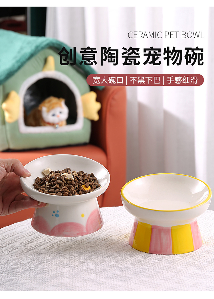 창조적 인 세라믹 애완 동물 사발 입 목 보호 고양이 식품 높은 발 고양이 그릇 귀여운 그림 고양이 음식 물 다기능 그릇