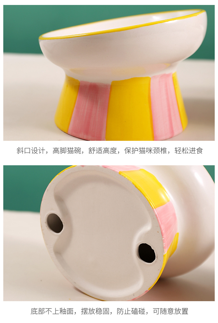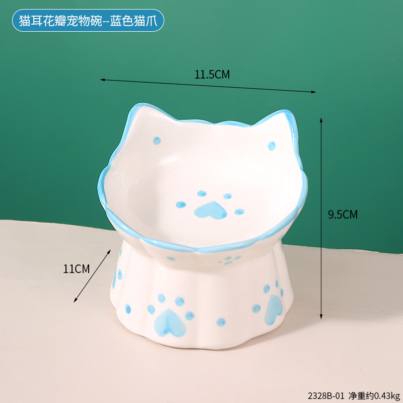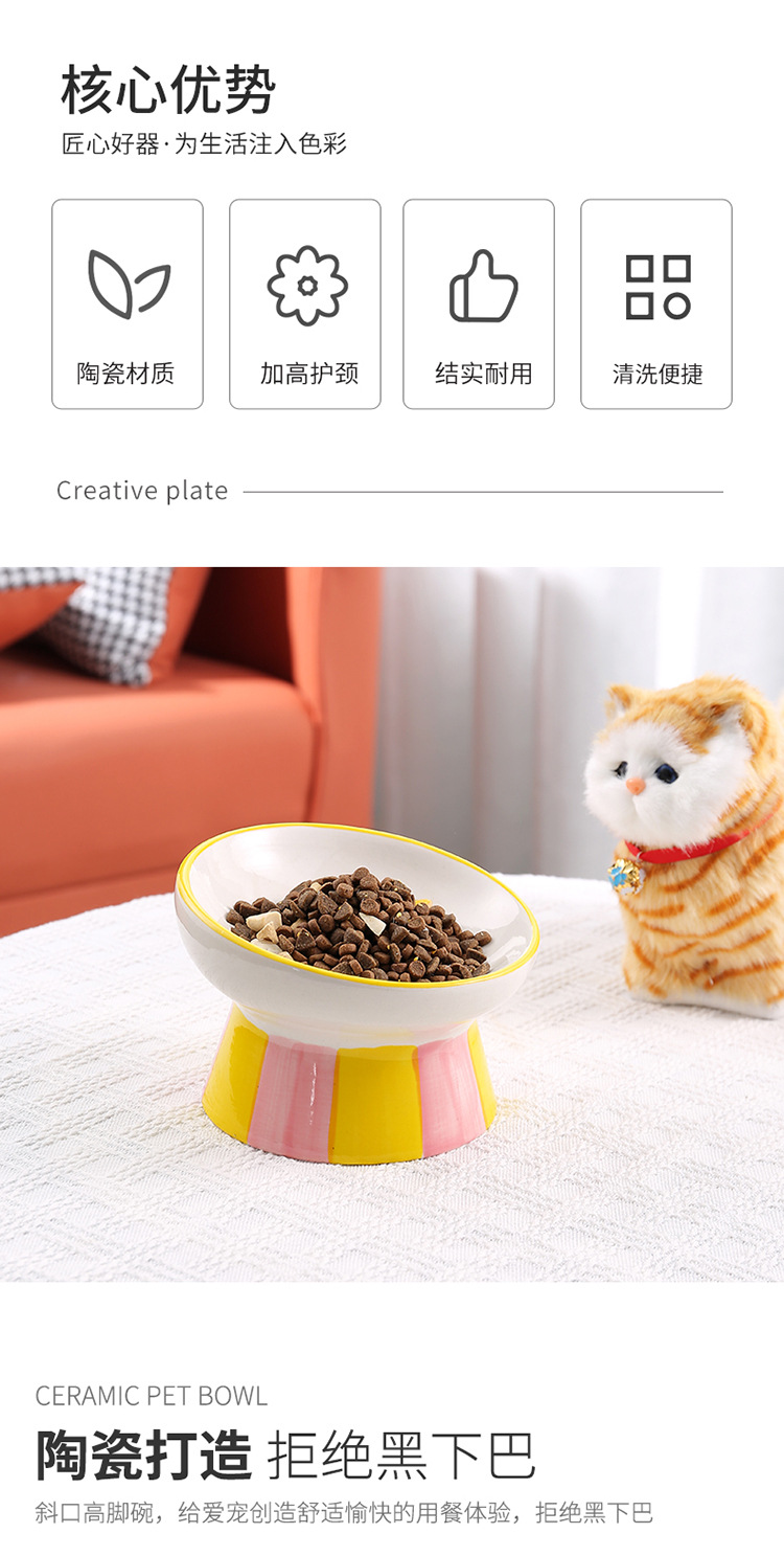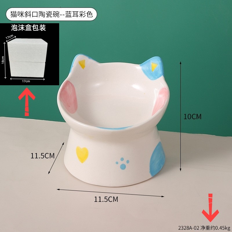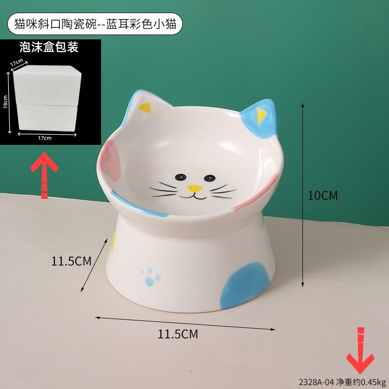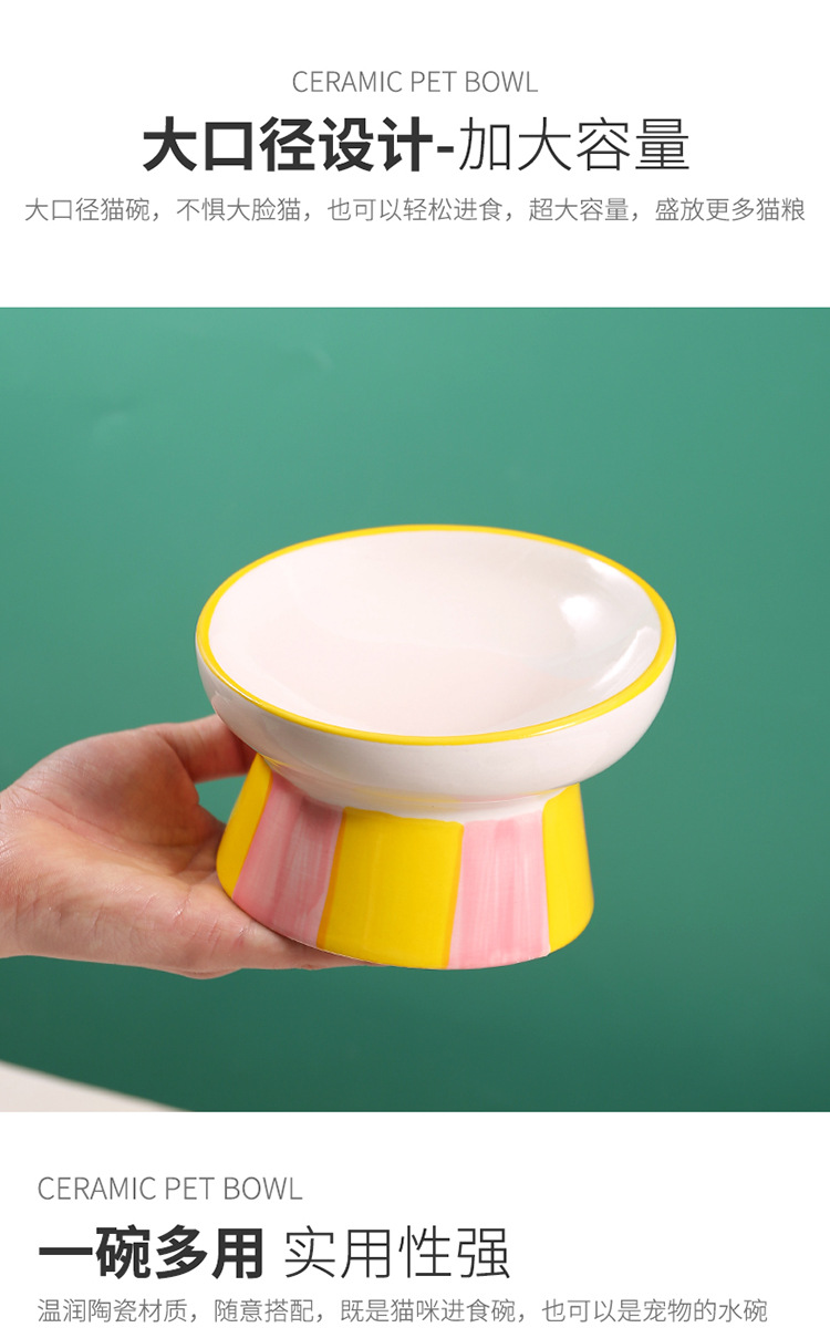 창조적 인 세라믹 애완 동물 사발 입 목 보호 고양이 식품 높은 발 고양이 그릇 귀여운 그림 고양이 음식 물 다기능 그릇