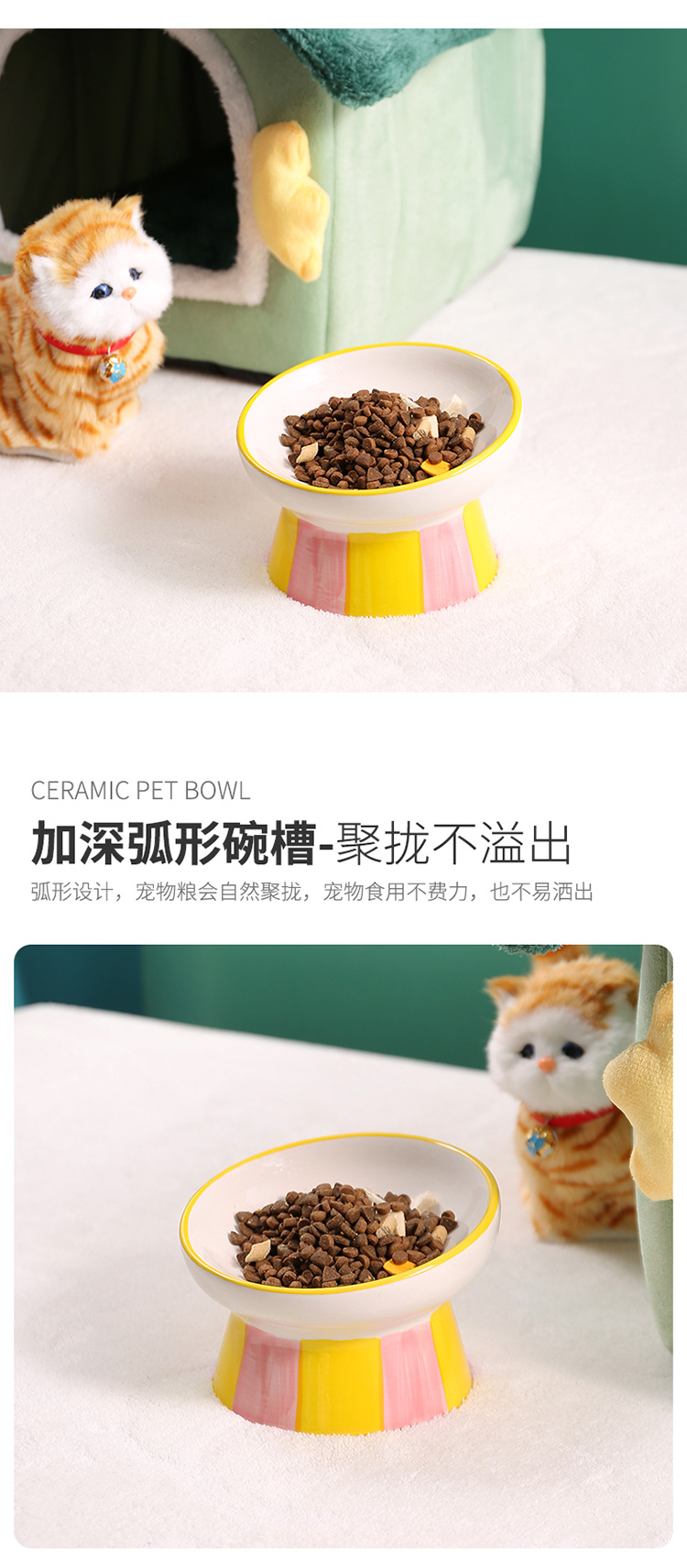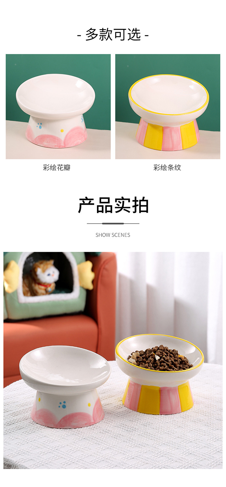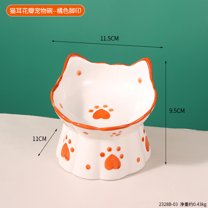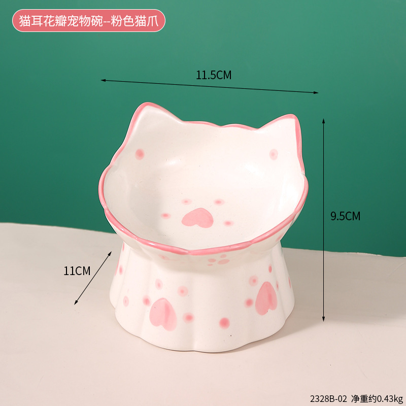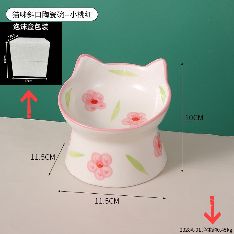 창조적 인 세라믹 애완 동물 사발 입 목 보호 고양이 식품 높은 발 고양이 그릇 귀여운 그림 고양이 음식 물 다기능 그릇