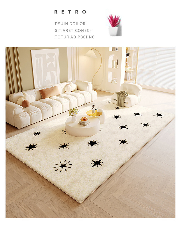 흑백 크림 스타일 모조 캐시미어 카펫 가정용 침실 침실 카펫 거실 큰 지역 먼지 방지 소파 커피 테이블 매트스토어 가기