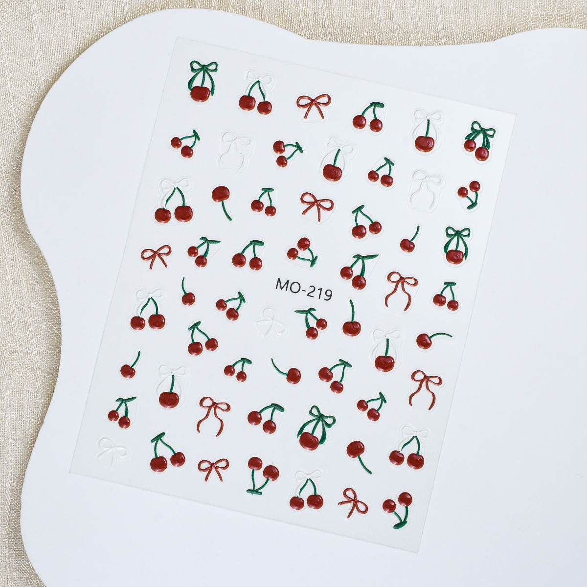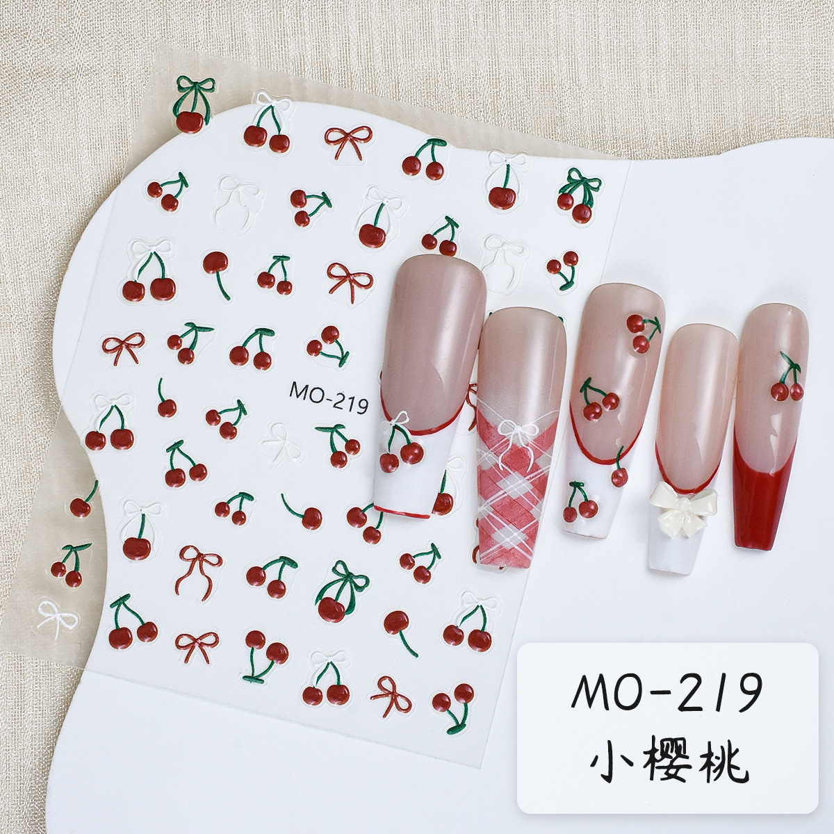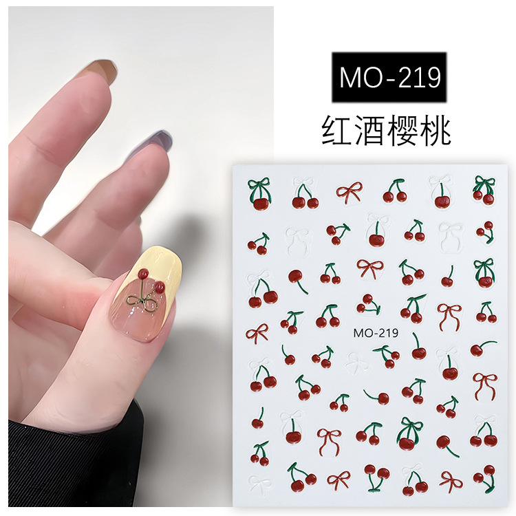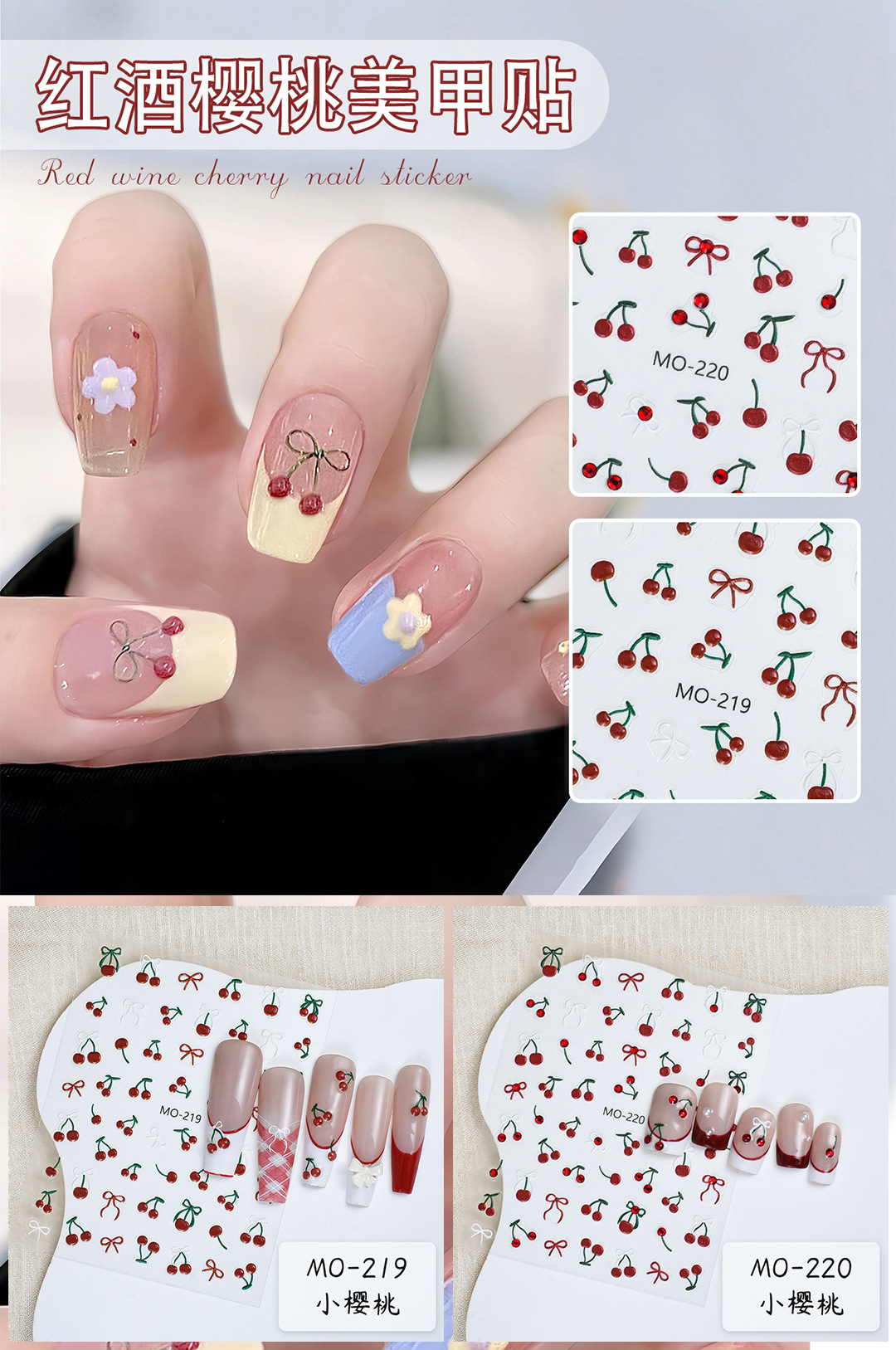 Guofeng 폭발성 버건디 체리 네일 아트 스티커 부조 순수한 욕망 레드 다이아몬드 스티커 체리 네일 스티커 장갑 보석스토어 가기