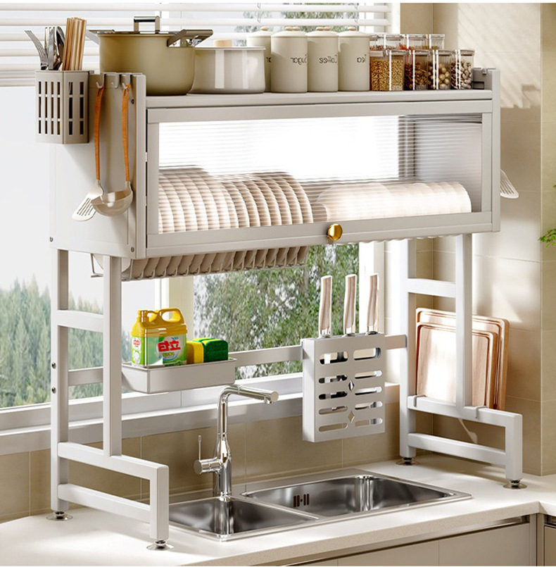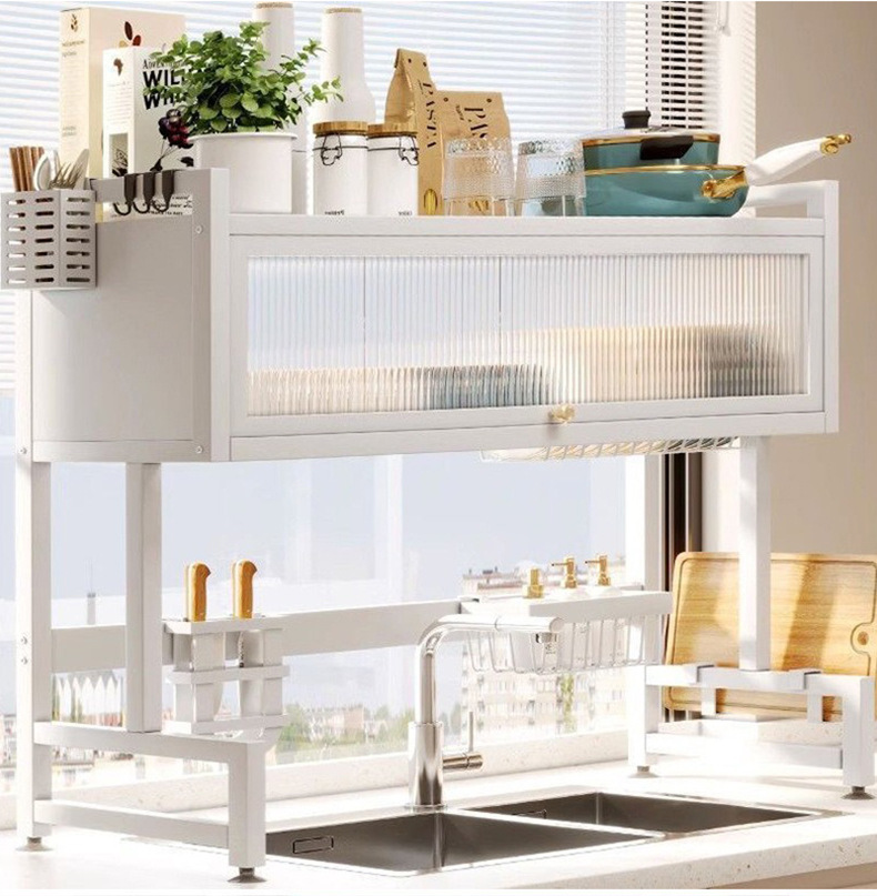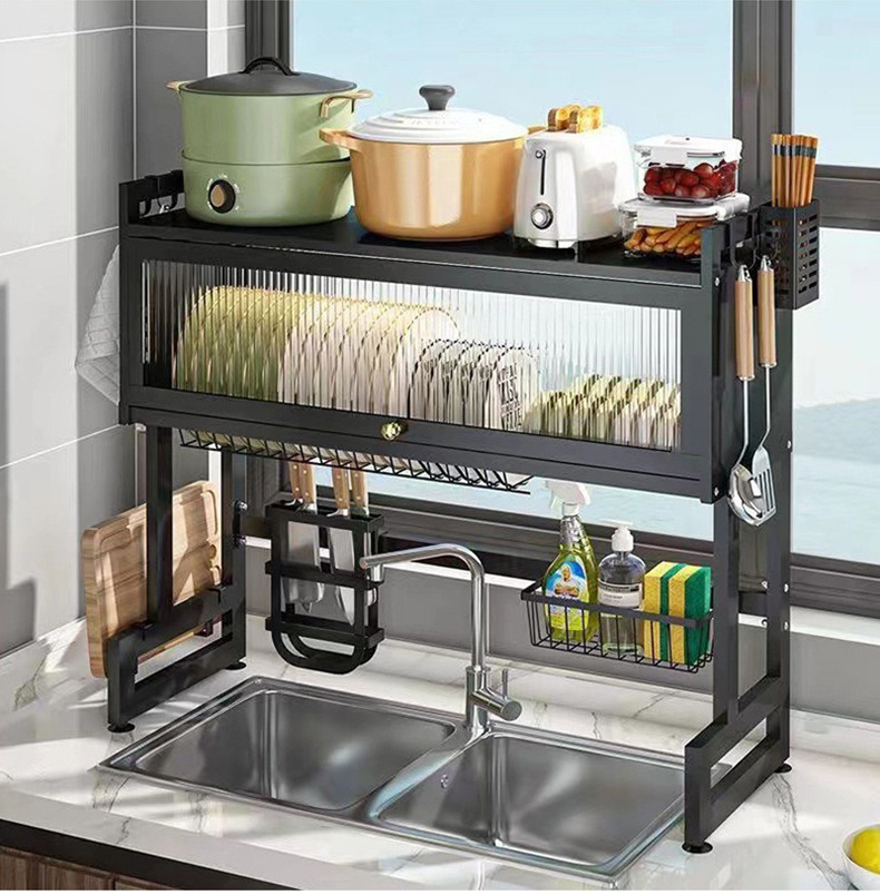 주방 싱크대 수납 선반 이중층 접이식 접시 보관 선반 카운터탑 배수 선반 싱크대 접시 보관 선반
