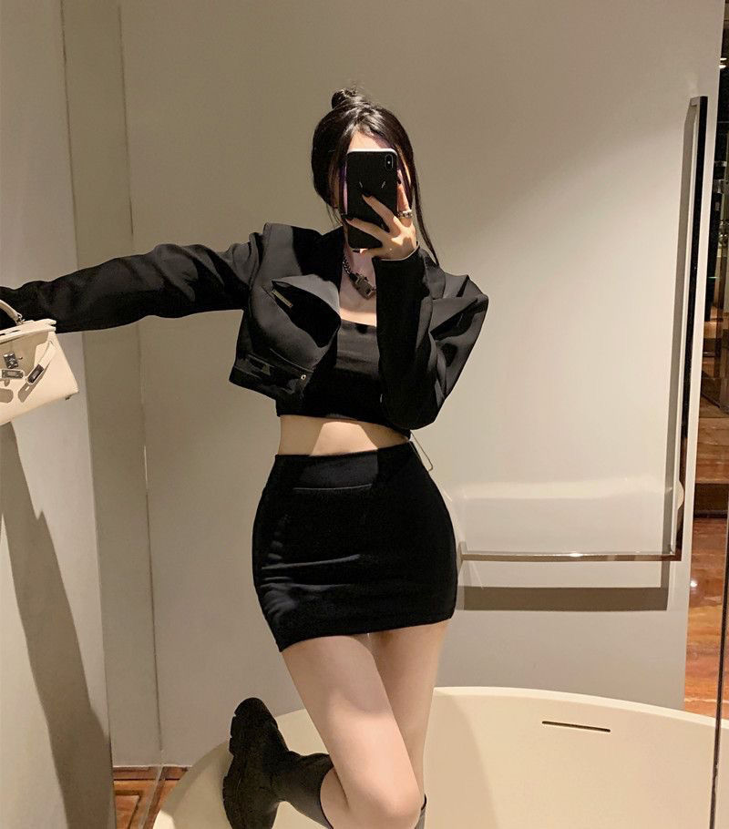 여자 짧은 치마 엉덩이 치마 전문 치마 가을 탄성 한 단계 치마 단단한 치마 검은 일 스커트 슬리밍
