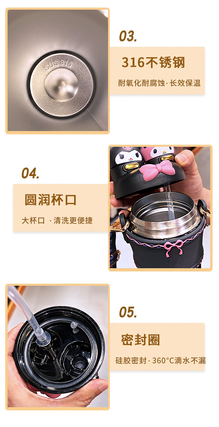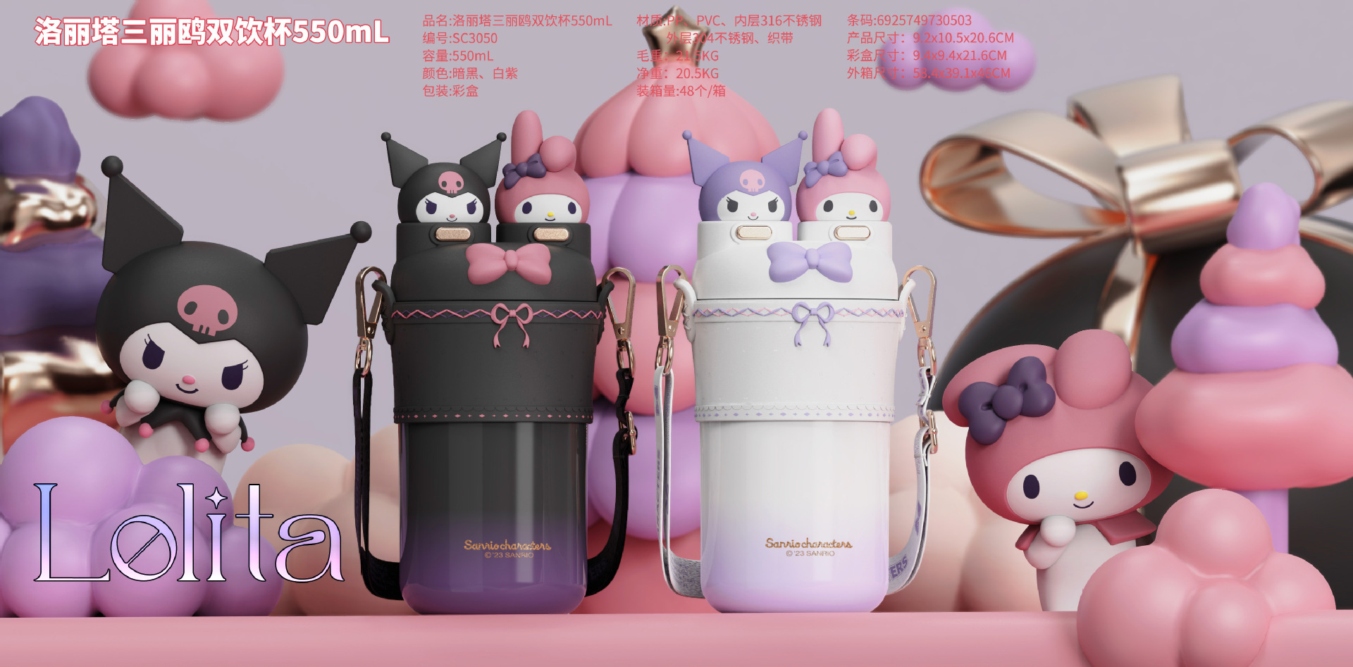 Acus Lolita 더블 음료 보온병 컵 밀짚을 가진 여자 높은 색 가치 워터 컵 316 스테인레스 스틸 어린이 보온병 컵