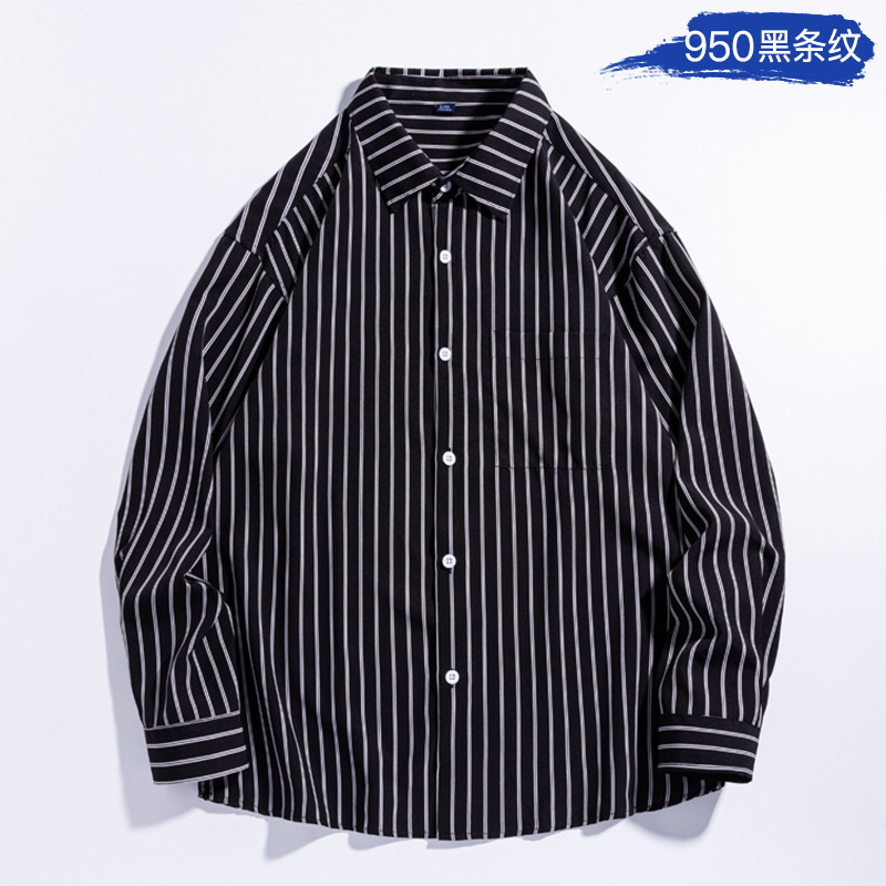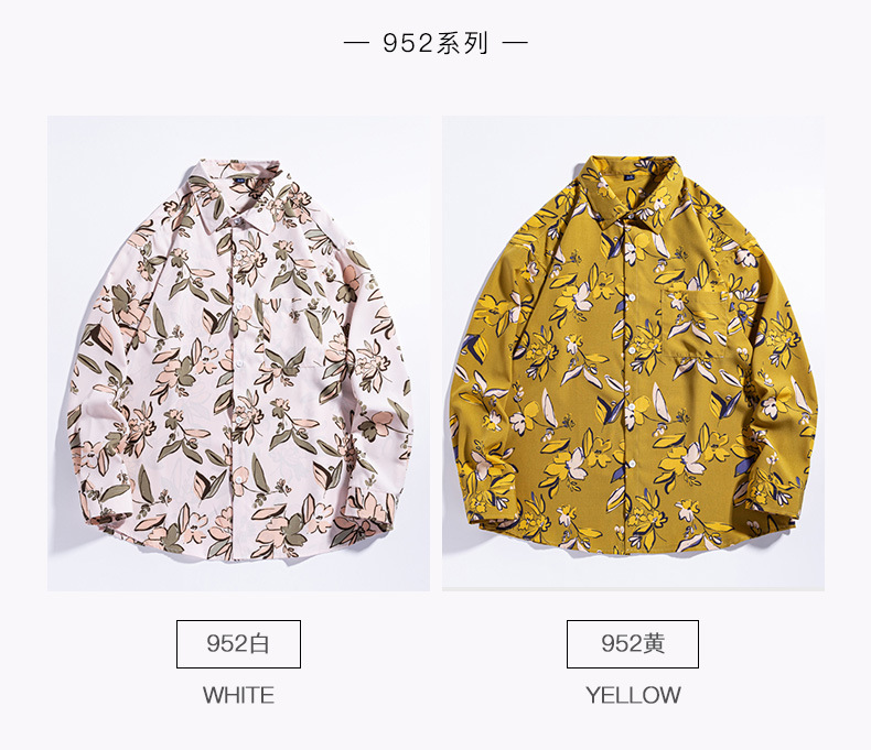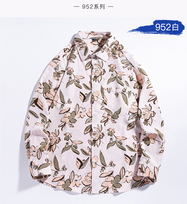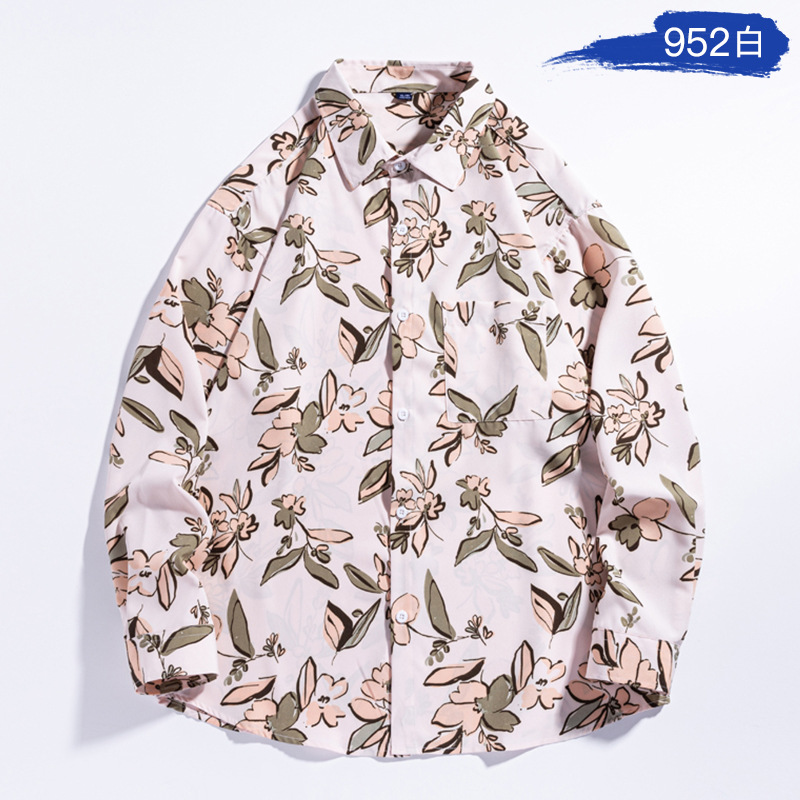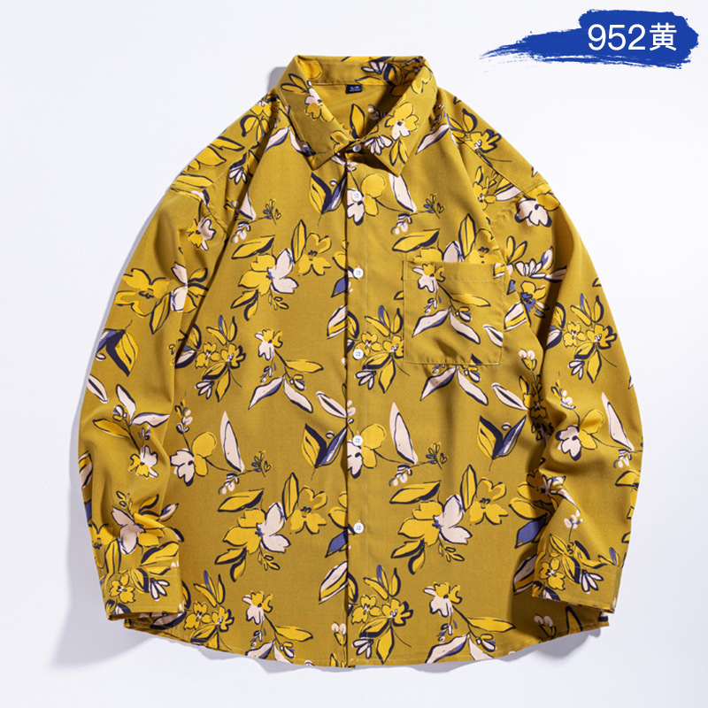 4 면 캐주얼 남성 긴팔 셔츠 패션 홍콩 스타일 남성 셔츠 인쇄 셔츠 느슨한 대형 청소년