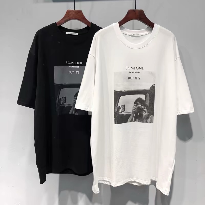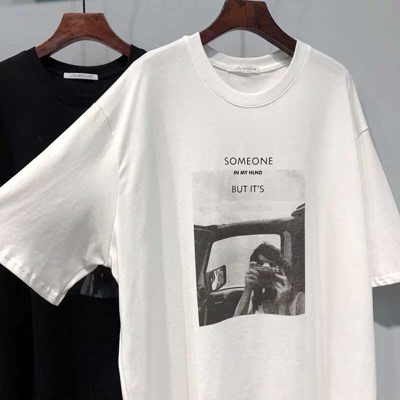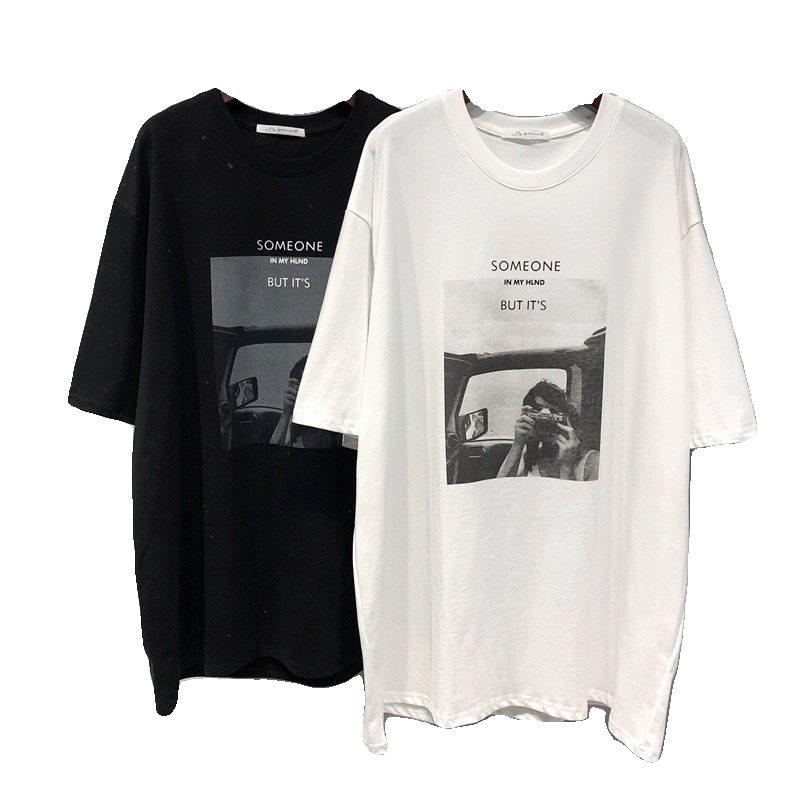 통통녀 mm 한국 ulzzang 새로운 도착 뷰티 캐릭터 인쇄 느슨한 유럽면 반팔 티셔츠 여성의 여름 패션스토어 가기
