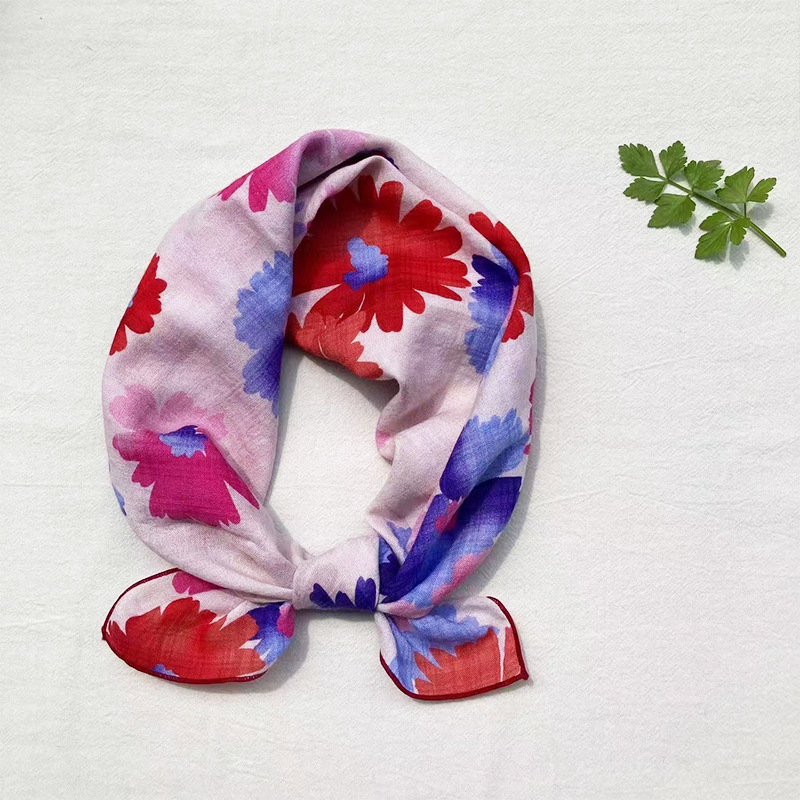 면 및 리넨 작은 광장 스카프 신선한 꽃 예술적 기질 올 매치 장식 스카프 패션 헤어 밴드 일본과 한국 스타일 퓨어 코튼 스카프