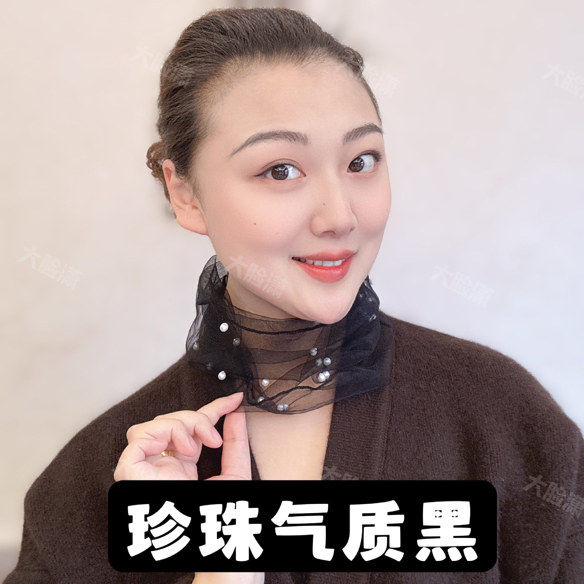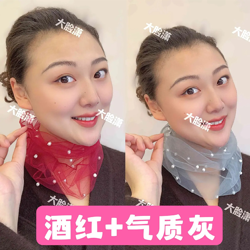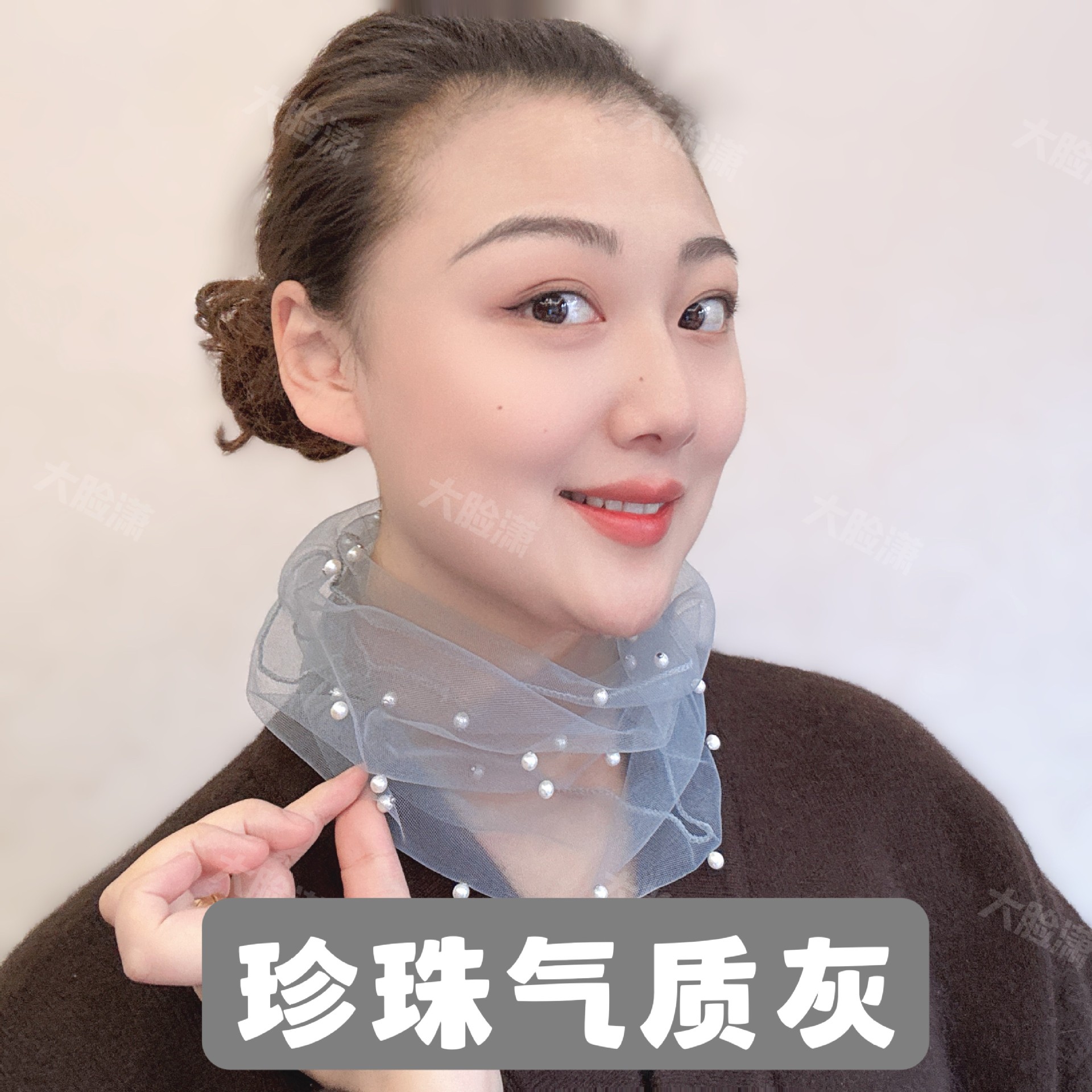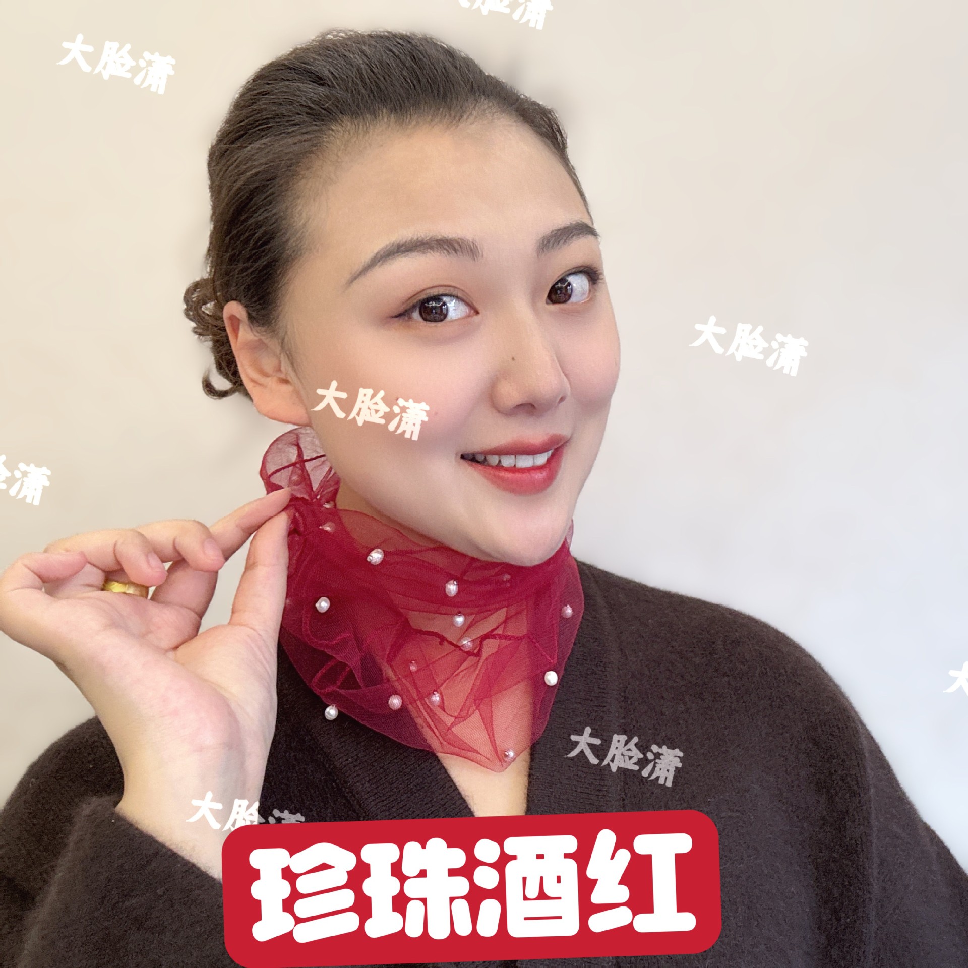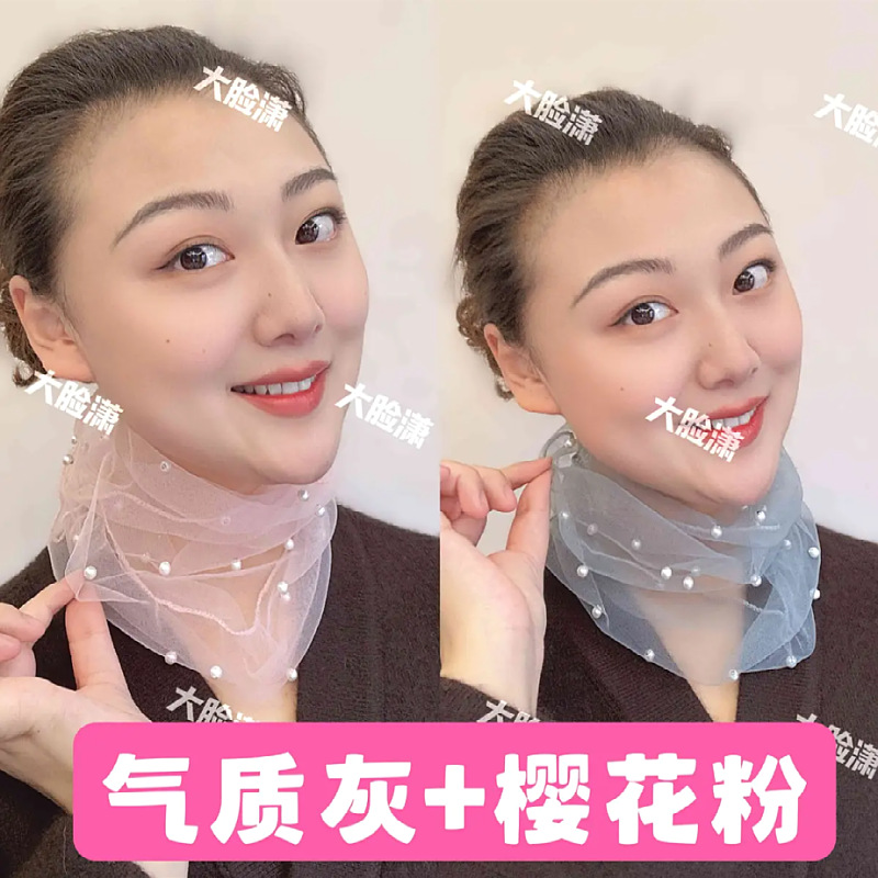 빅 페이스 샤오 썬 보호 스카프 목 얇은 여자 여름 실크 스카프 올 매치 레이스 베일 마카롱 비드 스카프