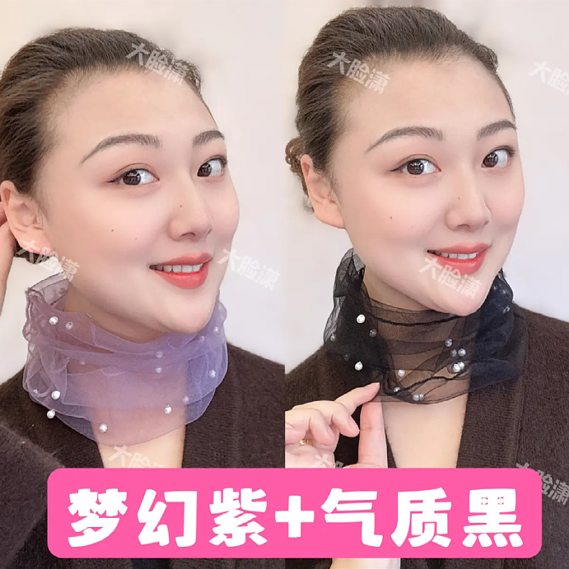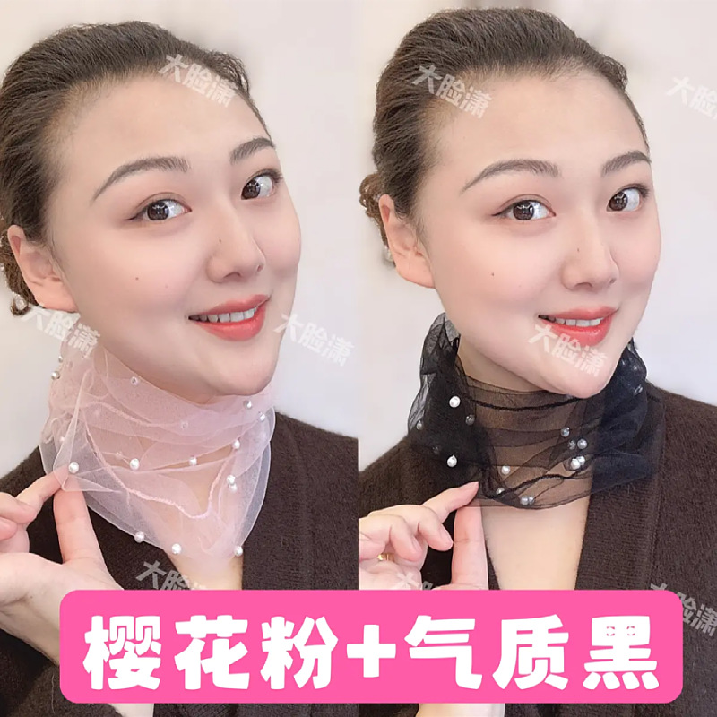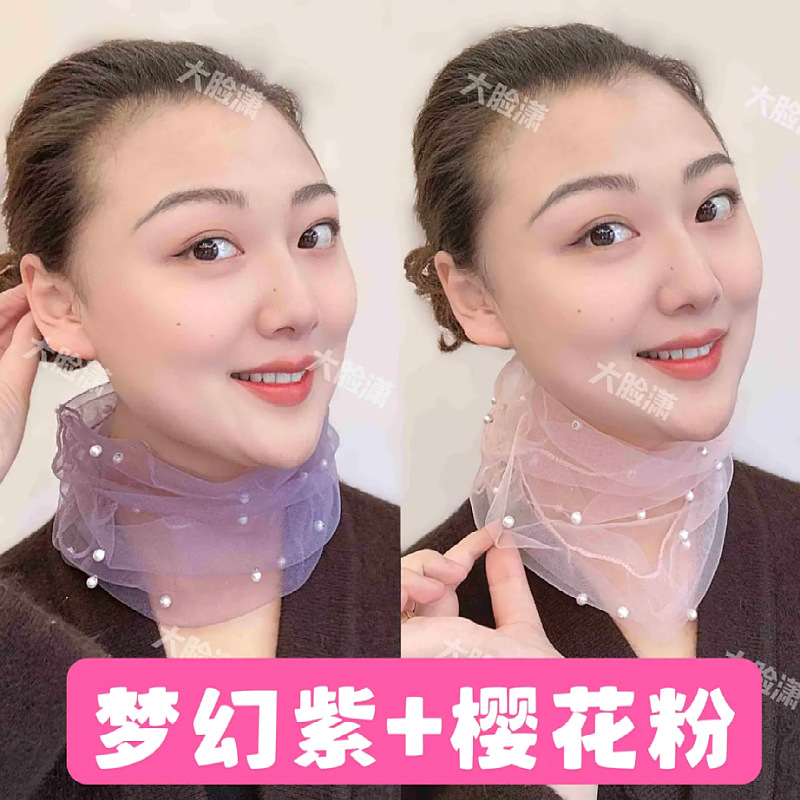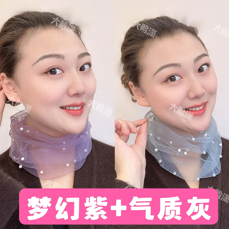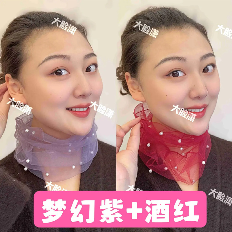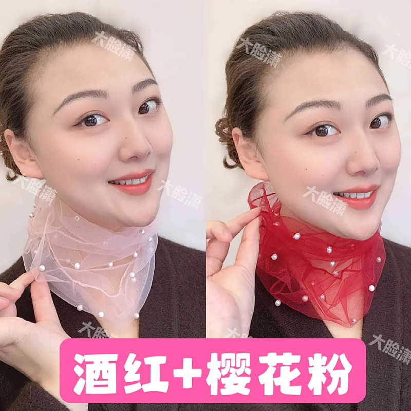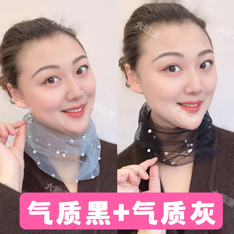 빅 페이스 샤오 썬 보호 스카프 목 얇은 여자 여름 실크 스카프 올 매치 레이스 베일 마카롱 비드 스카프