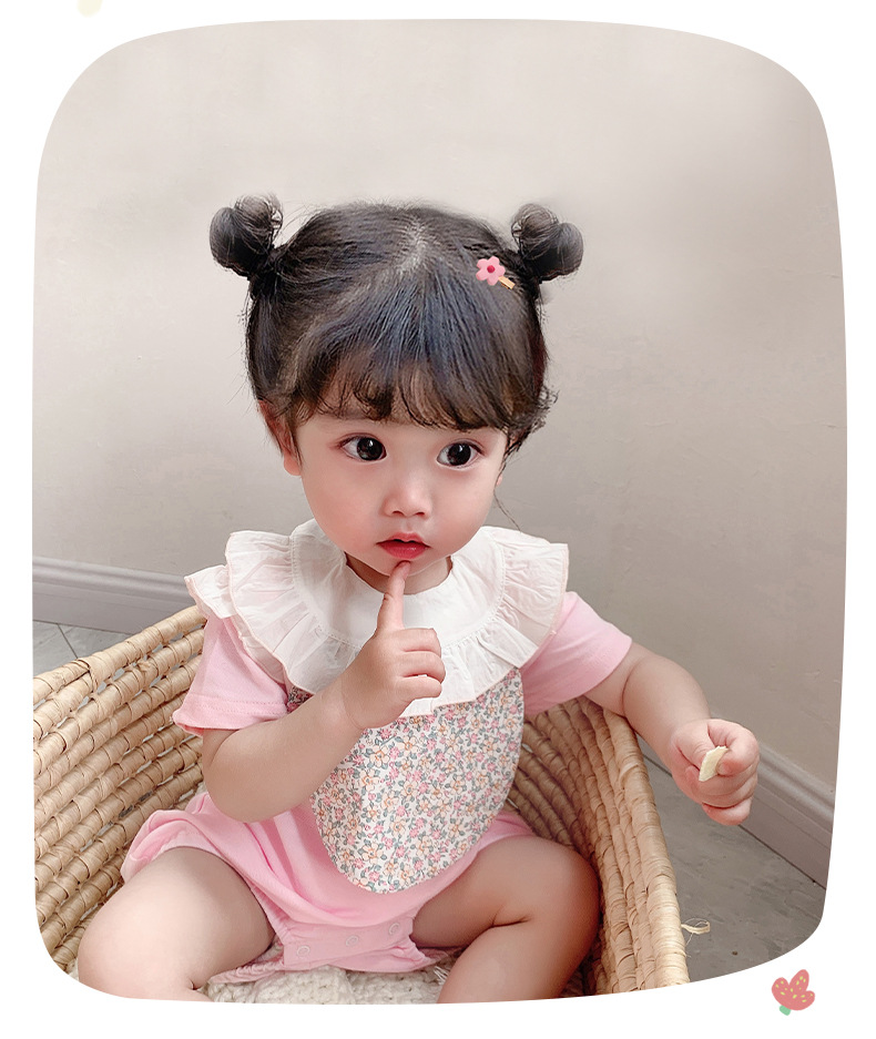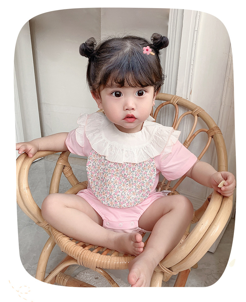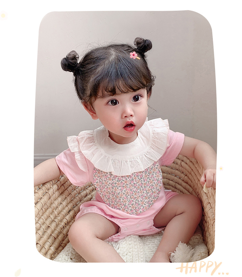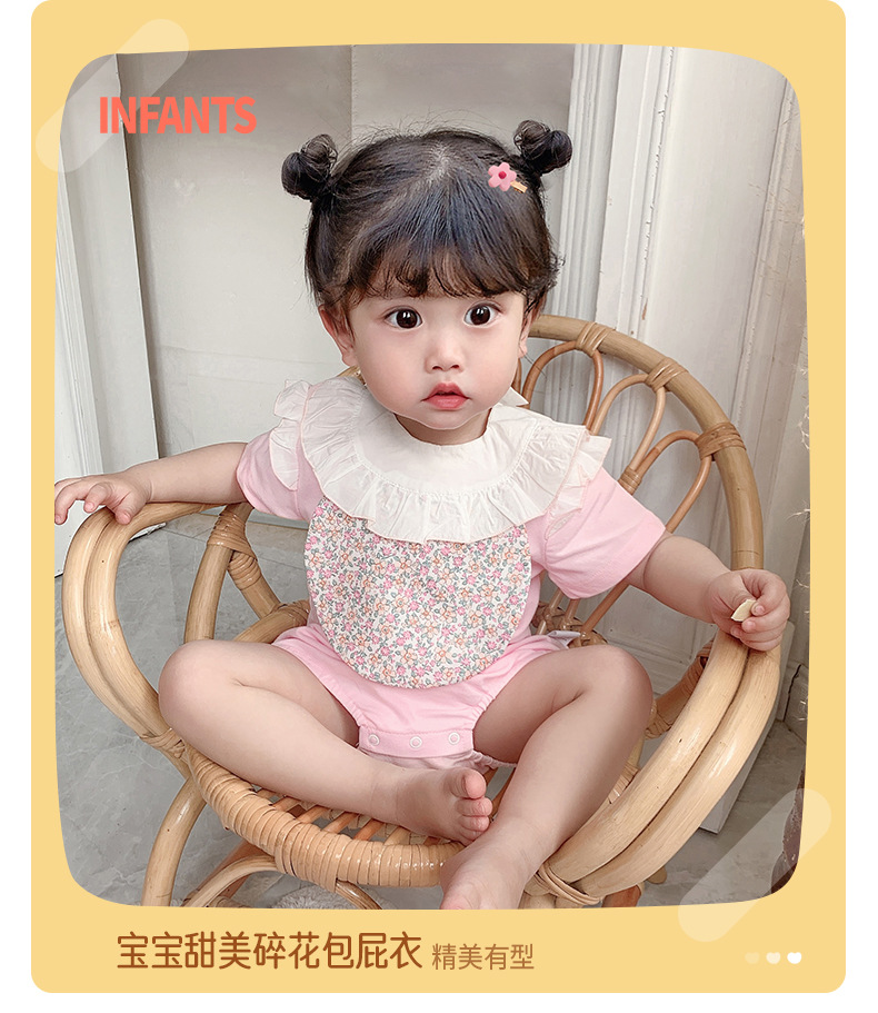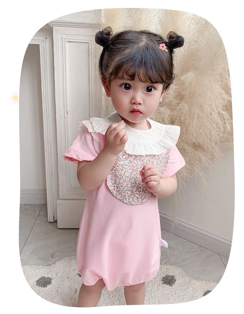 2024 년 여름 새 스타일 점프 수트 공주 턱받이 포장 의류 아기 소녀의 반팔 점프 수트 꽃 2210스토어 가기