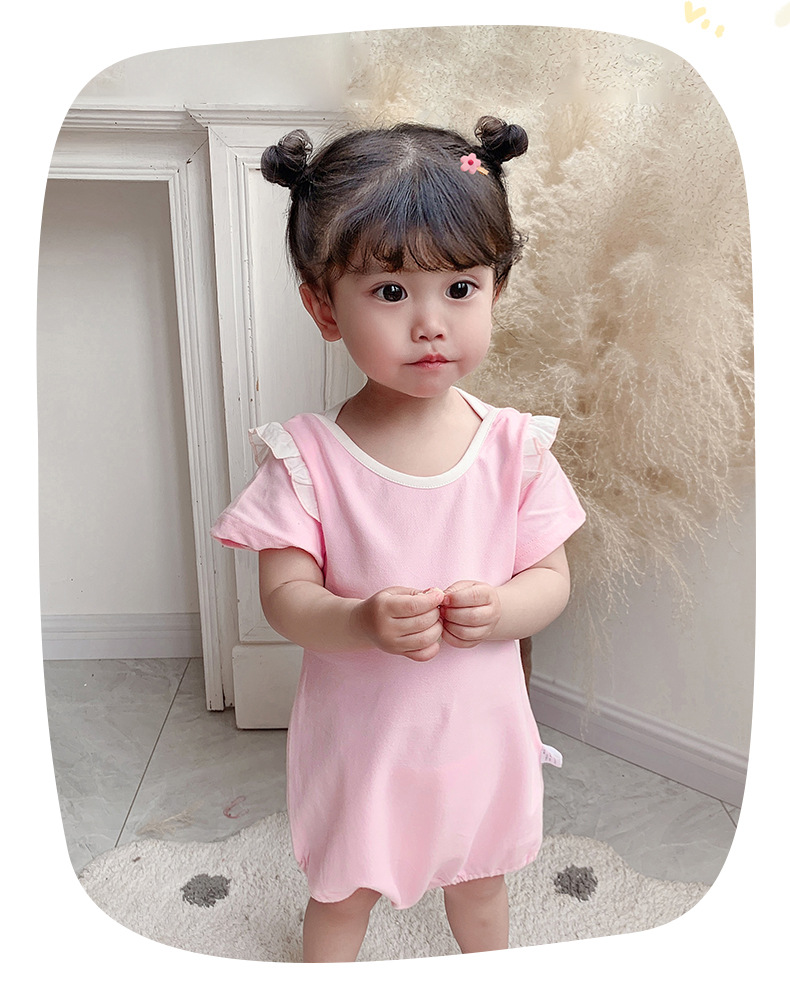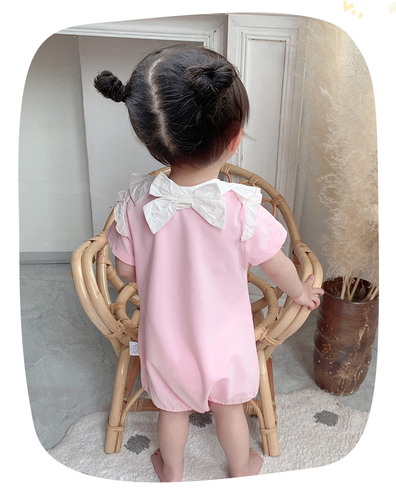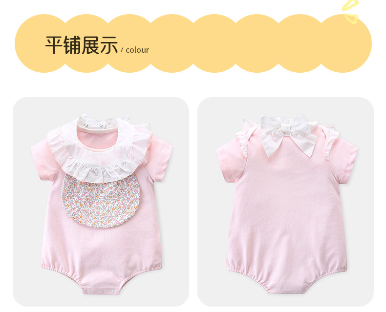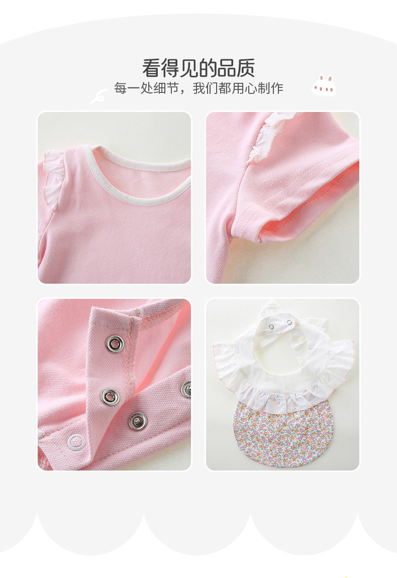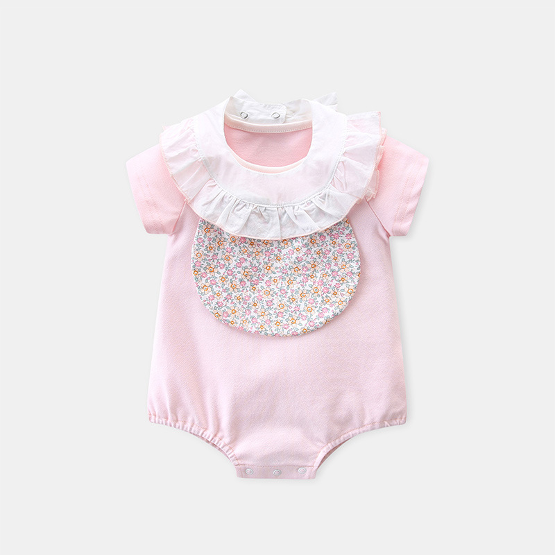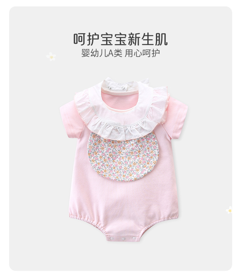 2024 년 여름 새 스타일 점프 수트 공주 턱받이 포장 의류 아기 소녀의 반팔 점프 수트 꽃 2210스토어 가기