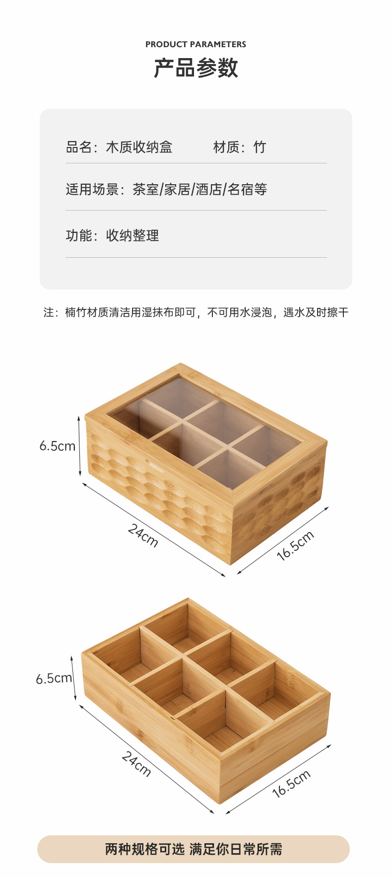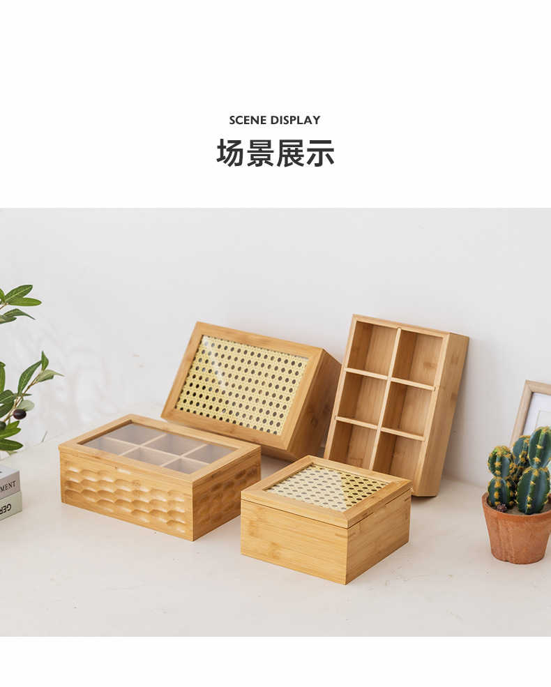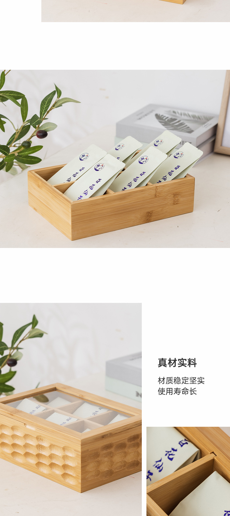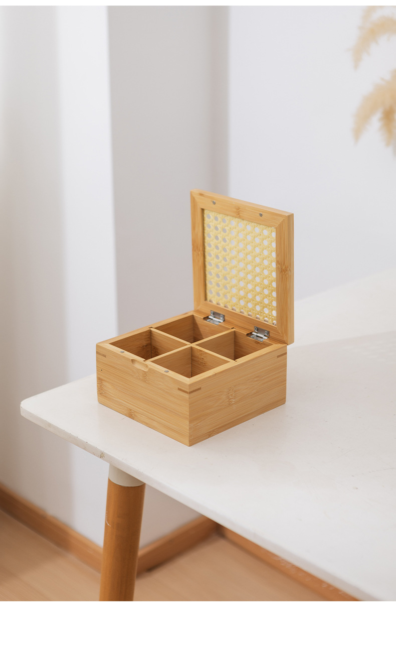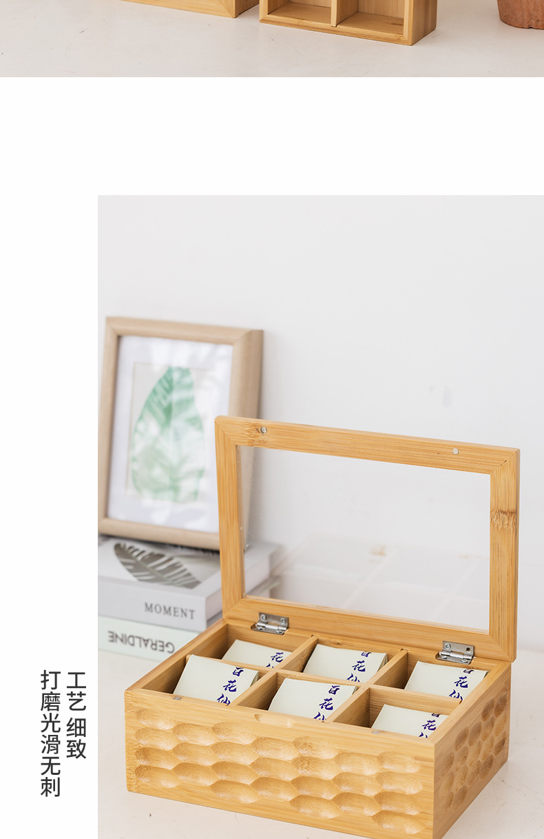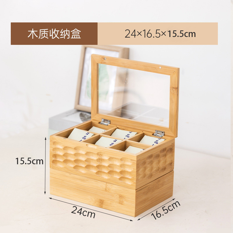 데스크탑 방진 티백 보관 상자 대나무 장난감 보석 보관 상자 약 포장 상자 Jiugongge 보관 상자스토어 가기