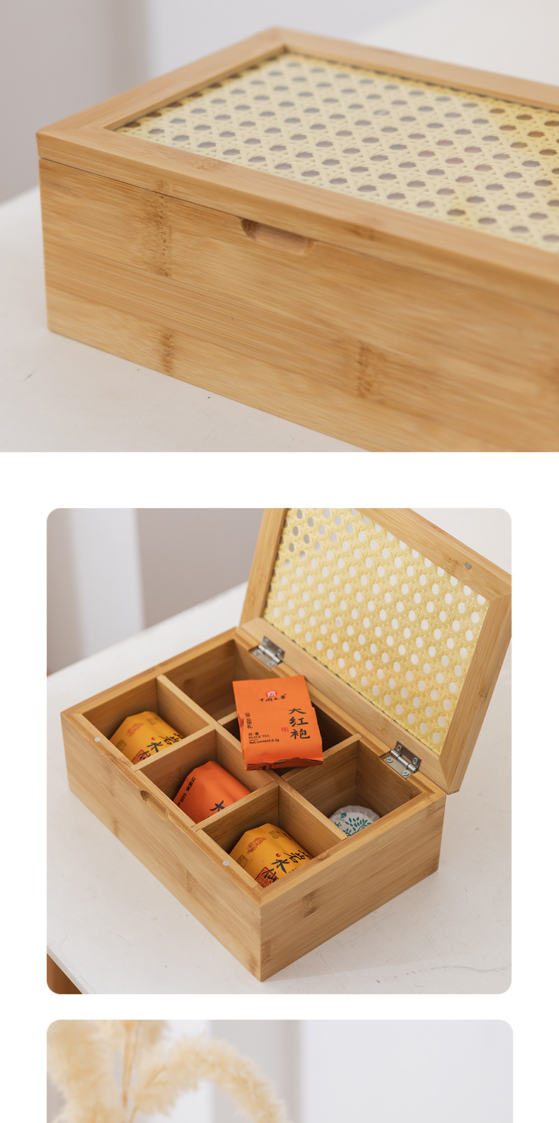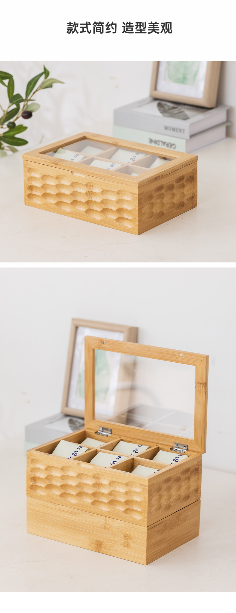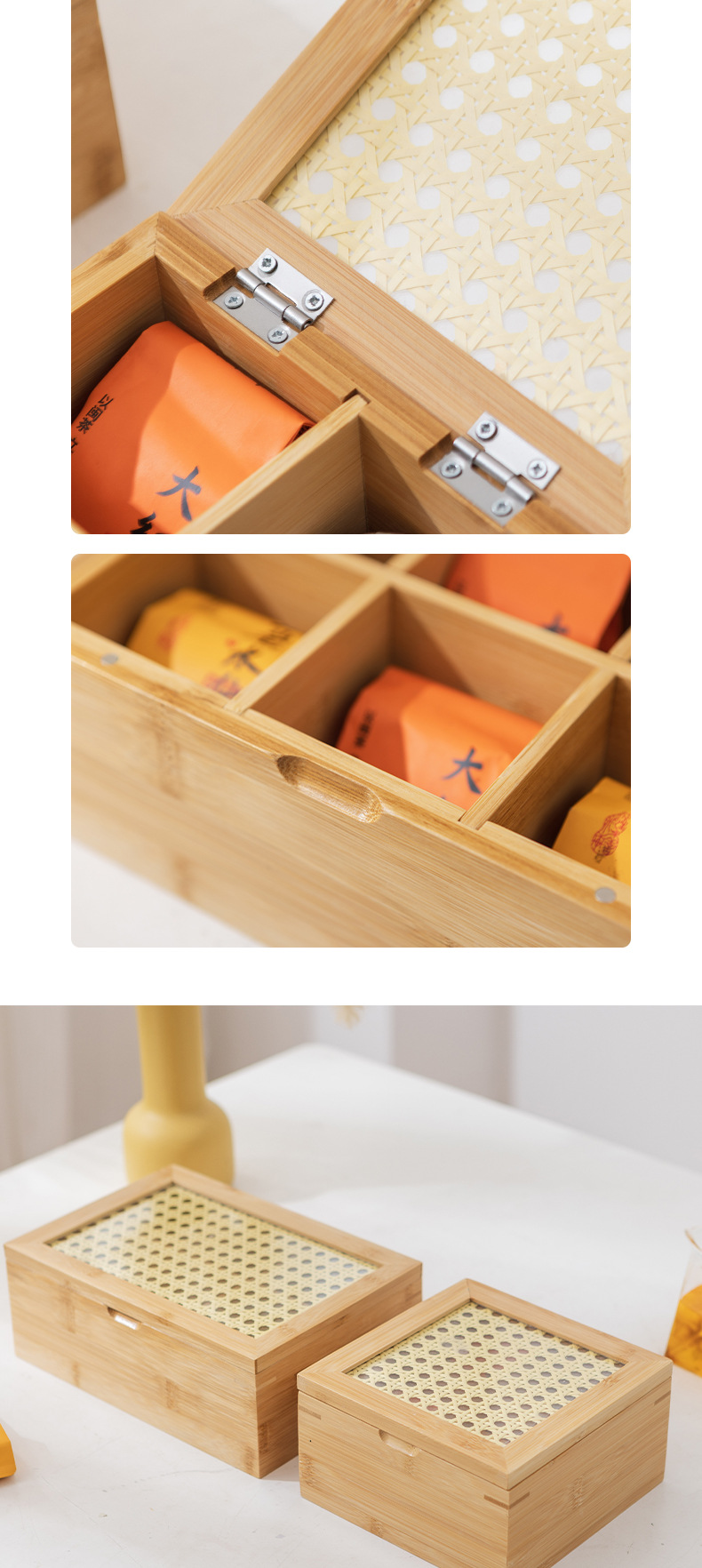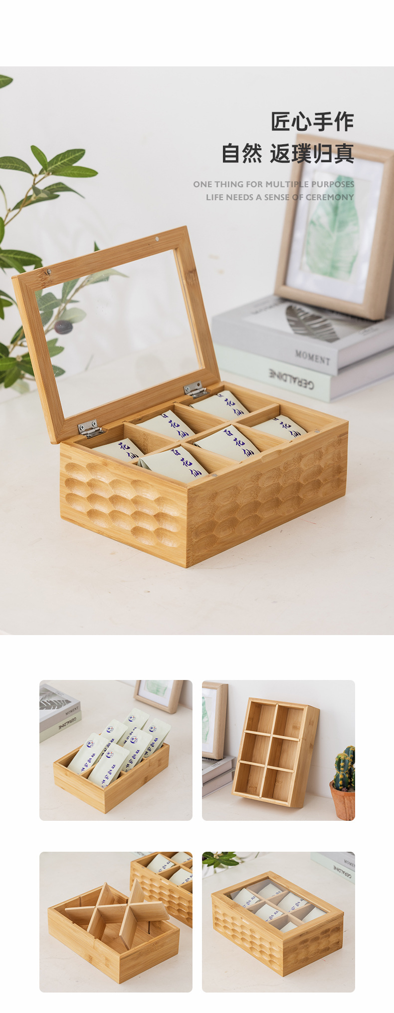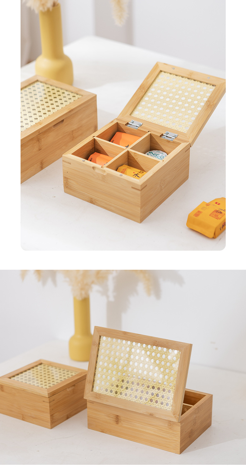 데스크탑 방진 티백 보관 상자 대나무 장난감 보석 보관 상자 약 포장 상자 Jiugongge 보관 상자스토어 가기