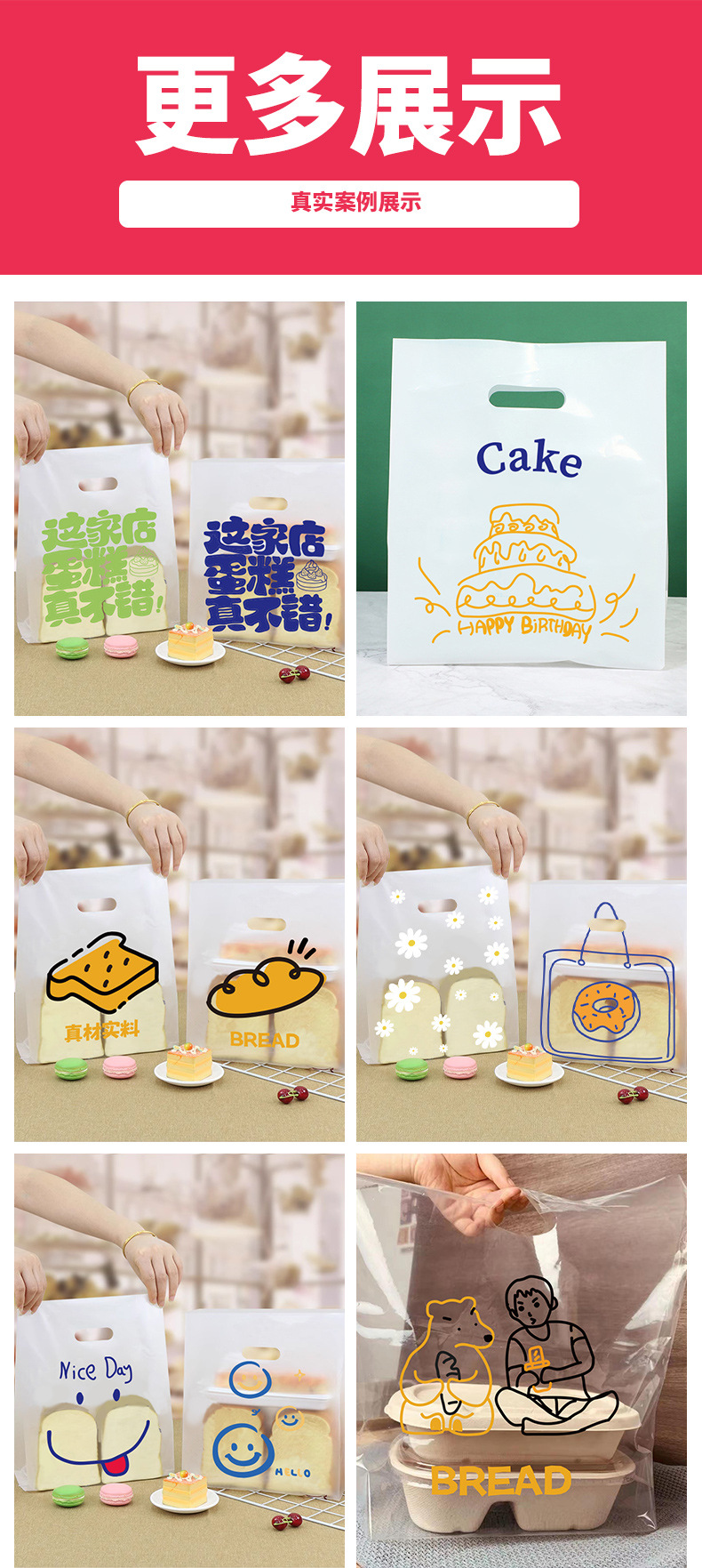 맞춤형 플라스틱 휴대용 포장 백, 베이킹 빵집 백, 과일 스시 디저트 포장, 테이크아웃 식품 백