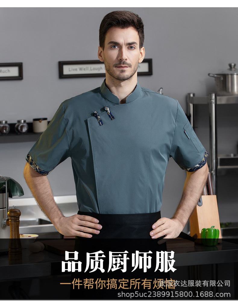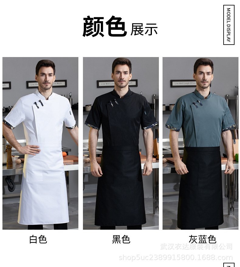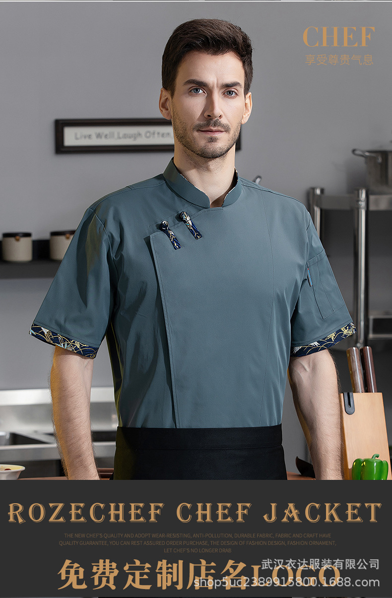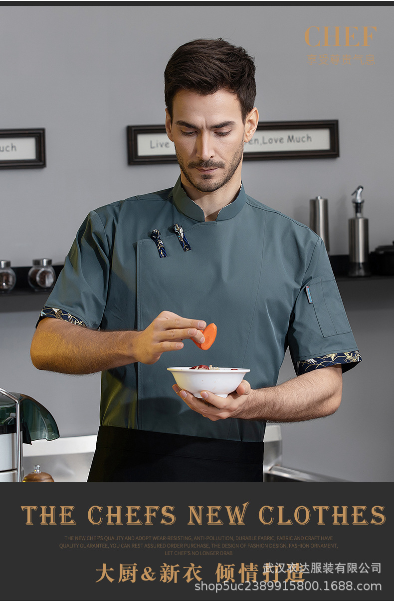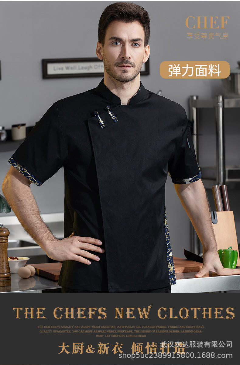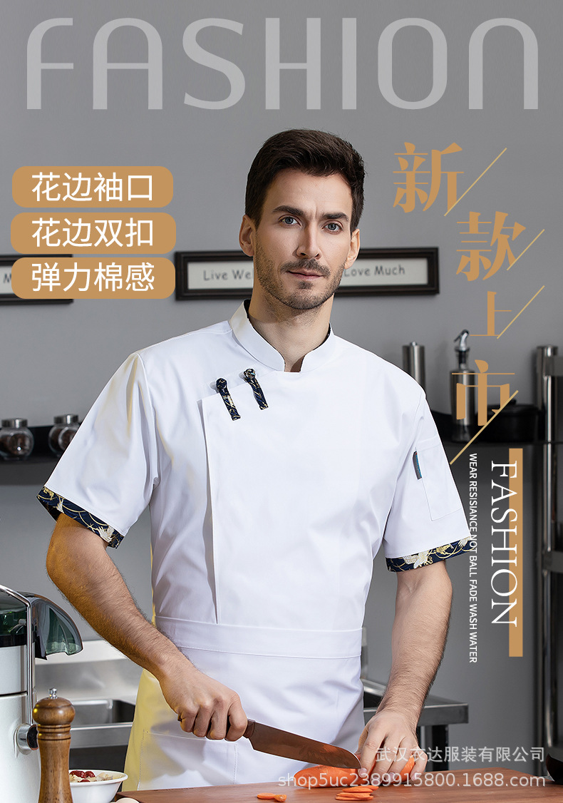 중국 요리사 작업 옷 반팔 호텔 매점 레스토랑 주방 통기성 요리사 옷 여름 옷 탄성 로고스토어 가기