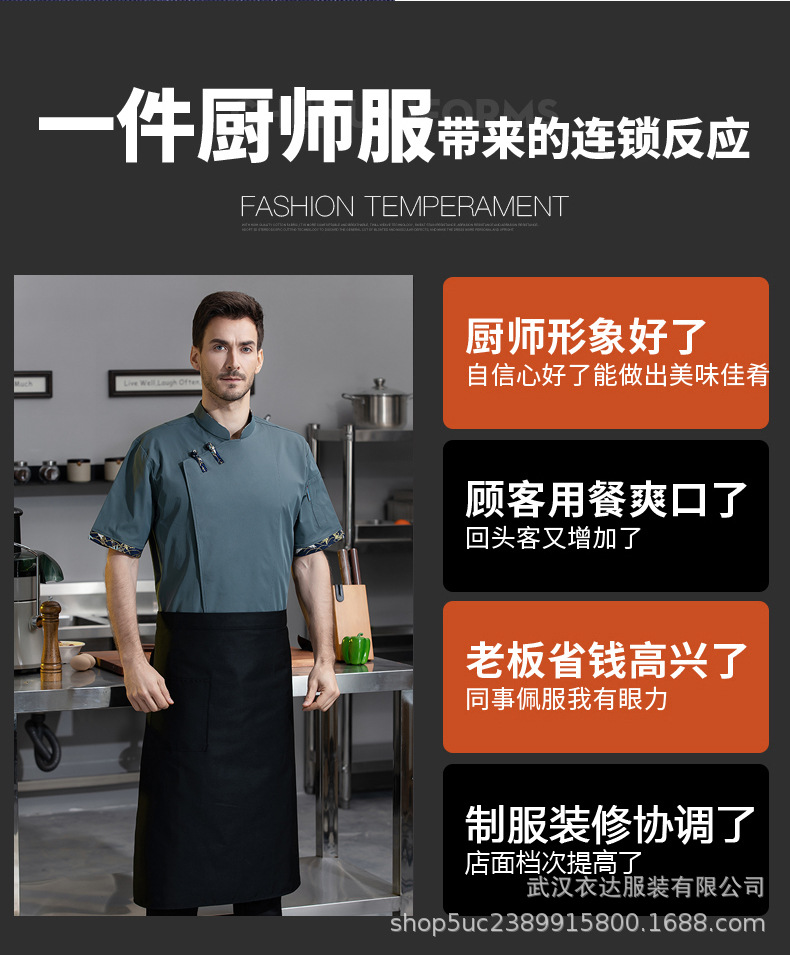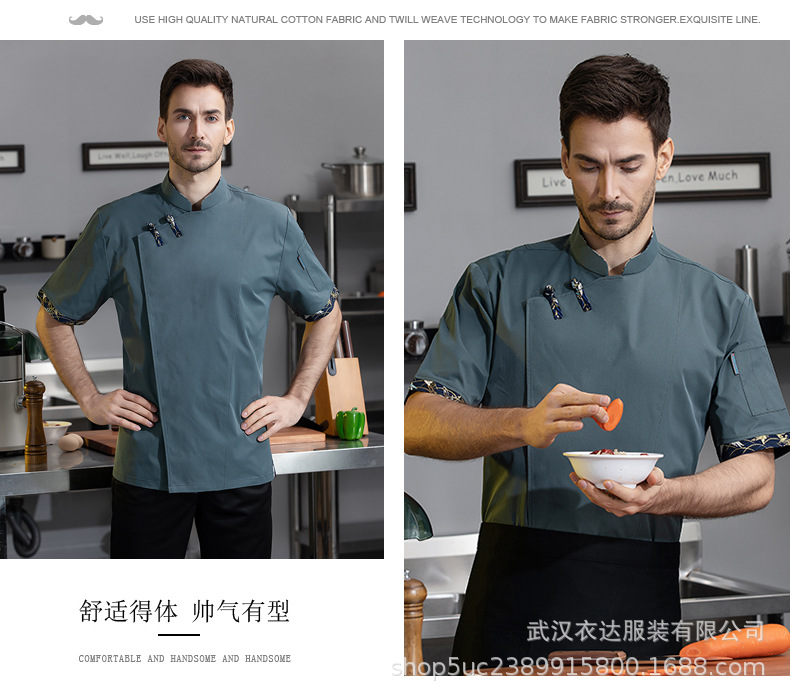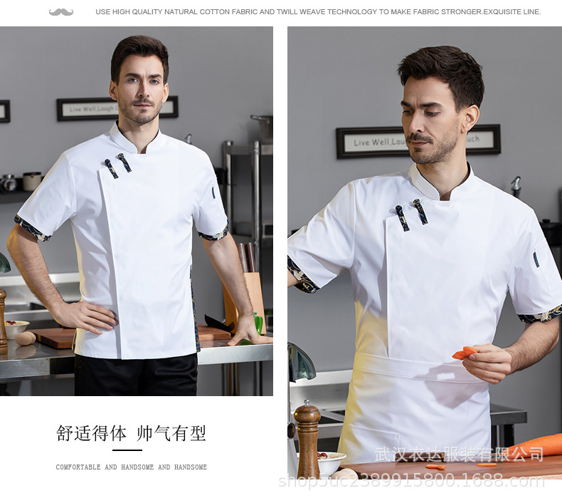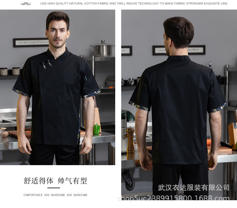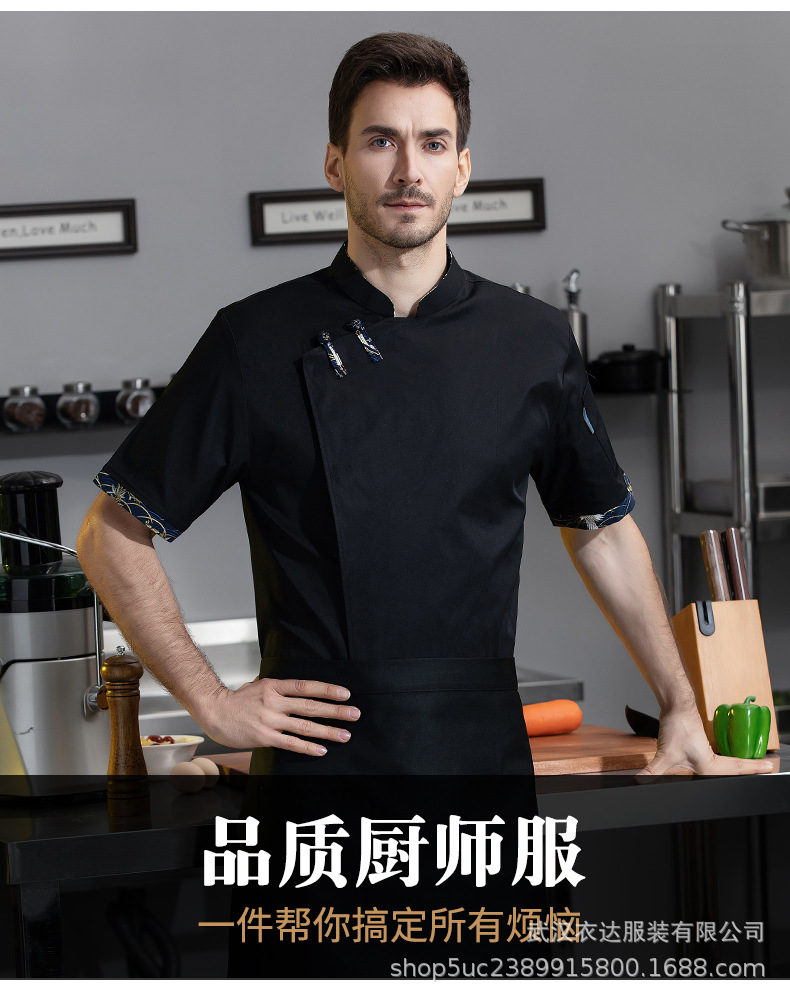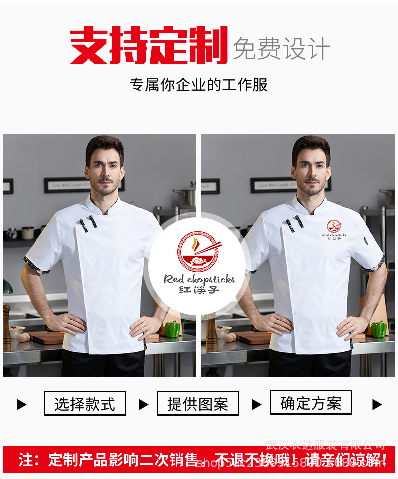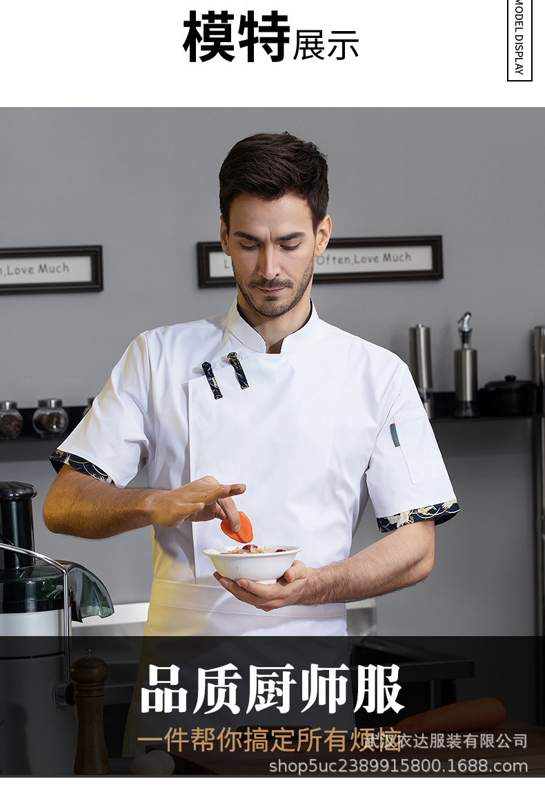 중국 요리사 작업 옷 반팔 호텔 매점 레스토랑 주방 통기성 요리사 옷 여름 옷 탄성 로고스토어 가기