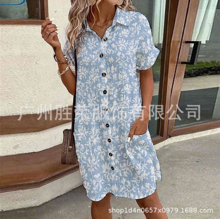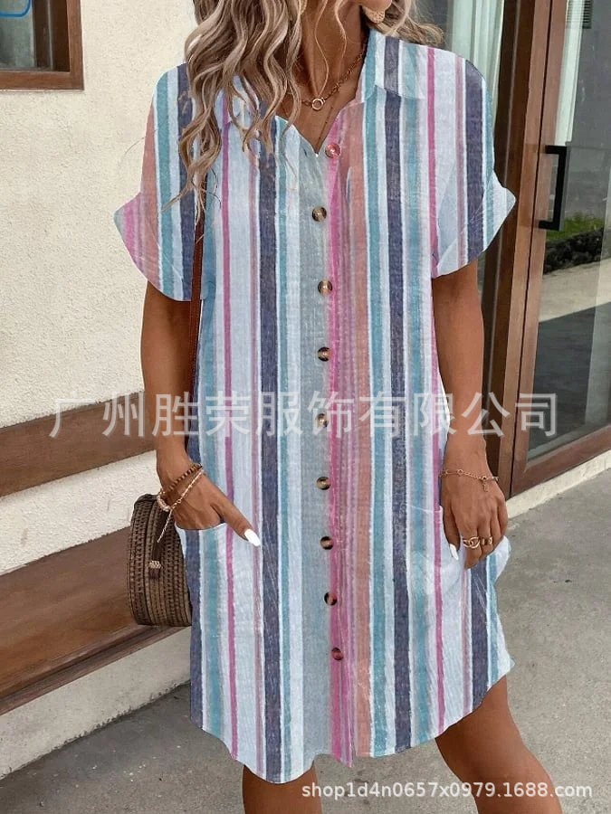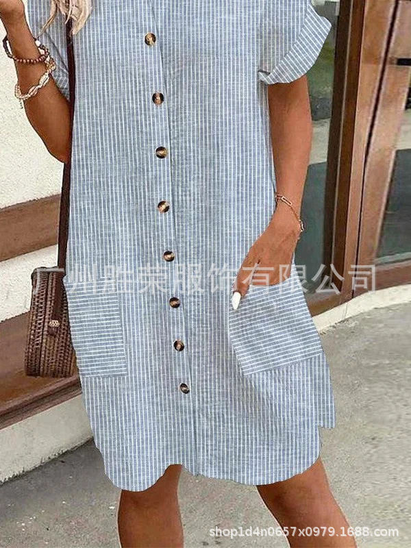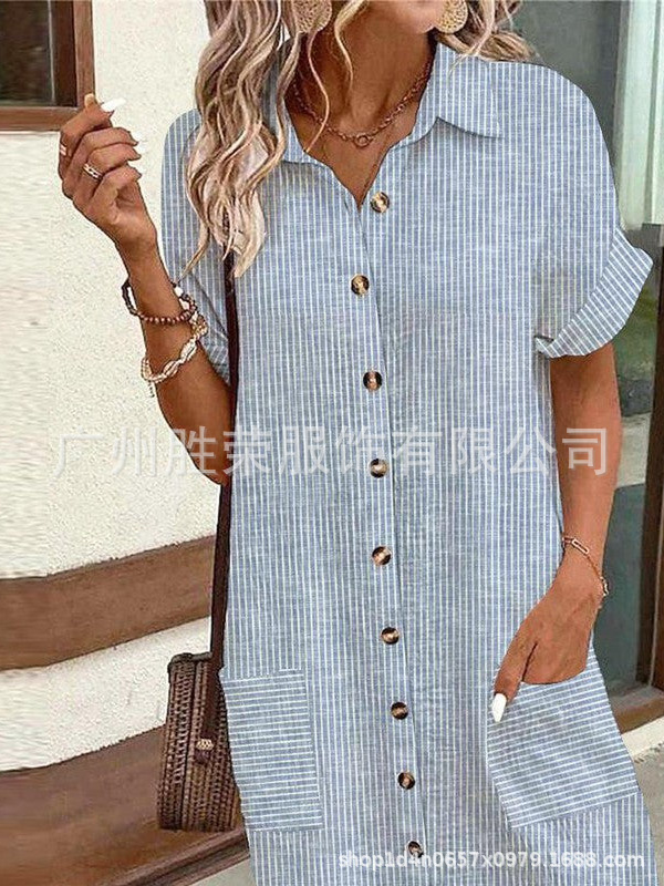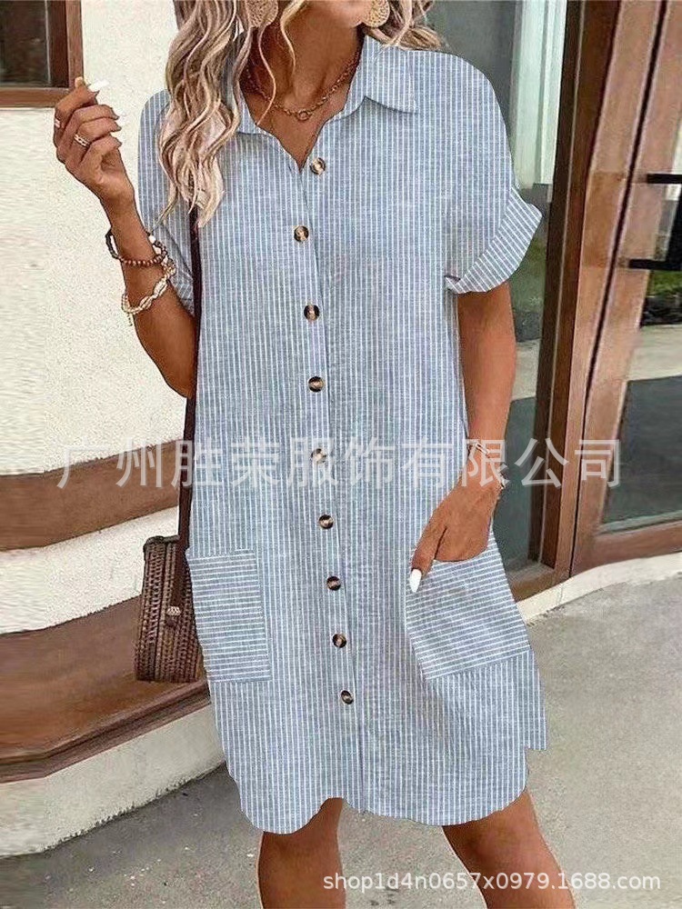 2024 새로운 재고 국경 대외 무역 유럽과 미국 여성 독립 역 봄과 여름 폭발 포켓 셔츠 옷깃 원피스스토어 가기