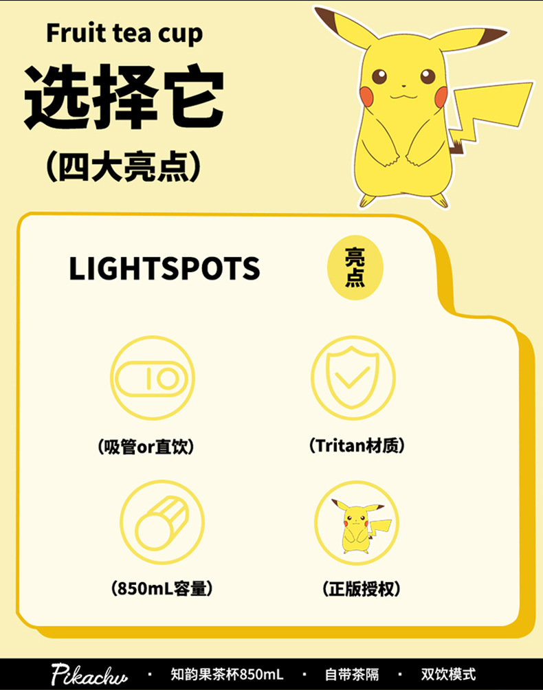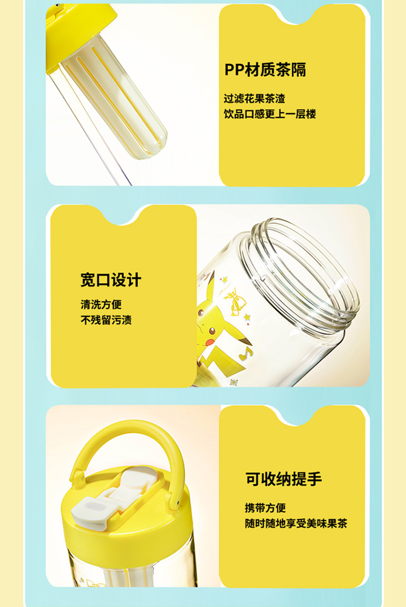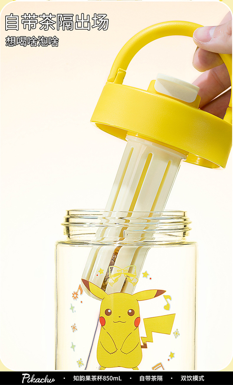 피카추 어린이 학생 대용량 공간 플라스틱 컵 트리탄 식품 학년 Zhiyun 과일 티 컵 워터 컵 주전자
