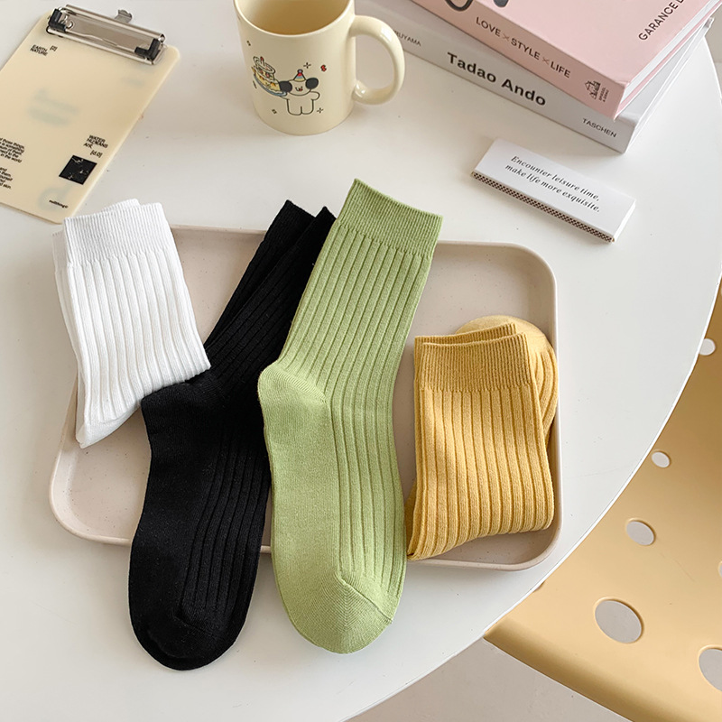 양말 여성용 미드 양말, 코튼 땀 흡수 통기성 화이트 스태킹 양말, 트렌디 한 간단한 올 매치 솔리드 컬러 화이트 양말