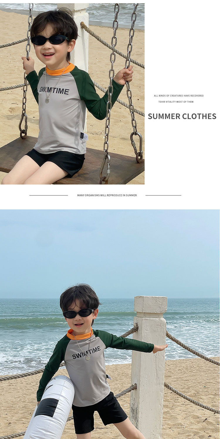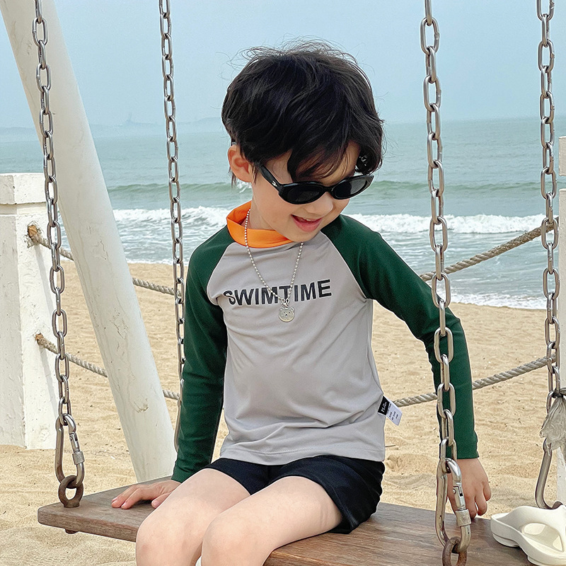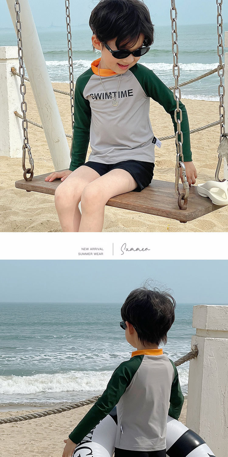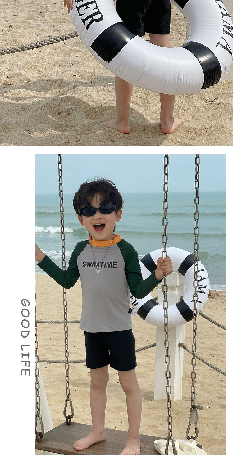 여름 새로운 어린이 수영복 수영 트렁크 분할 세트 소년과 소녀 레저 비치 휴일 긴 소매 태양 방지 수영복스토어 가기
