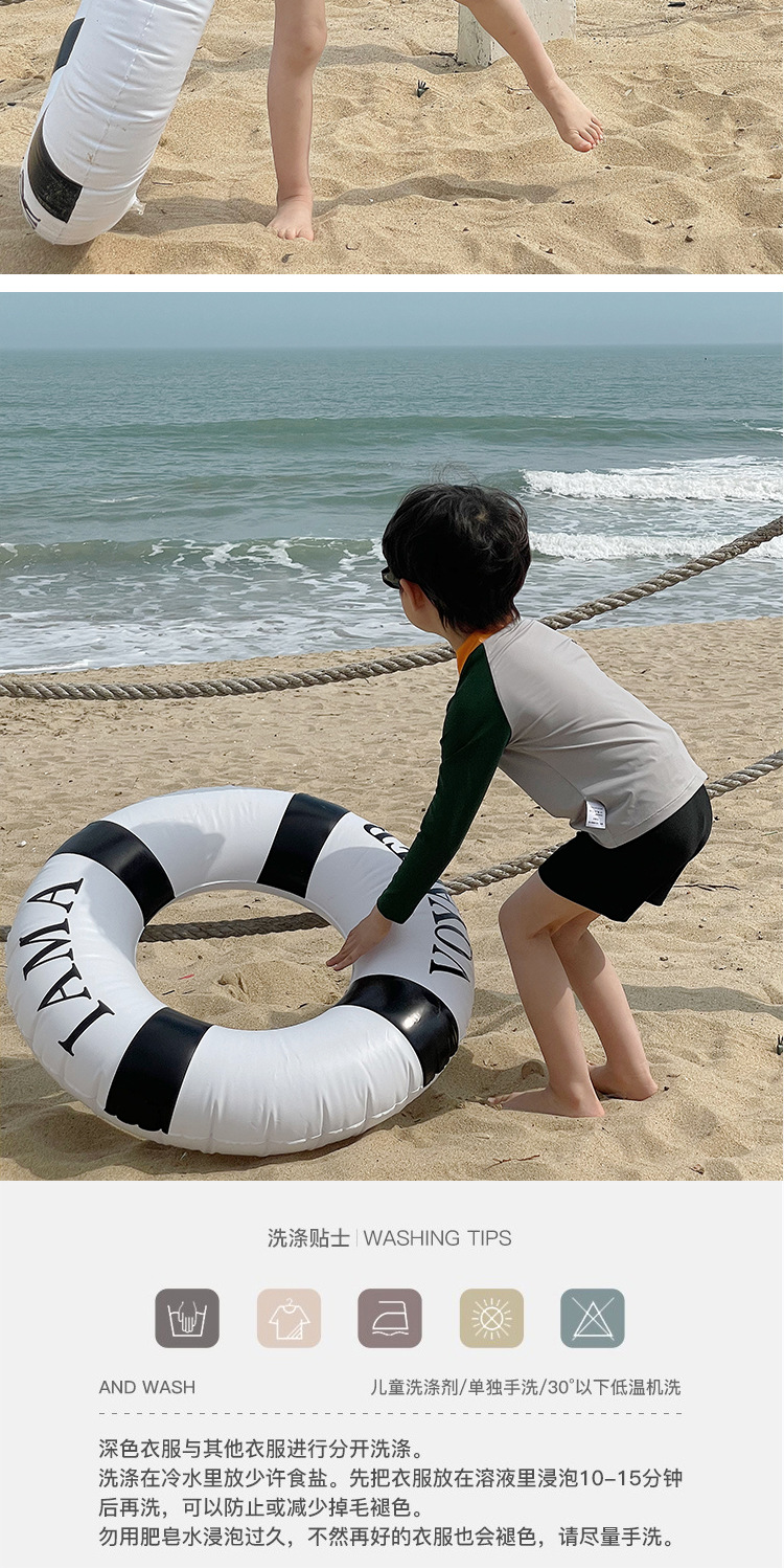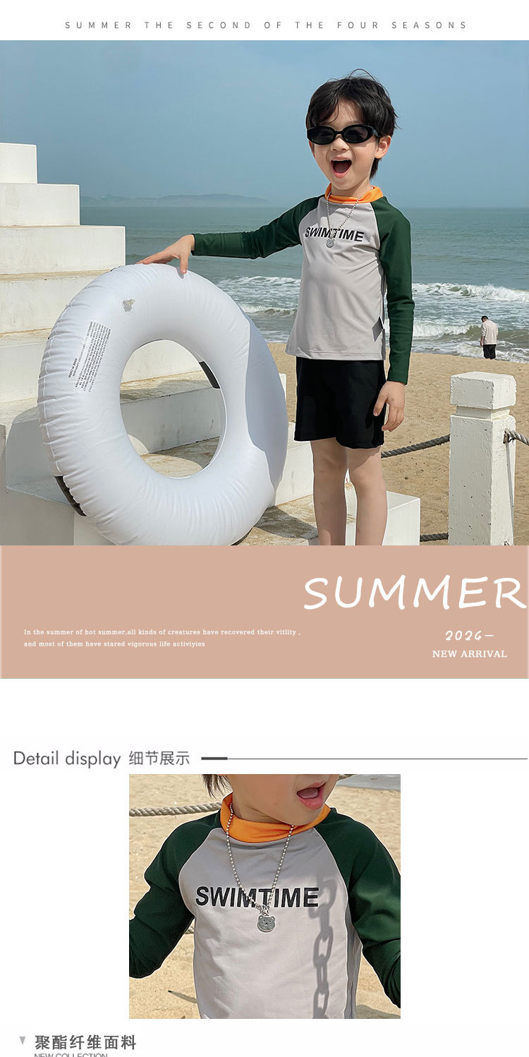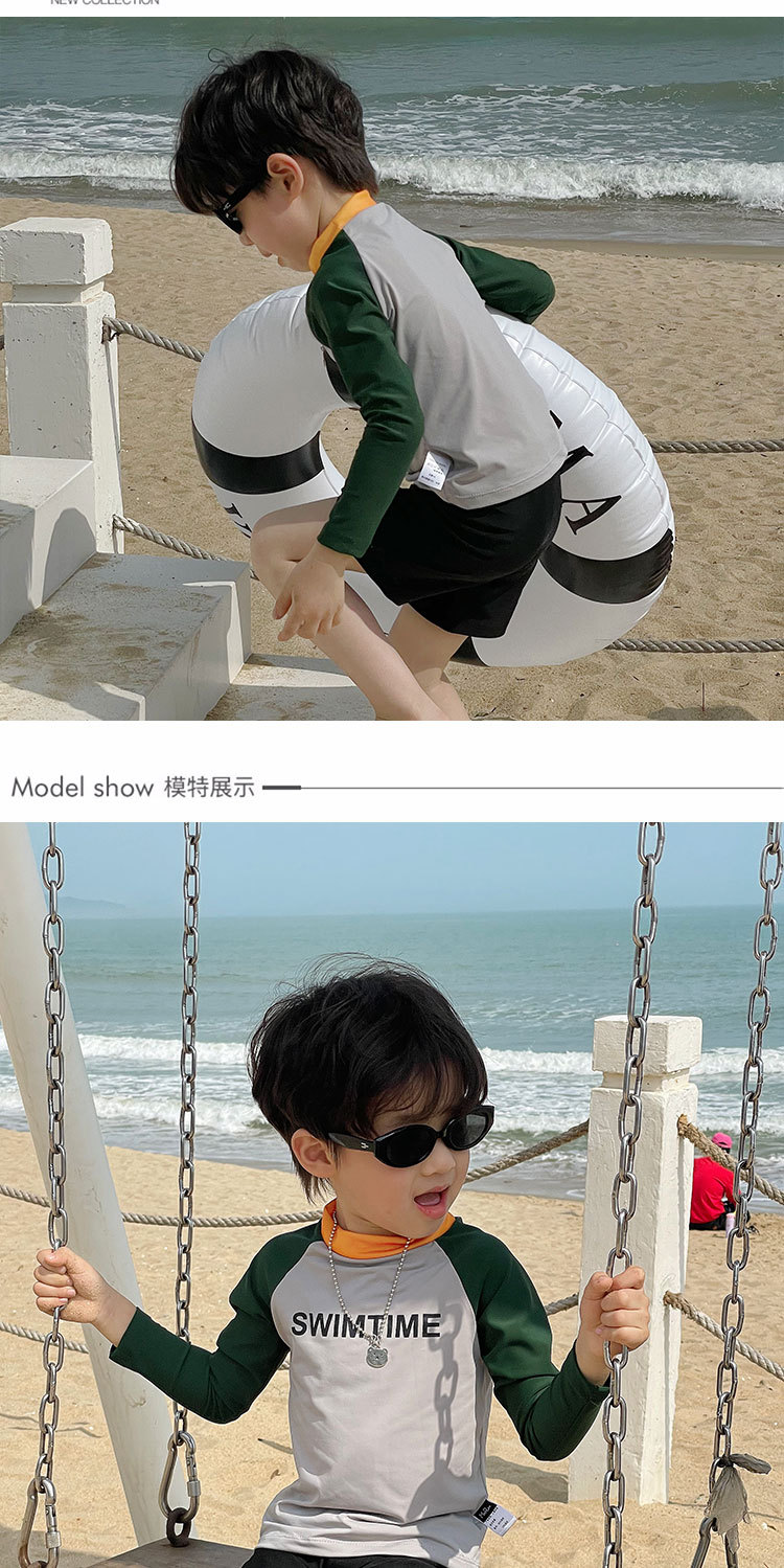 여름 새로운 어린이 수영복 수영 트렁크 분할 세트 소년과 소녀 레저 비치 휴일 긴 소매 태양 방지 수영복스토어 가기