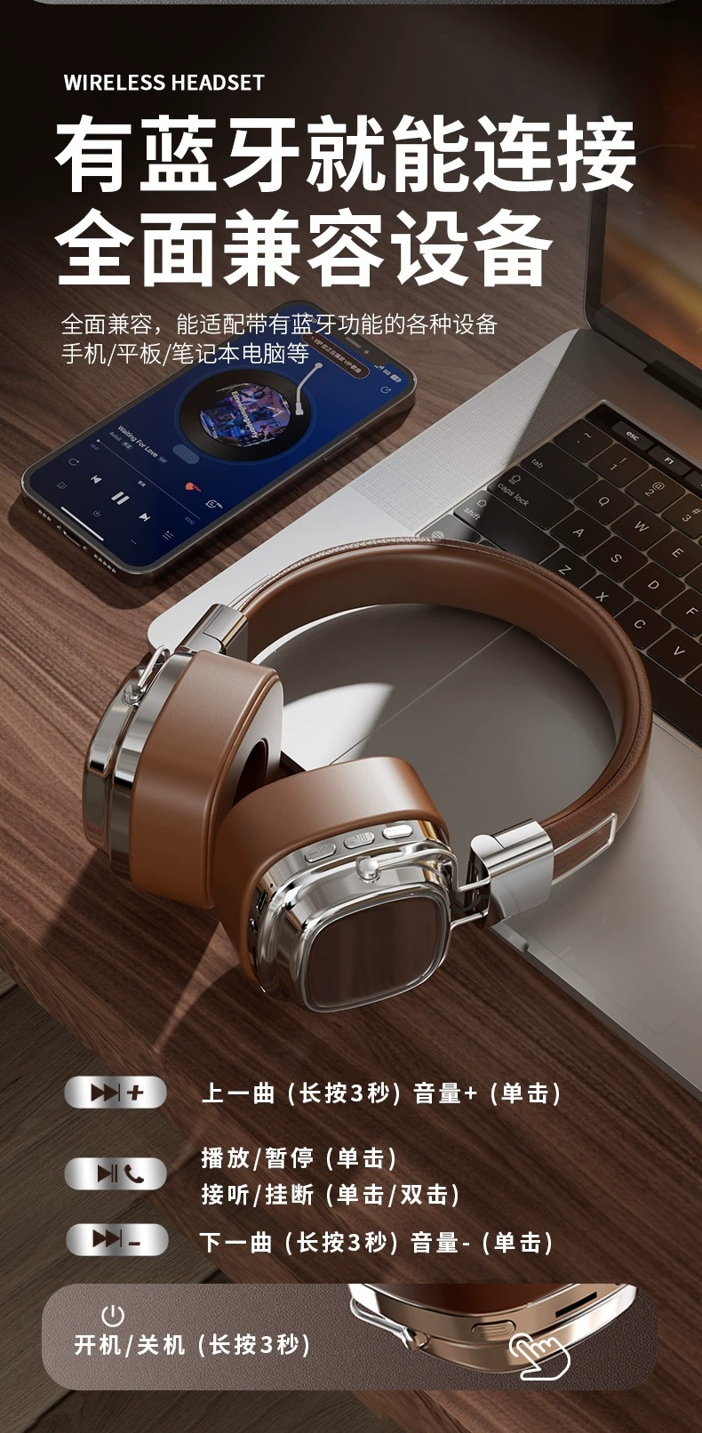 레트로 헤드 마운트 마샬 리얼 무선 블루투스 헤드셋 서브 우퍼 소음 감소 하이 퀄리티 헤드셋 선물