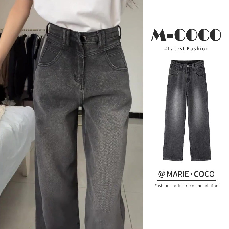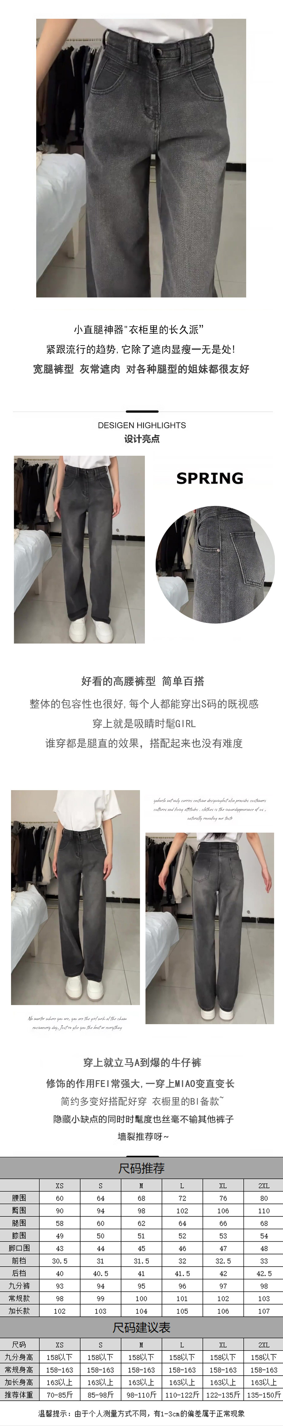 검은 회색 별 패턴 좁은 직선 청바지 여성의 봄과 가을 작은 높은 허리 슬리밍 느슨한 넓은 다리 바지스토어 가기