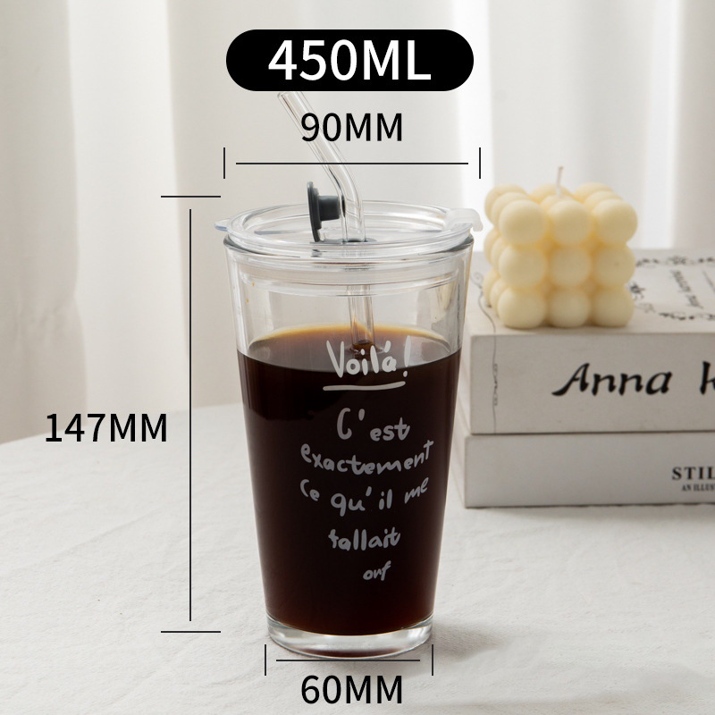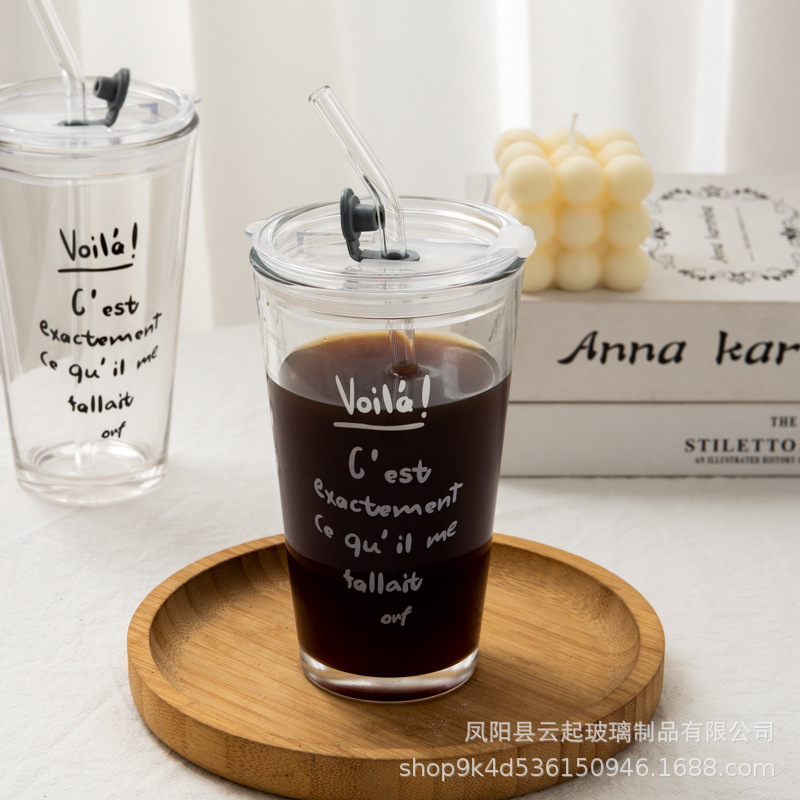 여름 새로운 유리 빨대 큰 용량 뚜껑 높은 색상 가치 인터넷 인기 크리에이티브 컵 가정용 차가운 음료 유리스토어 가기