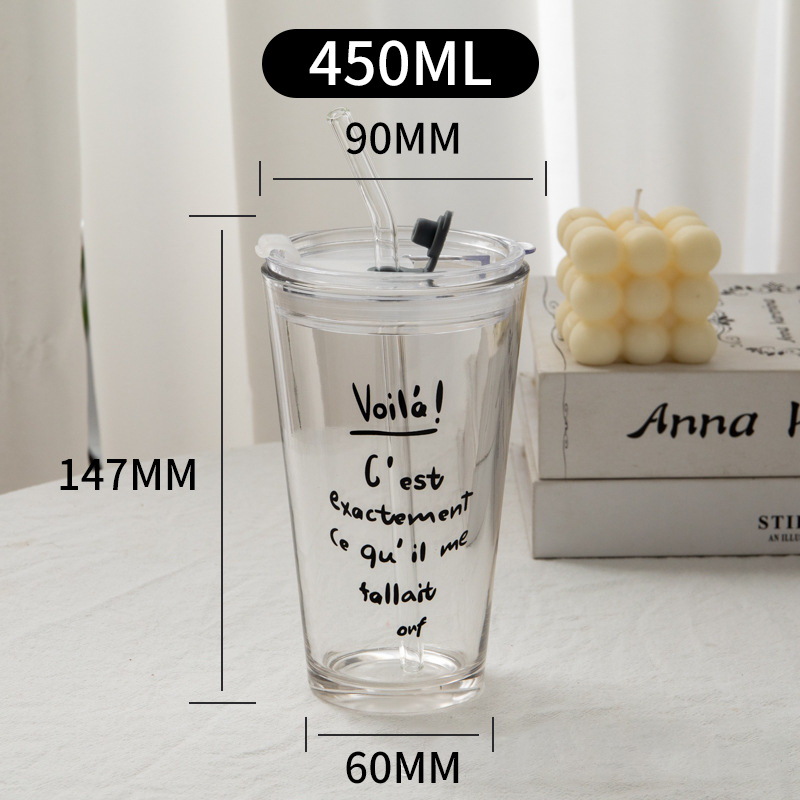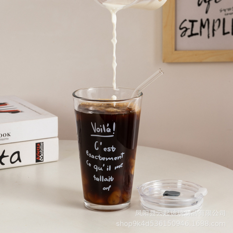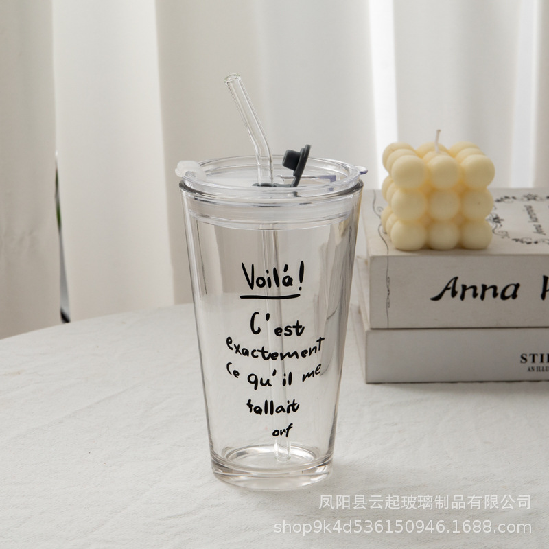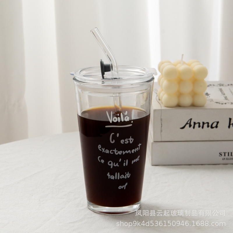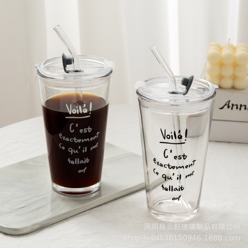 여름 새로운 유리 빨대 큰 용량 뚜껑 높은 색상 가치 인터넷 인기 크리에이티브 컵 가정용 차가운 음료 유리