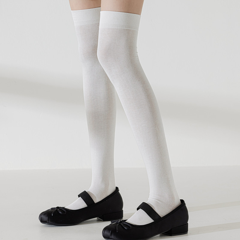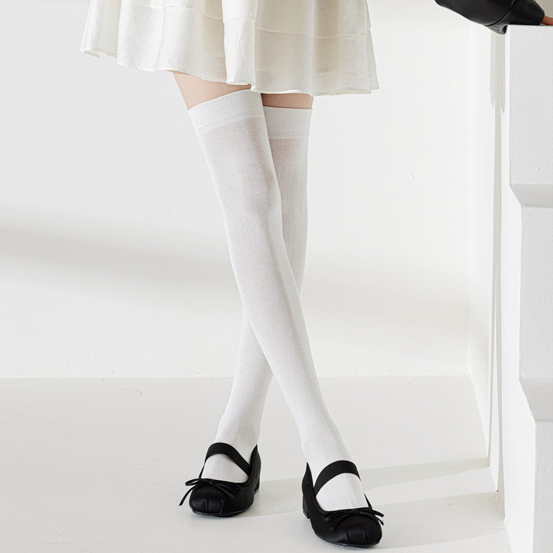 • 얇은 면 JK 오버 더 무릎 양말 화이트