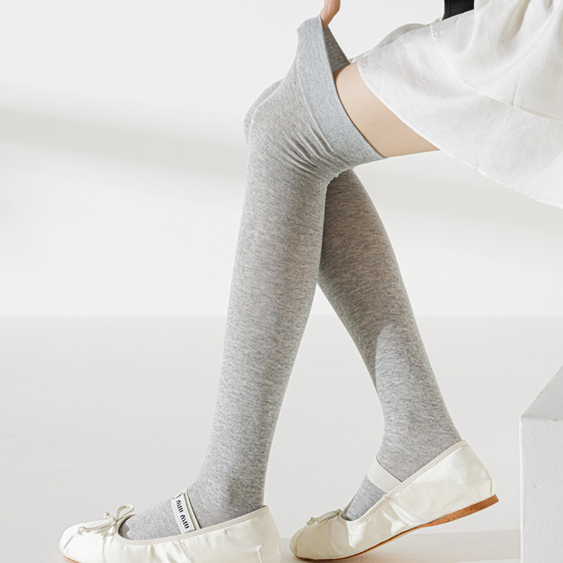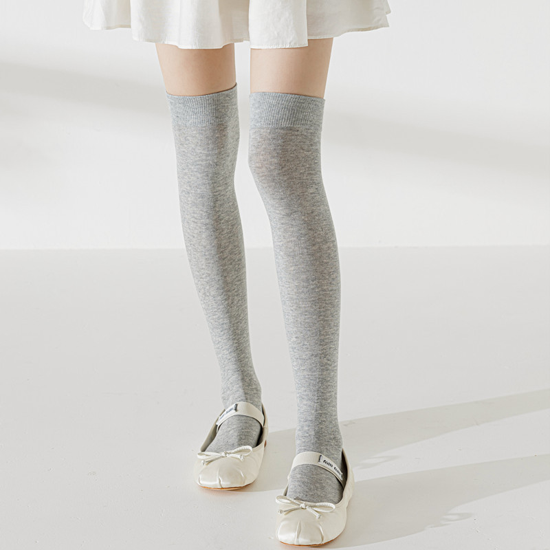봄과 여름 얇은 여성의 JK 무릎 양말 얇은 면 솔리드 컬러 미끄럼 긴 허벅지 양말 모든 경기 약간의 압력 슬리밍 높은 양말