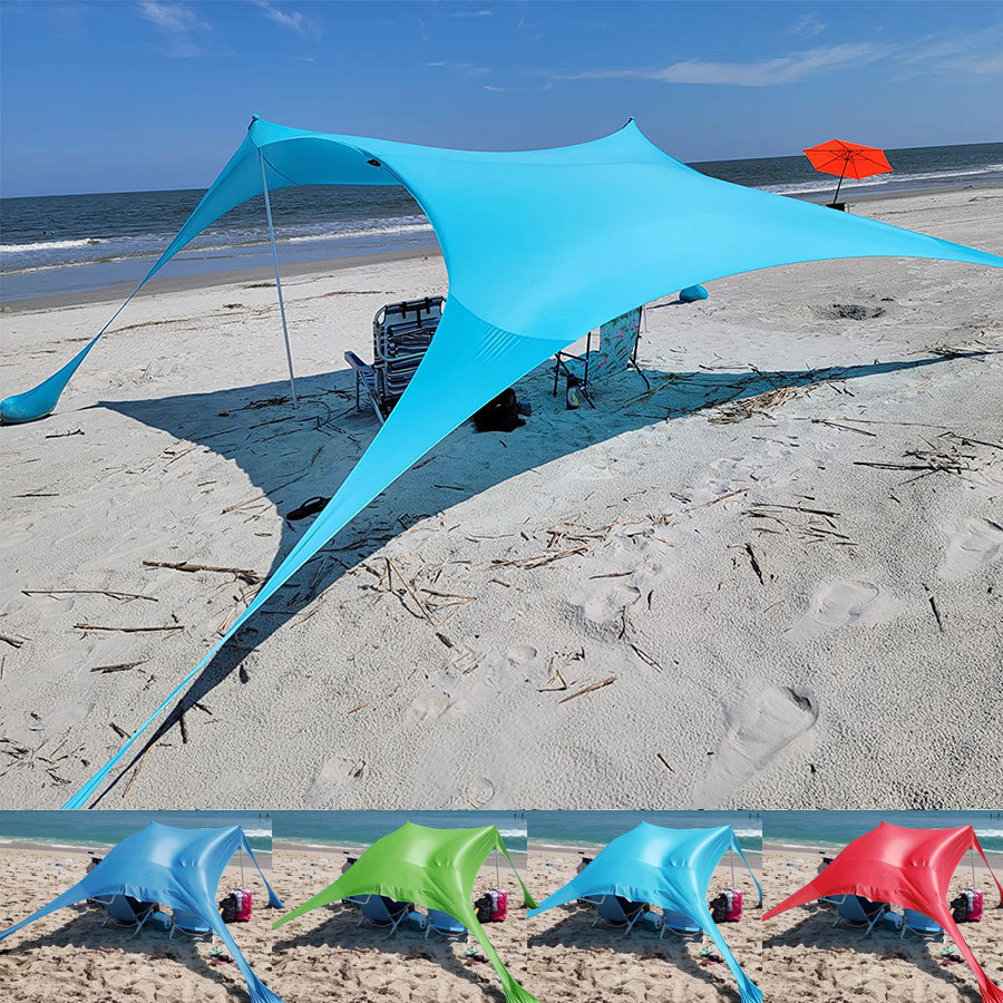 아마존 베스트 셀러 비치 캐노피 탄성 잔디 비치 텐트 4 면 알루미늄 막대 캐노피 공장 직접 판매스토어 가기