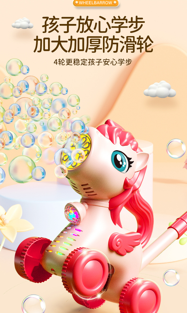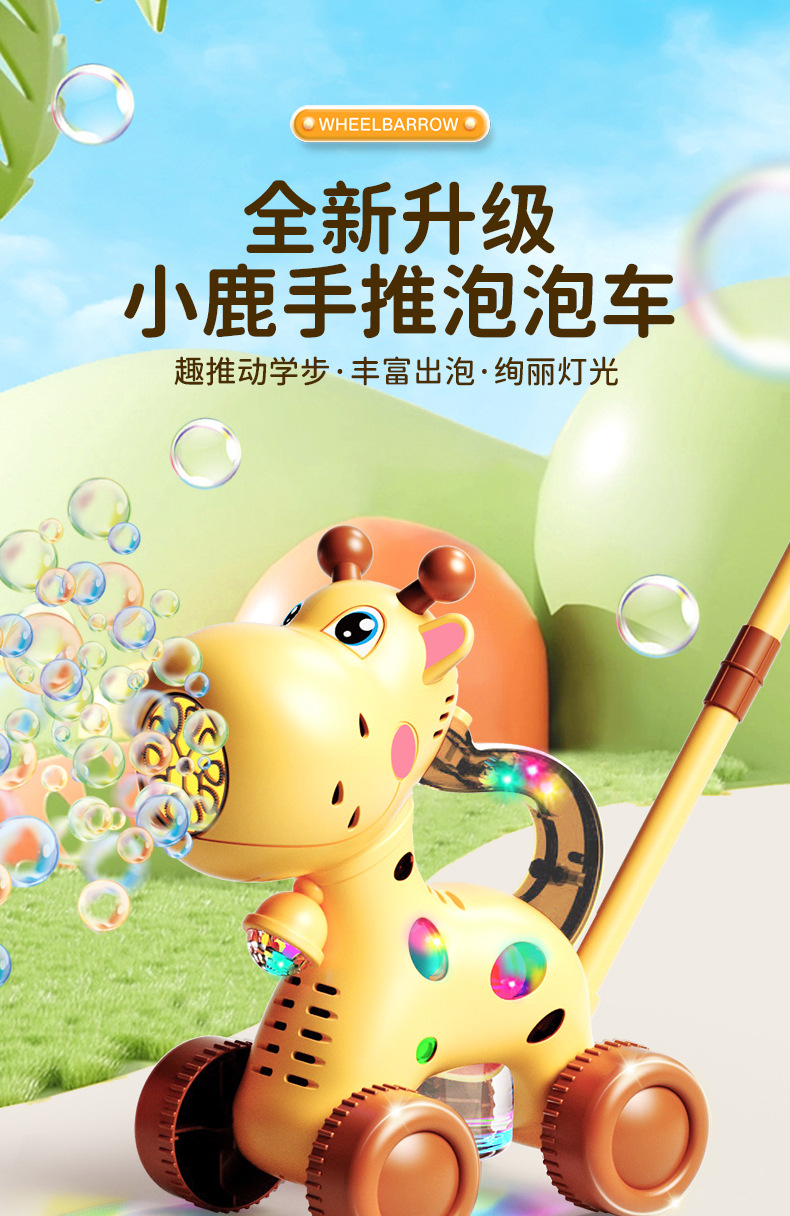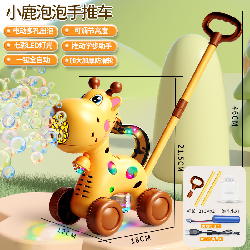새로운 어린이 트롤리 전기 기린 버블 인터넷 축하 장난감 자동 거품 부는 야외 소년과 소녀