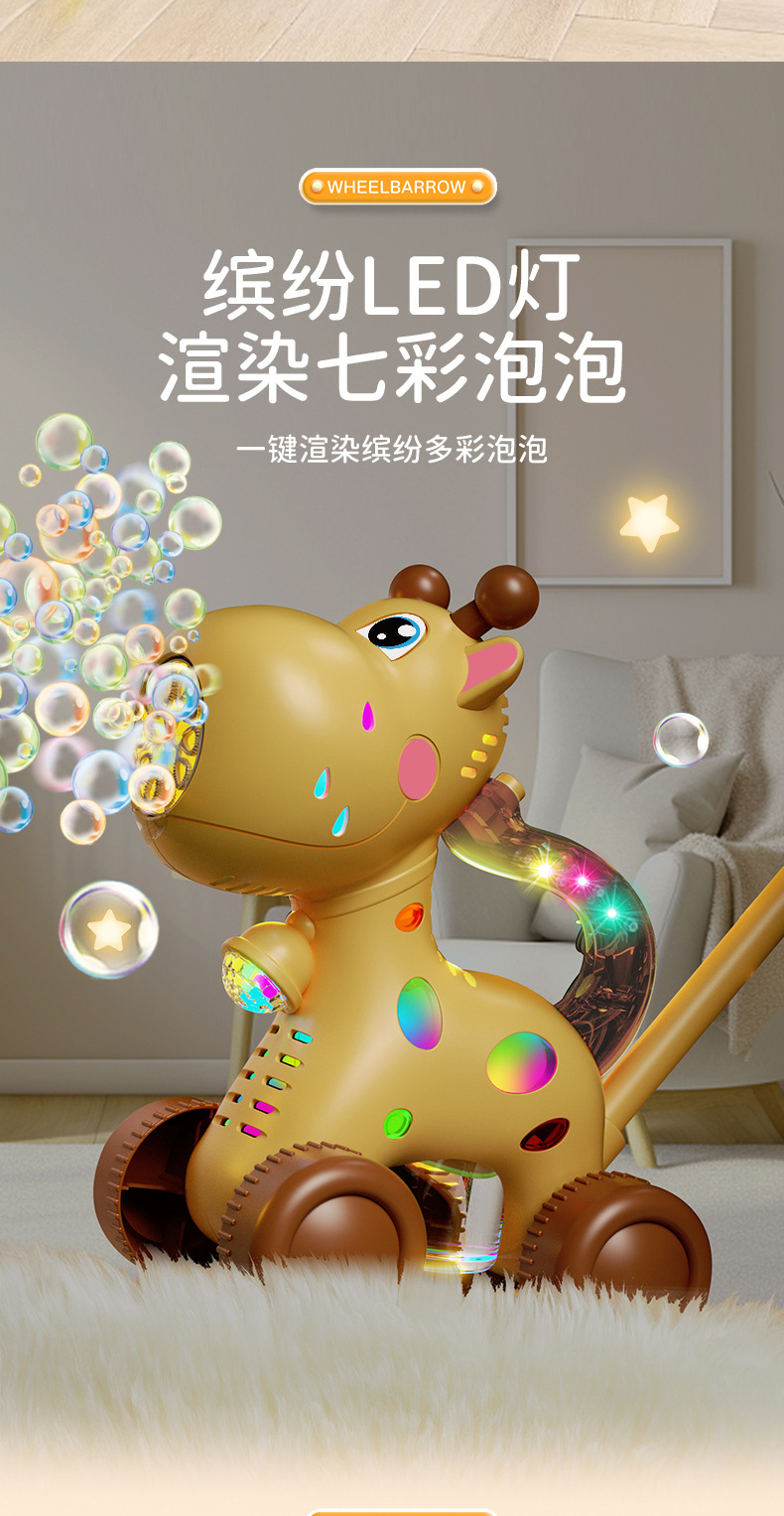 새로운 어린이 트롤리 전기 기린 버블 인터넷 축하 장난감 자동 거품 부는 야외 소년과 소녀스토어 가기