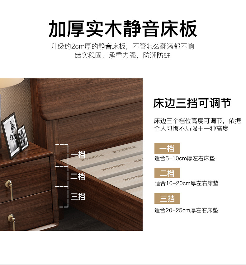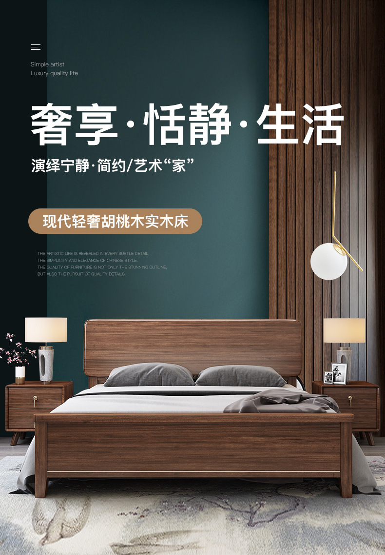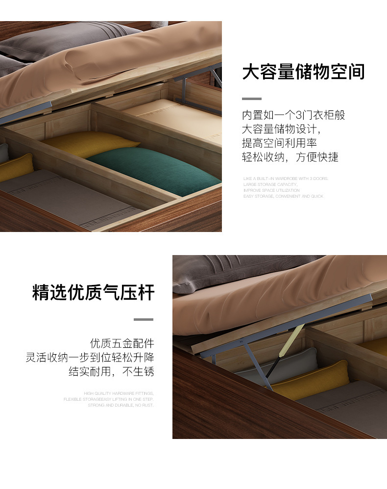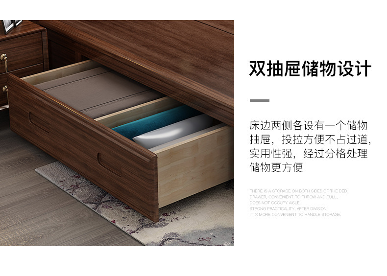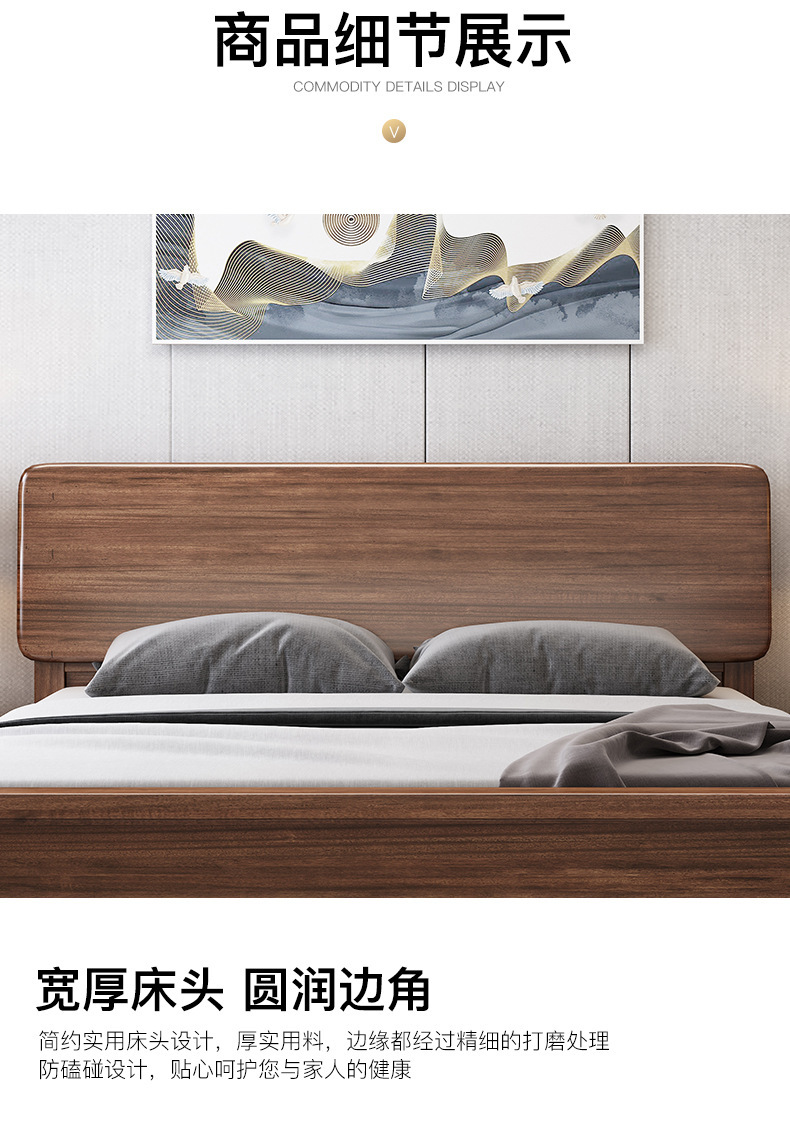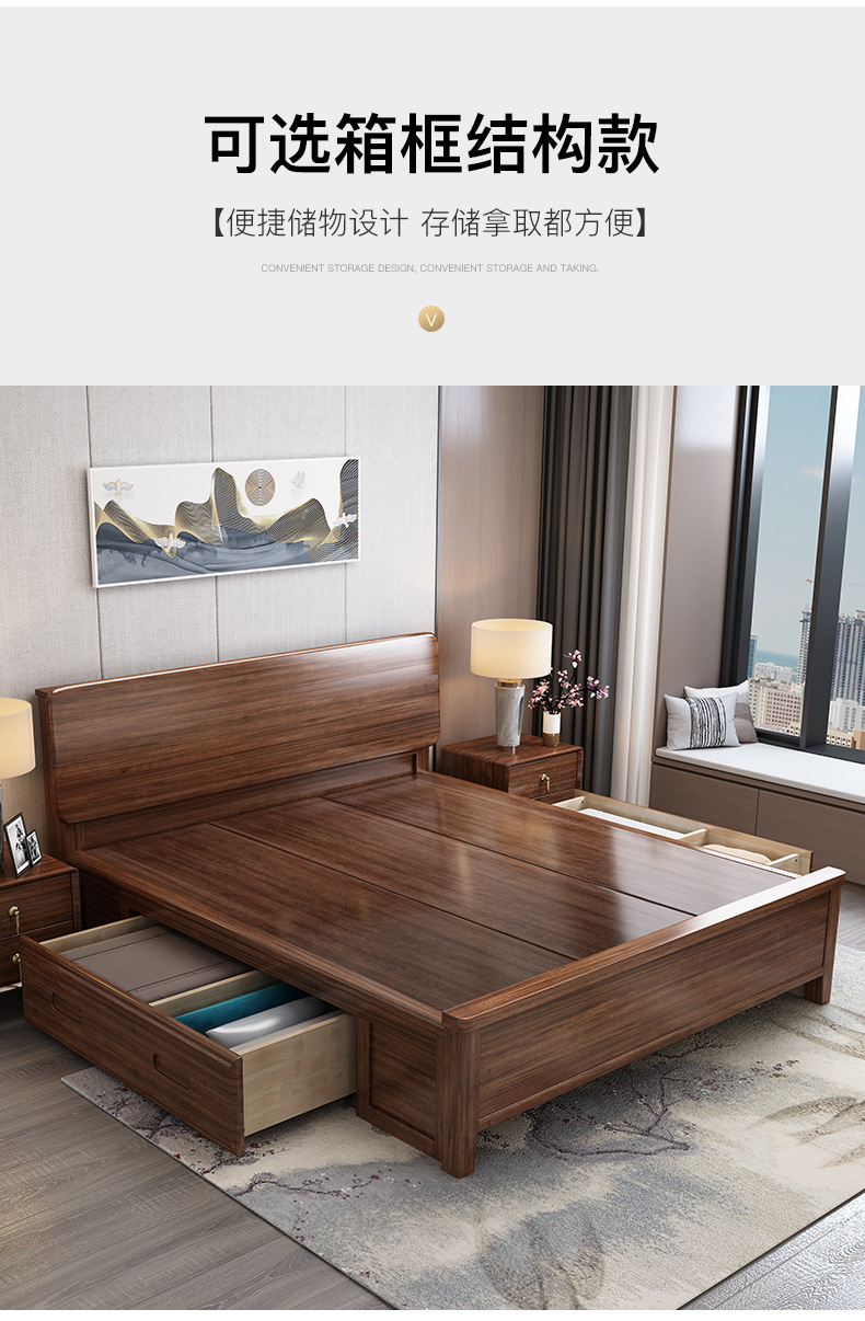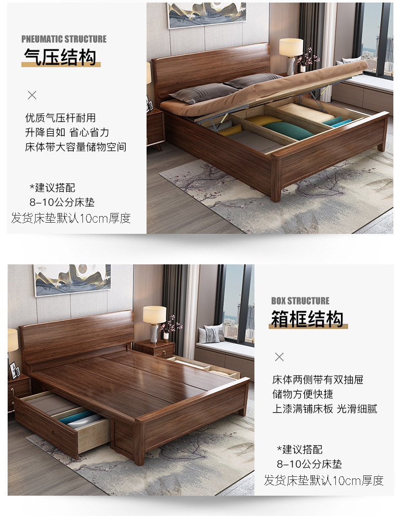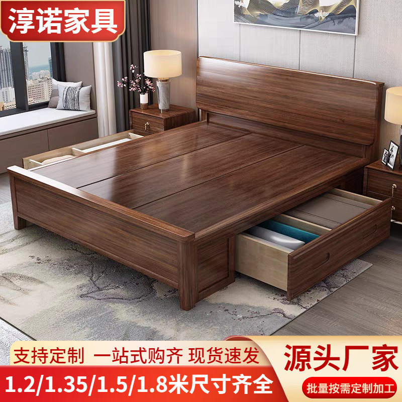 호두 단단한 나무 침대 1.8m 마스터 침실 싱글 더블 침대 1.5 현대 간단한 작은 아파트 1.2 m 높은 상자 수납 침대스토어 가기