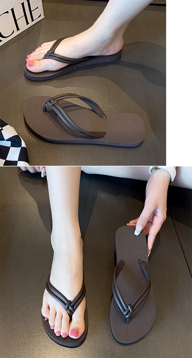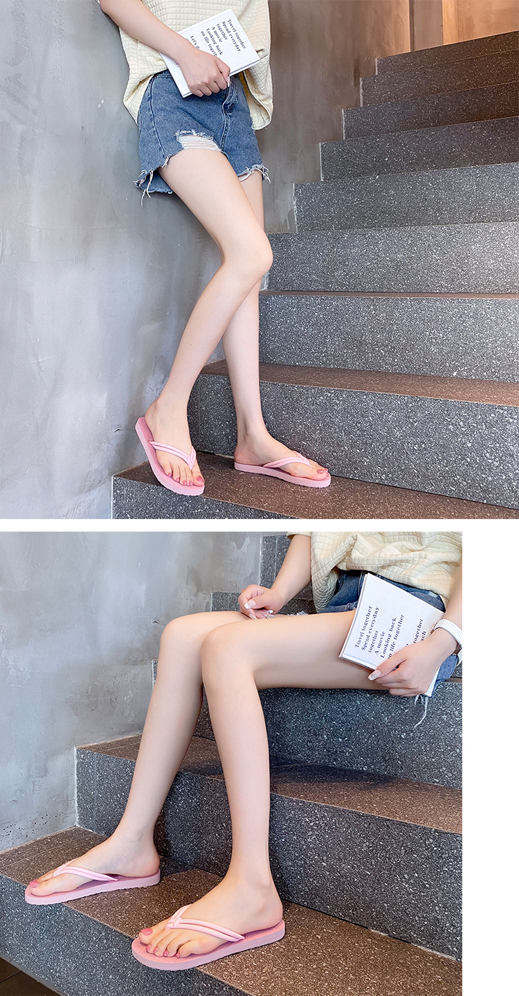 Instagram 스타일 유행 간단한 캐주얼 플립 플롭 여성 여름 미끄럼 방지 수영복 클립 피트 외부 여성용 플랫 비치 샌들 및 슬리퍼스토어 가기