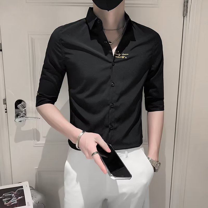 봄 신상 고급 셔츠 남성 긴팔 헤어스타일리스트 트렌디 브랜드 남성복 2026 신상 이너웨어 자수 정장 셔츠스토어 가기