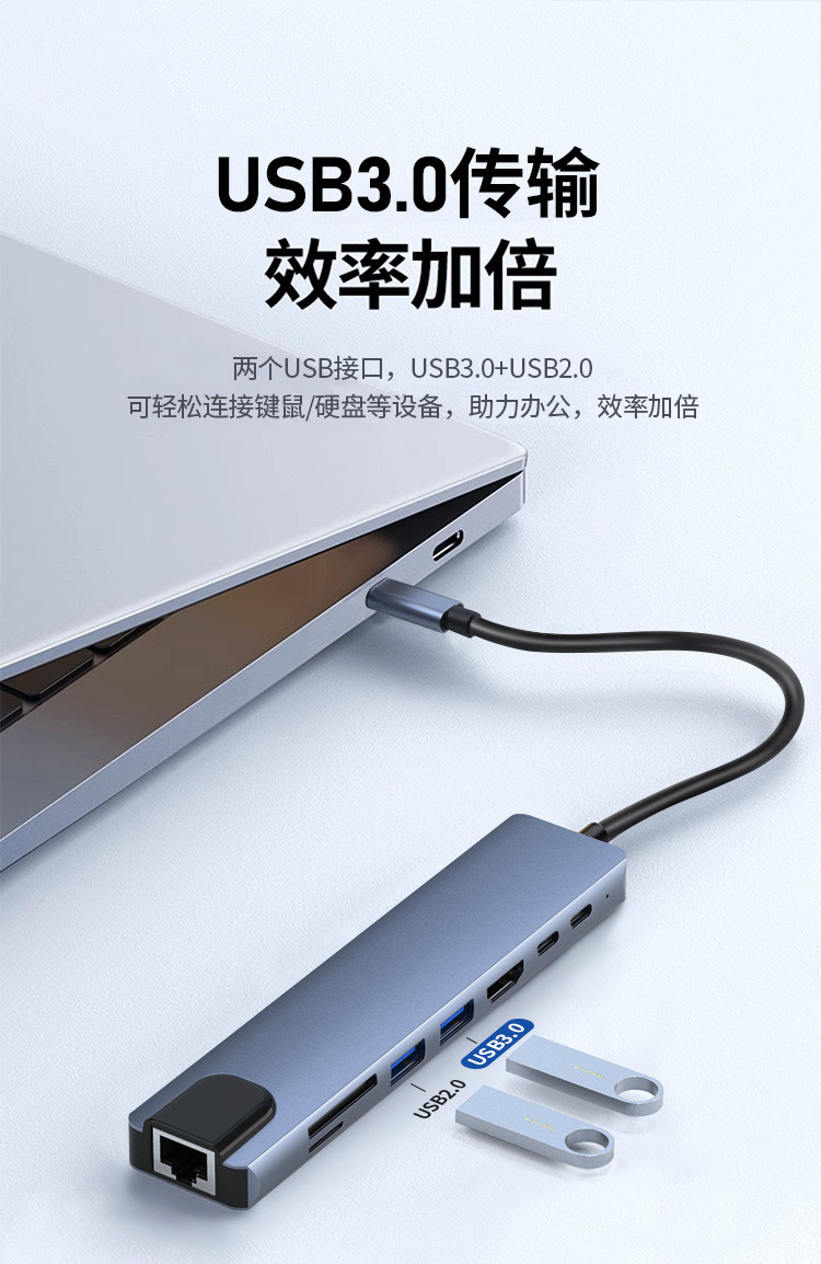 유형 c 도킹 스테이션 8-in -1 100 M 다기능 인터페이스 확장 도크 허브 노트북 컨버터 8-in -1스토어 가기